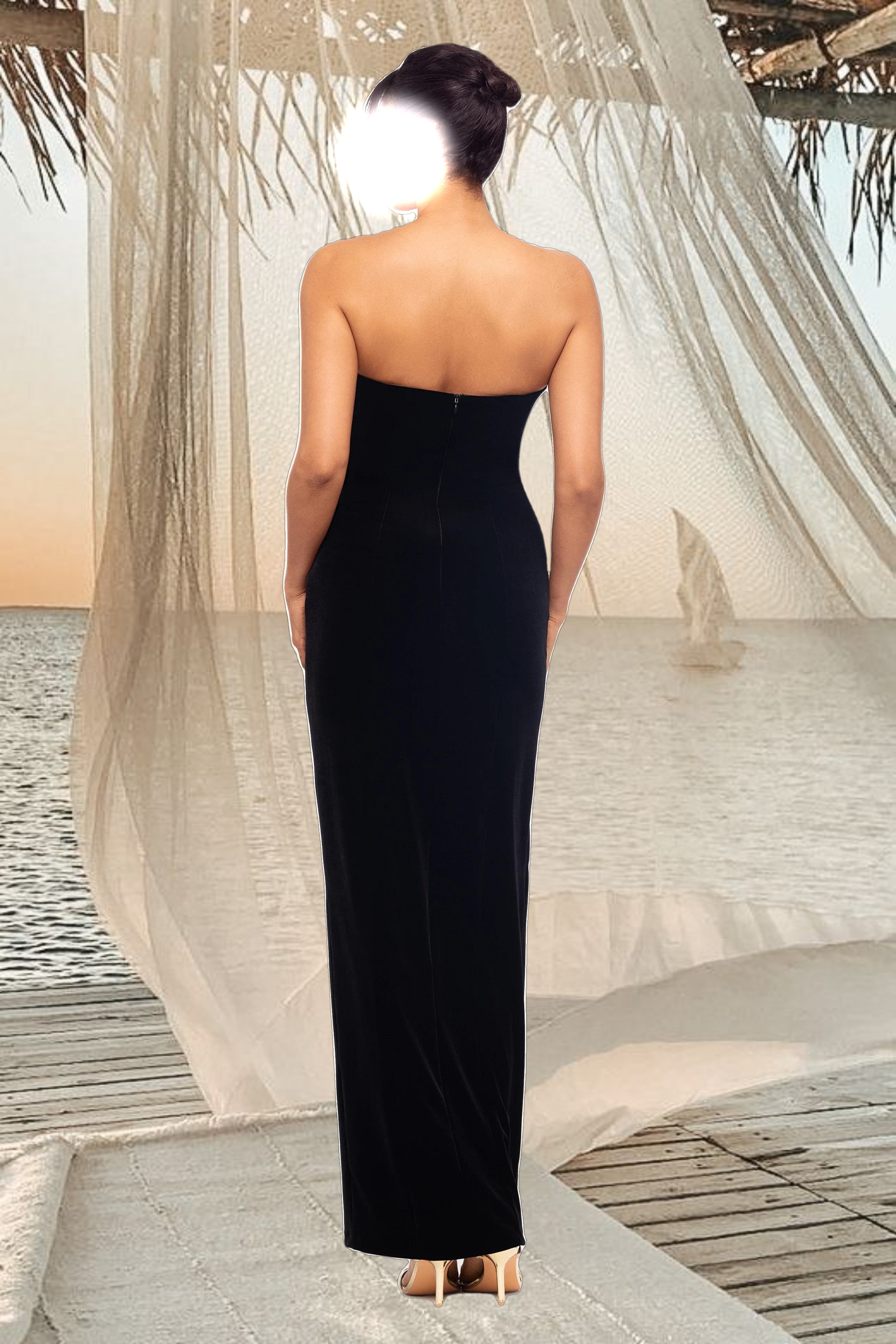 "Liliana" Long Velvet Strapless Tuxedo Dress