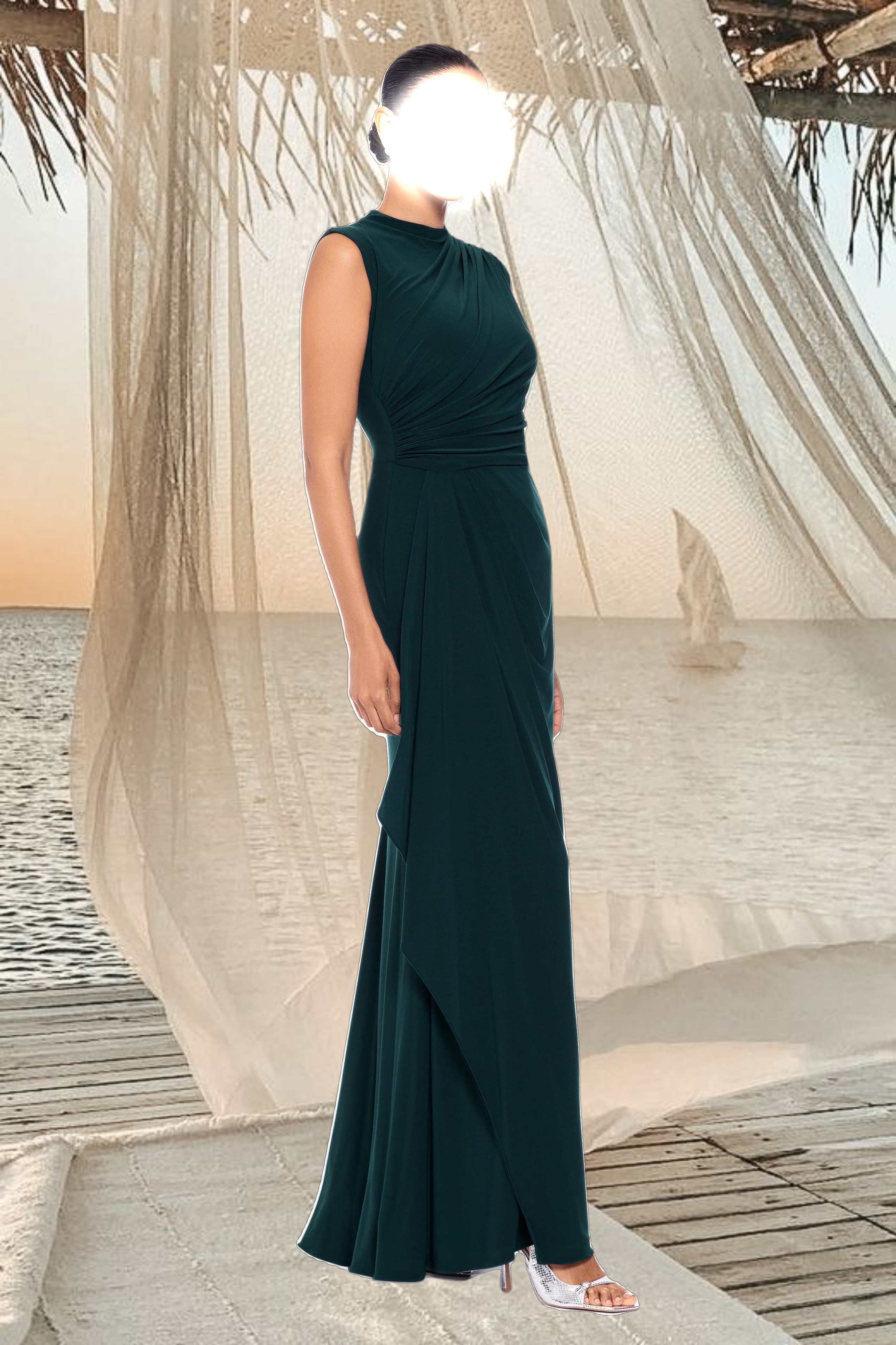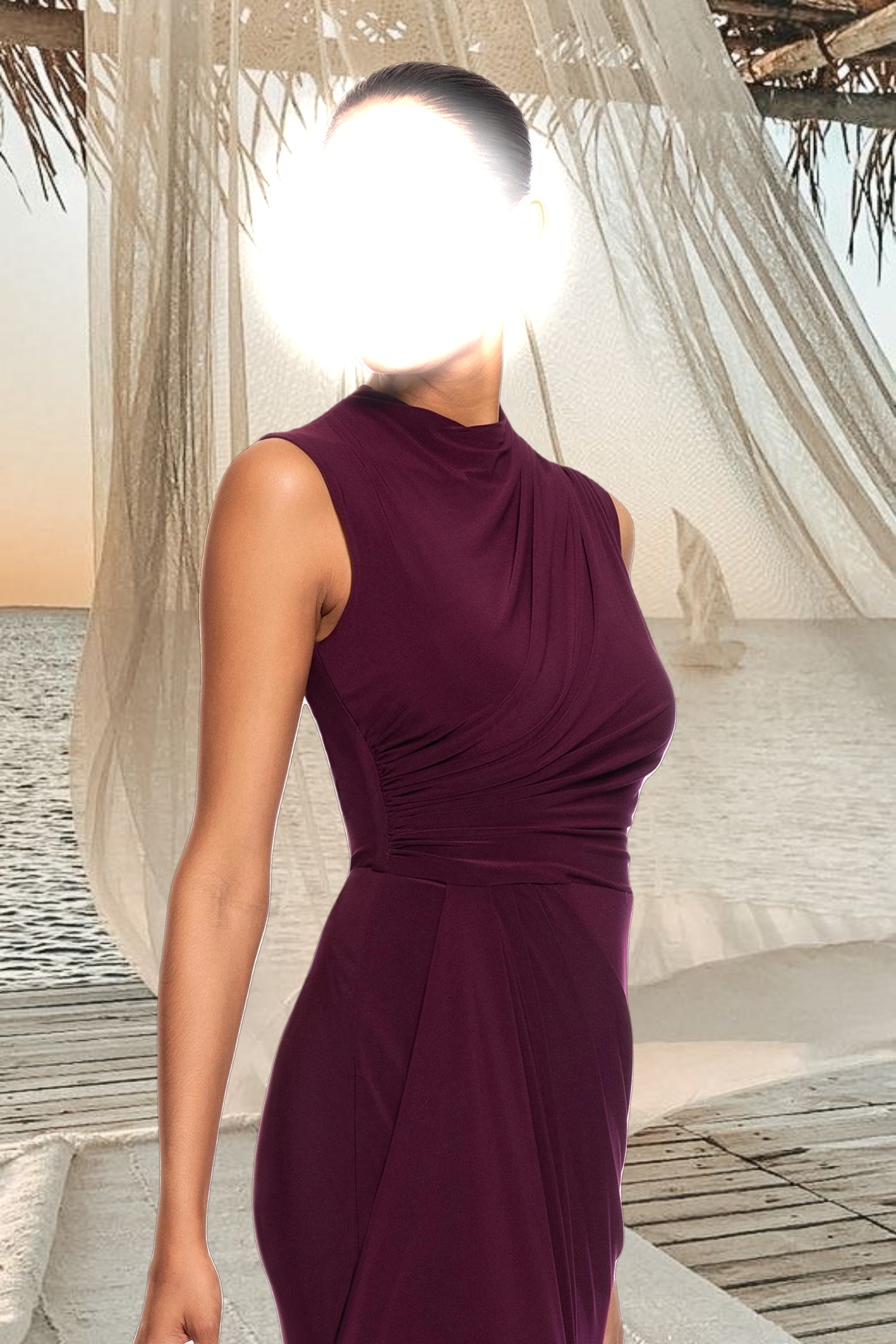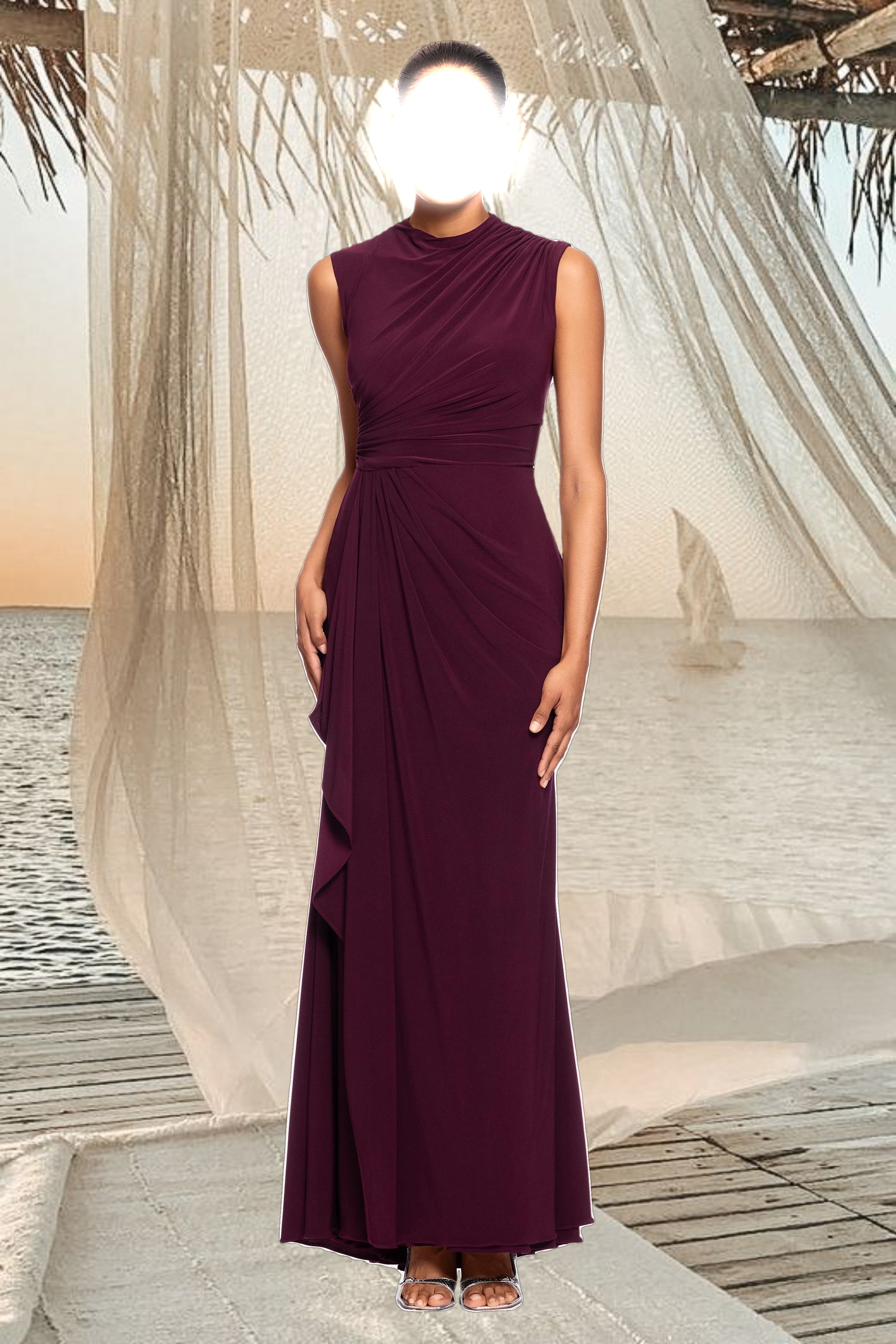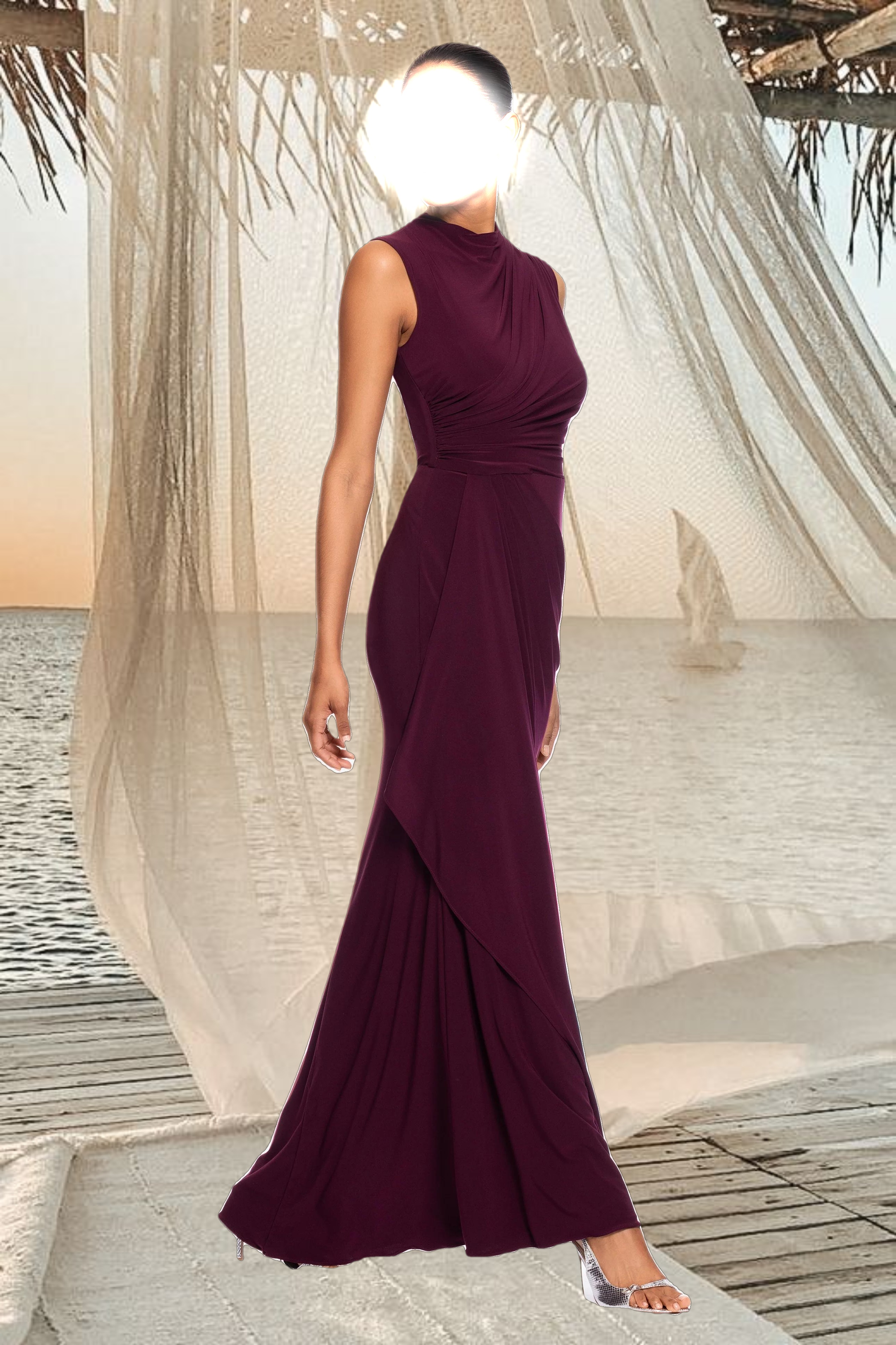 The "Patricia" Long Jersey Knit Ruffle Sleeveless Dress is a chic and versatile addition to any wardrobe. Crafted from soft jersey knit fabric, it offers both comfort and style with its elegant ruffle detailing along the sleeves. Perfect for both casual outings and special occasions, this dress effortlessly combines sophistication with a relaxed vibe.