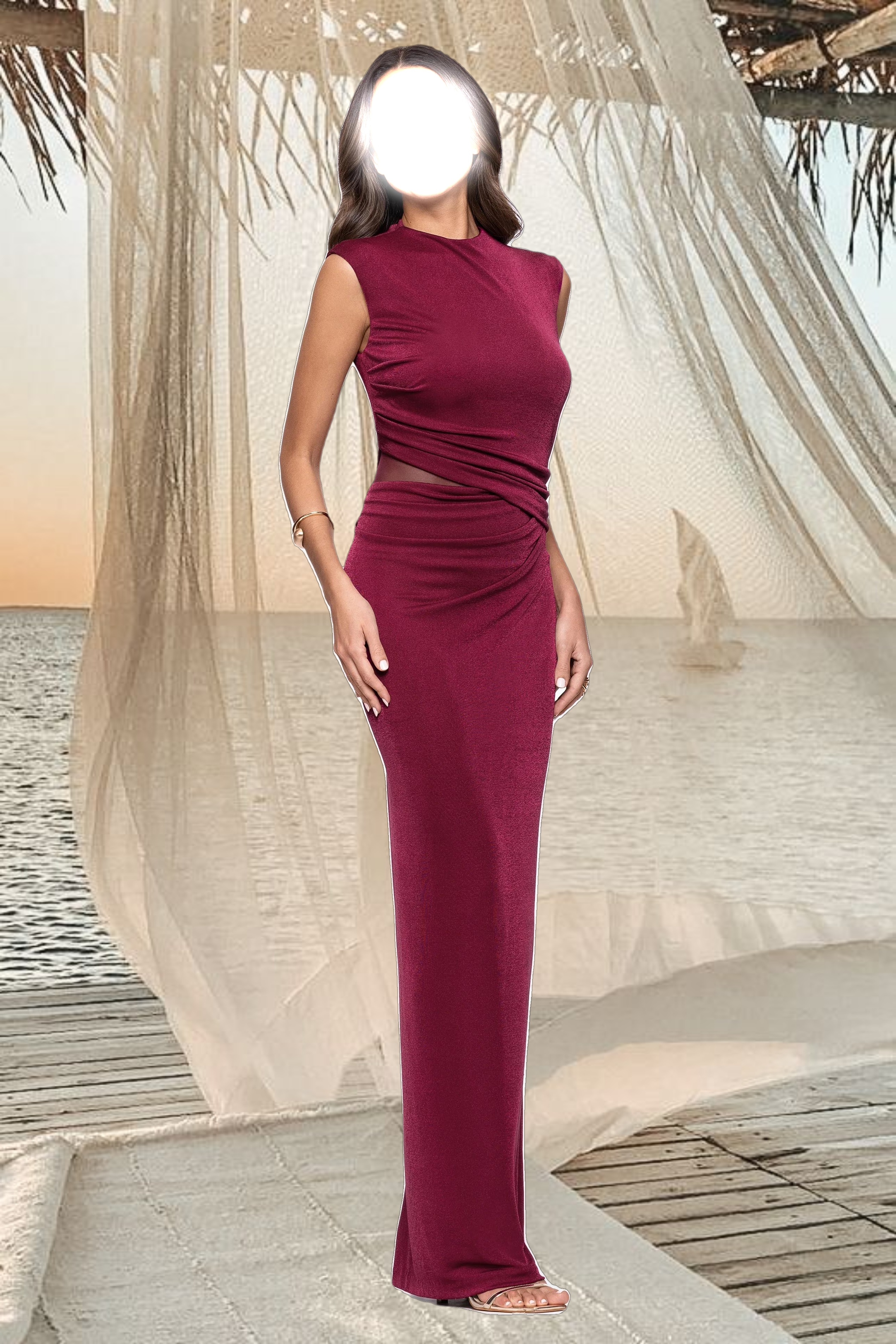 "Alondria" Novelty Knit Side Cutout Sleeveless Floor Length Dress