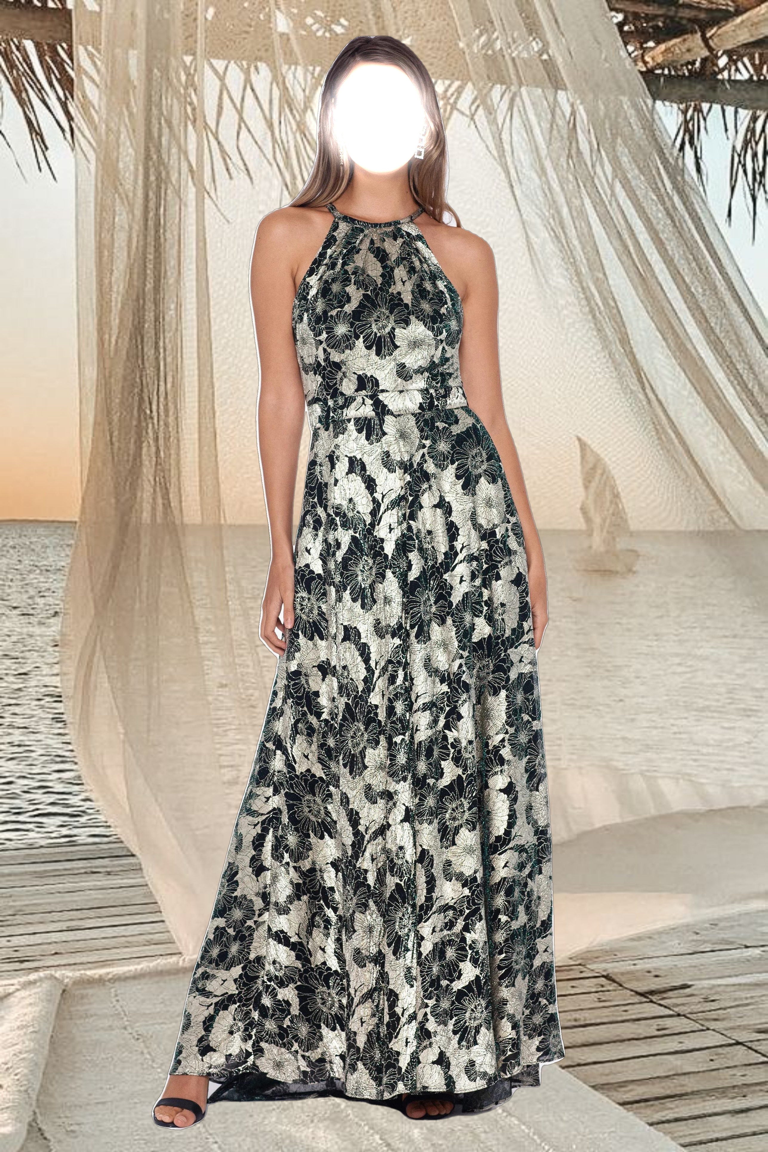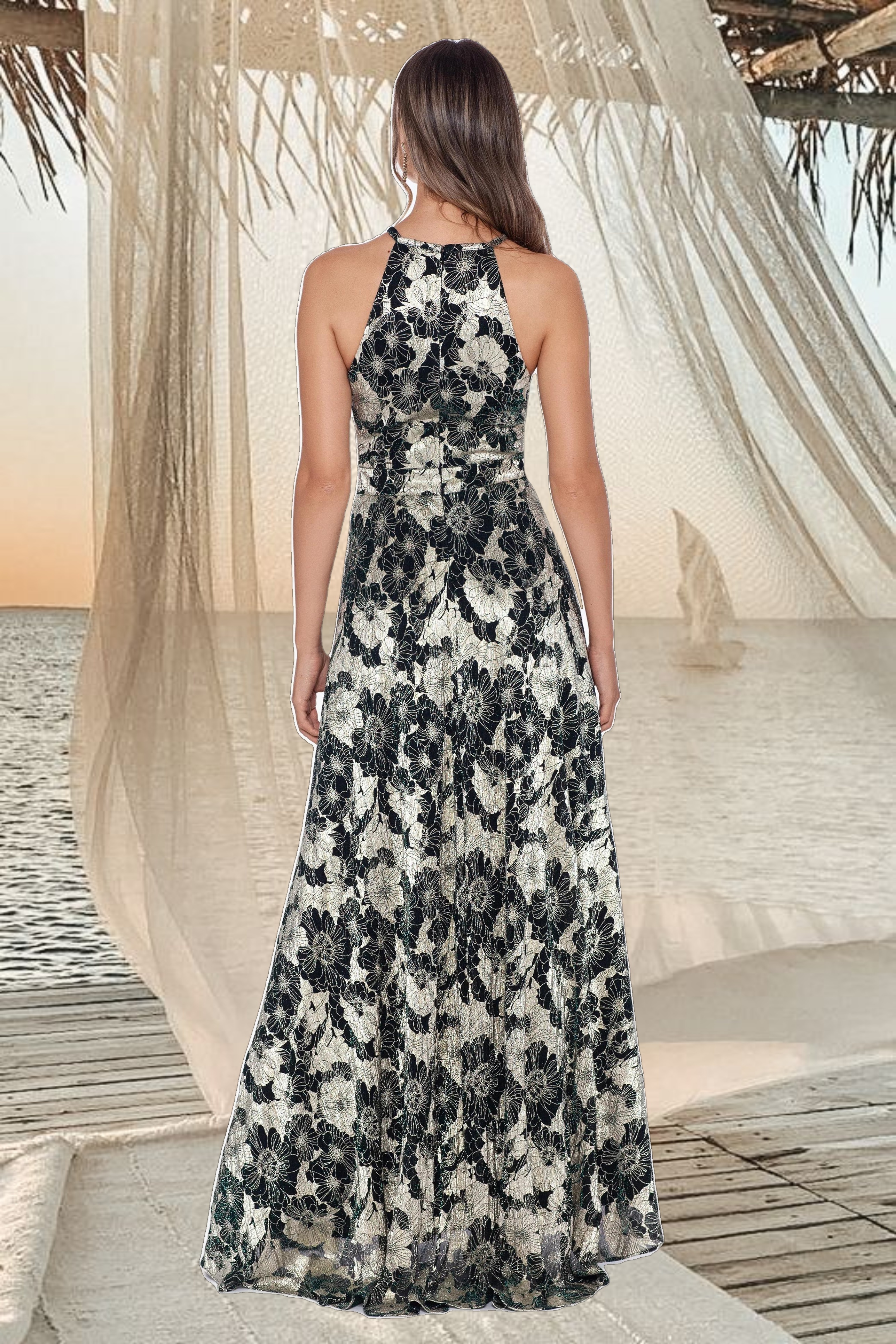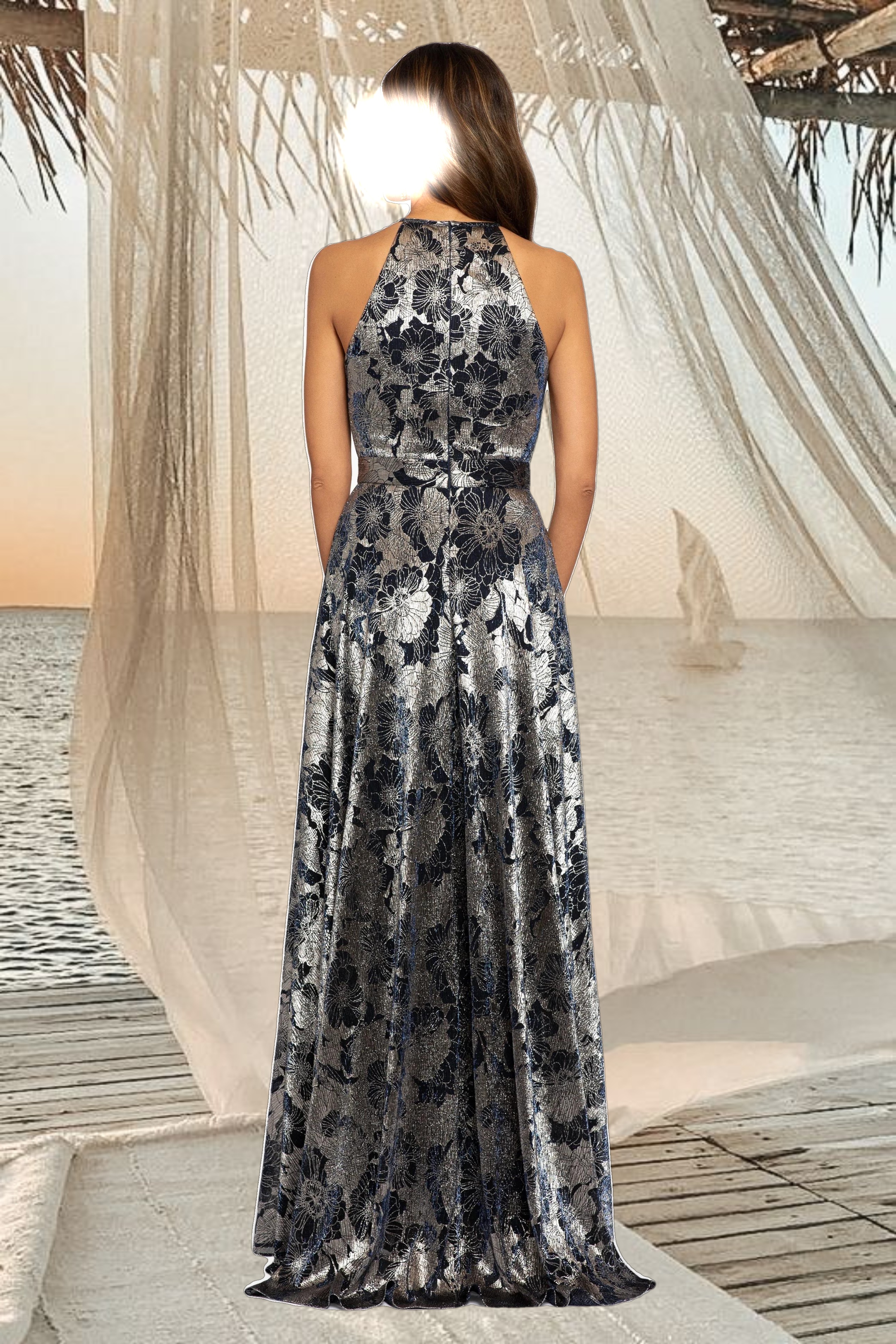 "Layla" Long Halter Top Wrap Foil Print Dress
