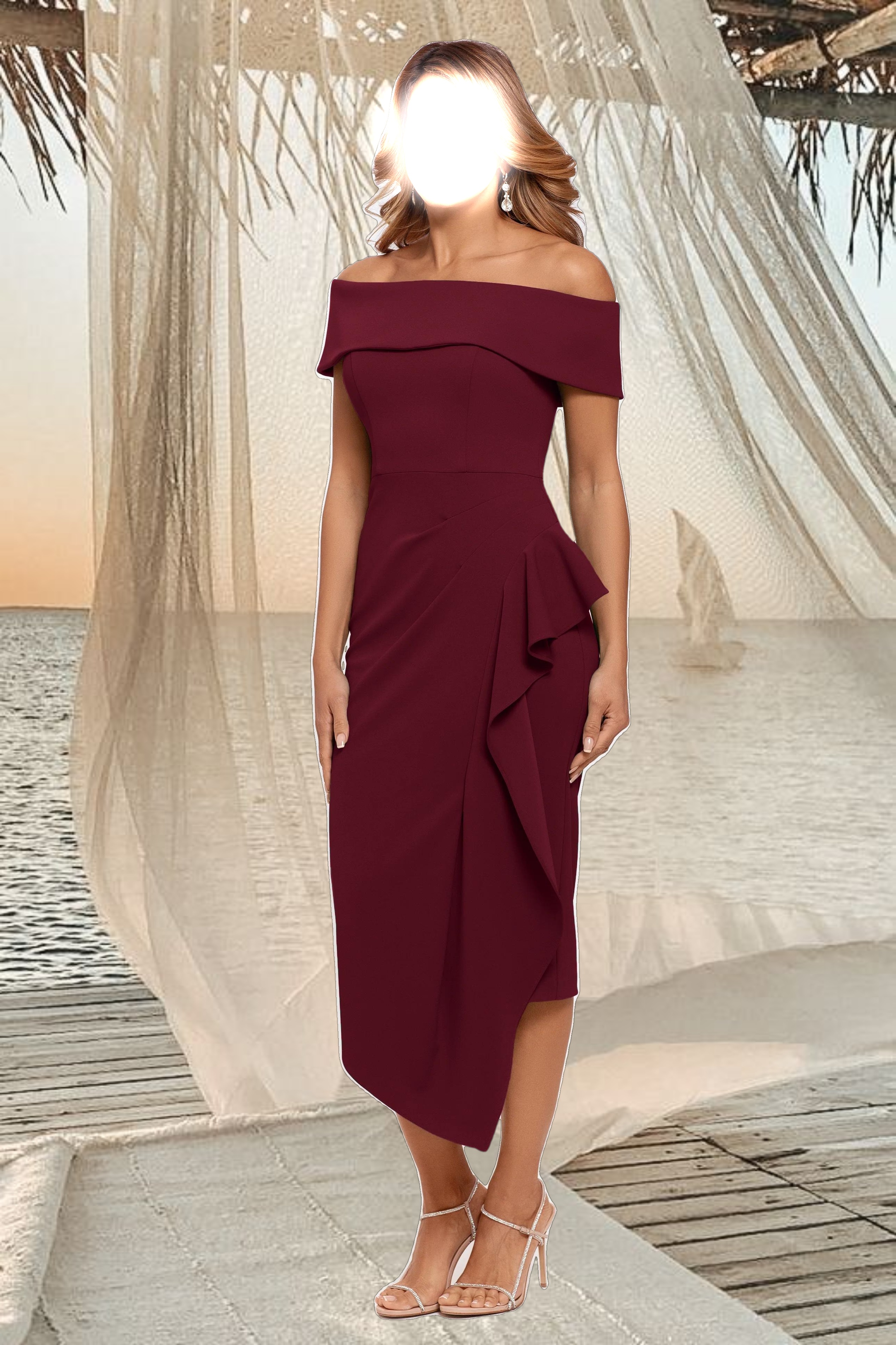 Unleash your inner fashionista with our "Maya" Midi Scuba Crepe Off the Shoulder Cuff Side Ruching Dress! The luxurious scuba crepe material and fully lined design exude elegance, while the hidden back zipper ensures a seamless fit. Stand out with the on-trend off the shoulder style, cuffed details, and flattering side ruching. Perfect for any occasion, this midi dress is a must-have addition to your wardrobe!