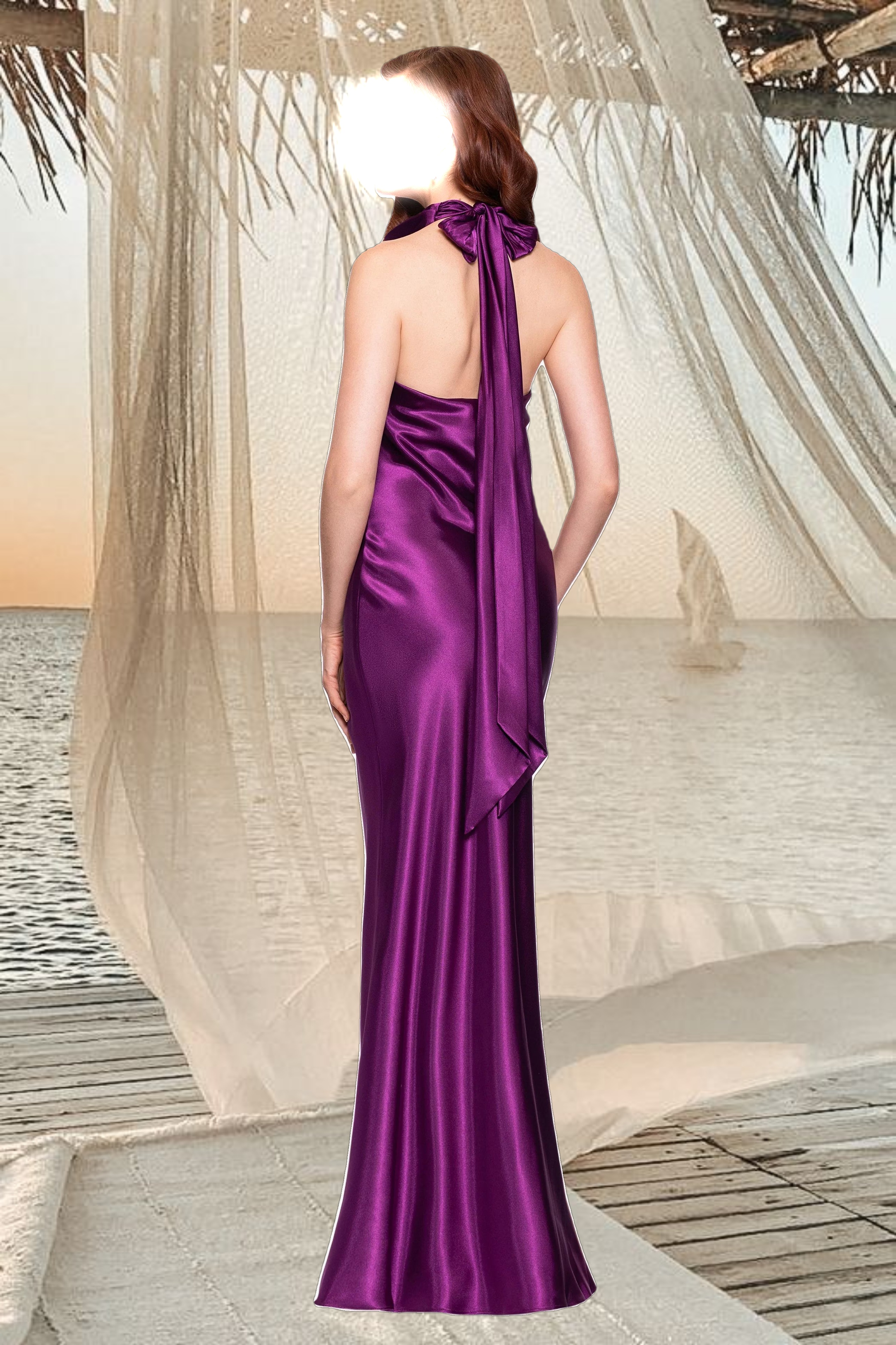 - Details: Backless, Tie Halter Neck, Sheath