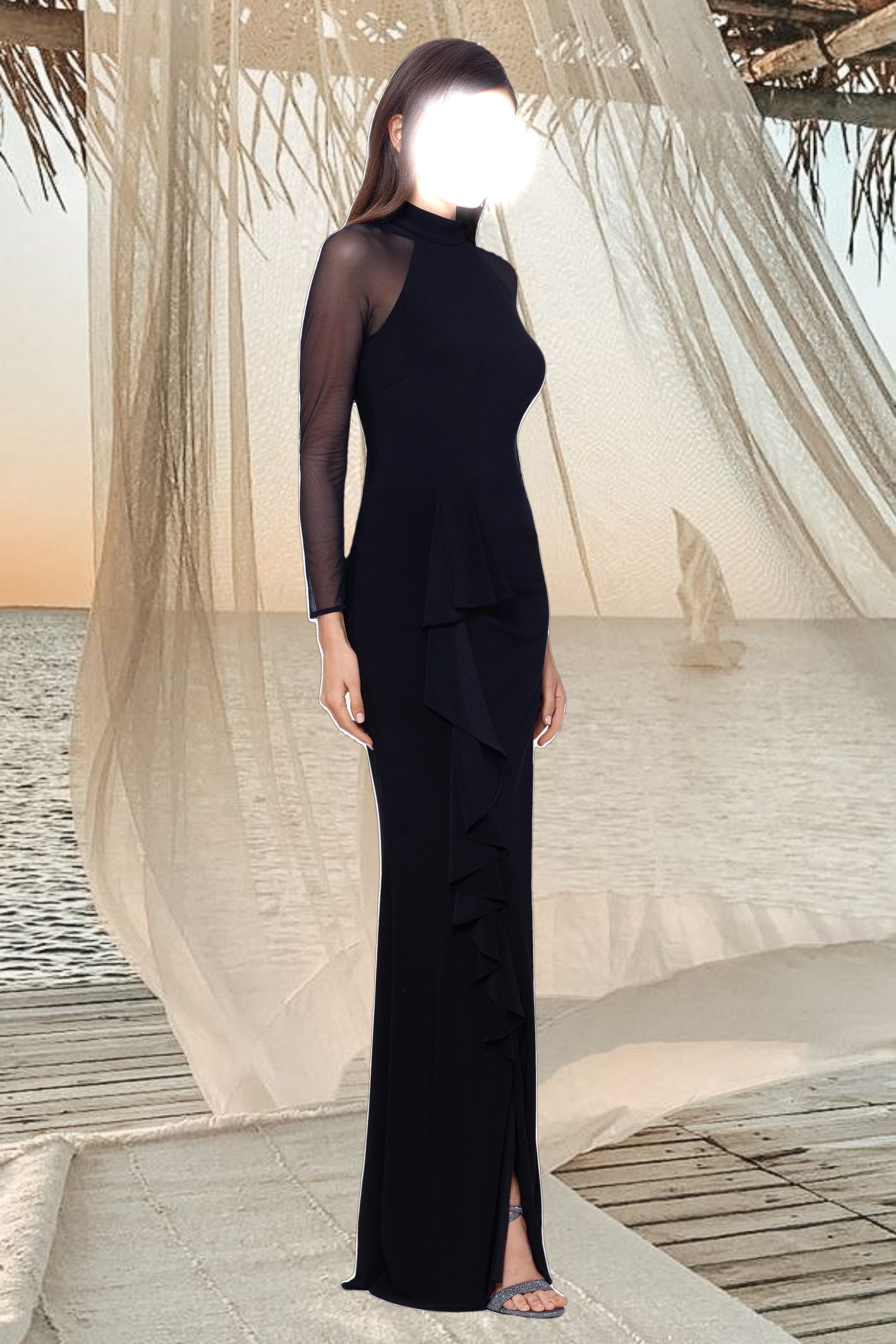 "Valerie" Long Mock Neck Mesh Long Sleeve Dress