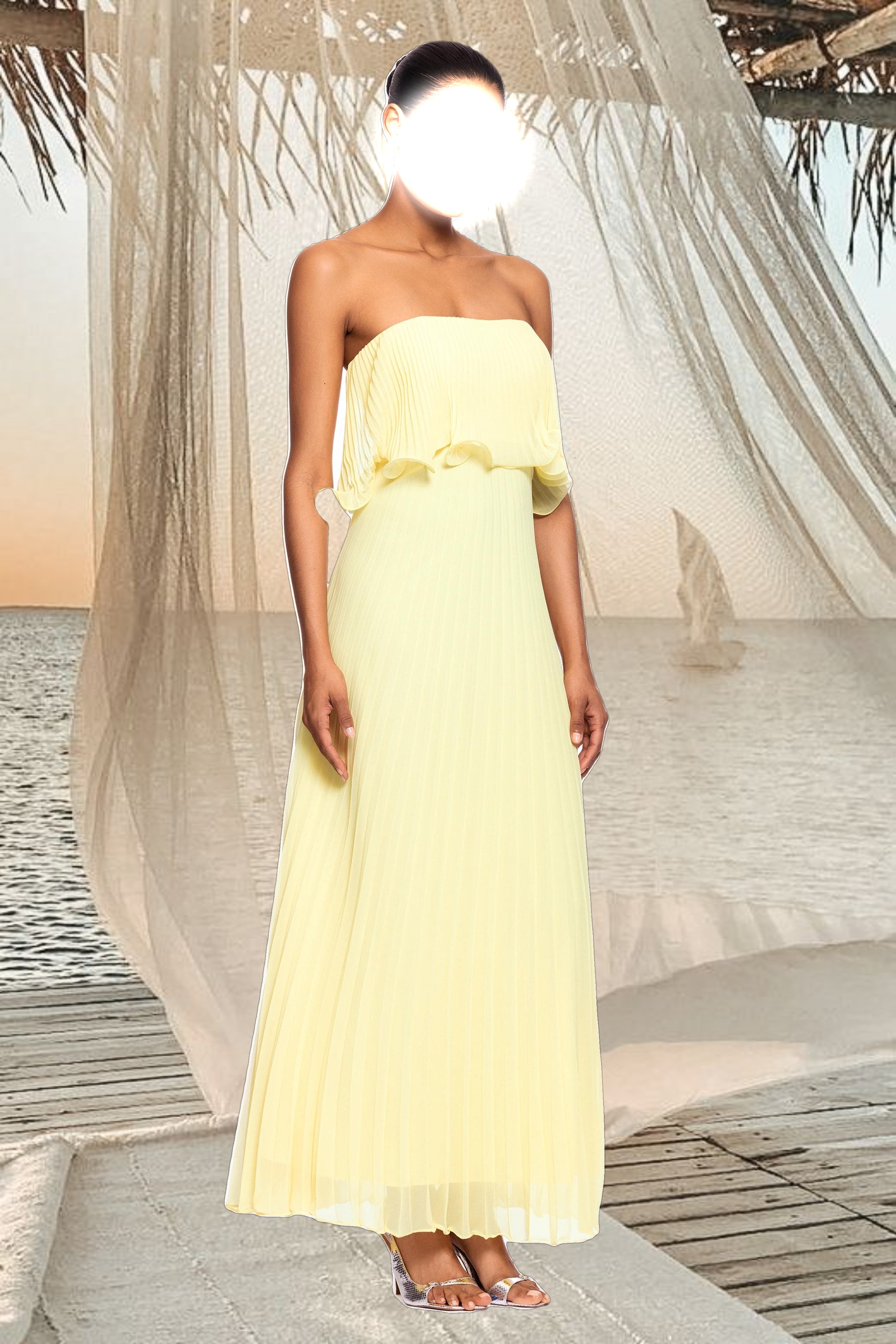 Home / all-dresses / "Zoe" Strapless Chiffon Pleated Floor Length Dress