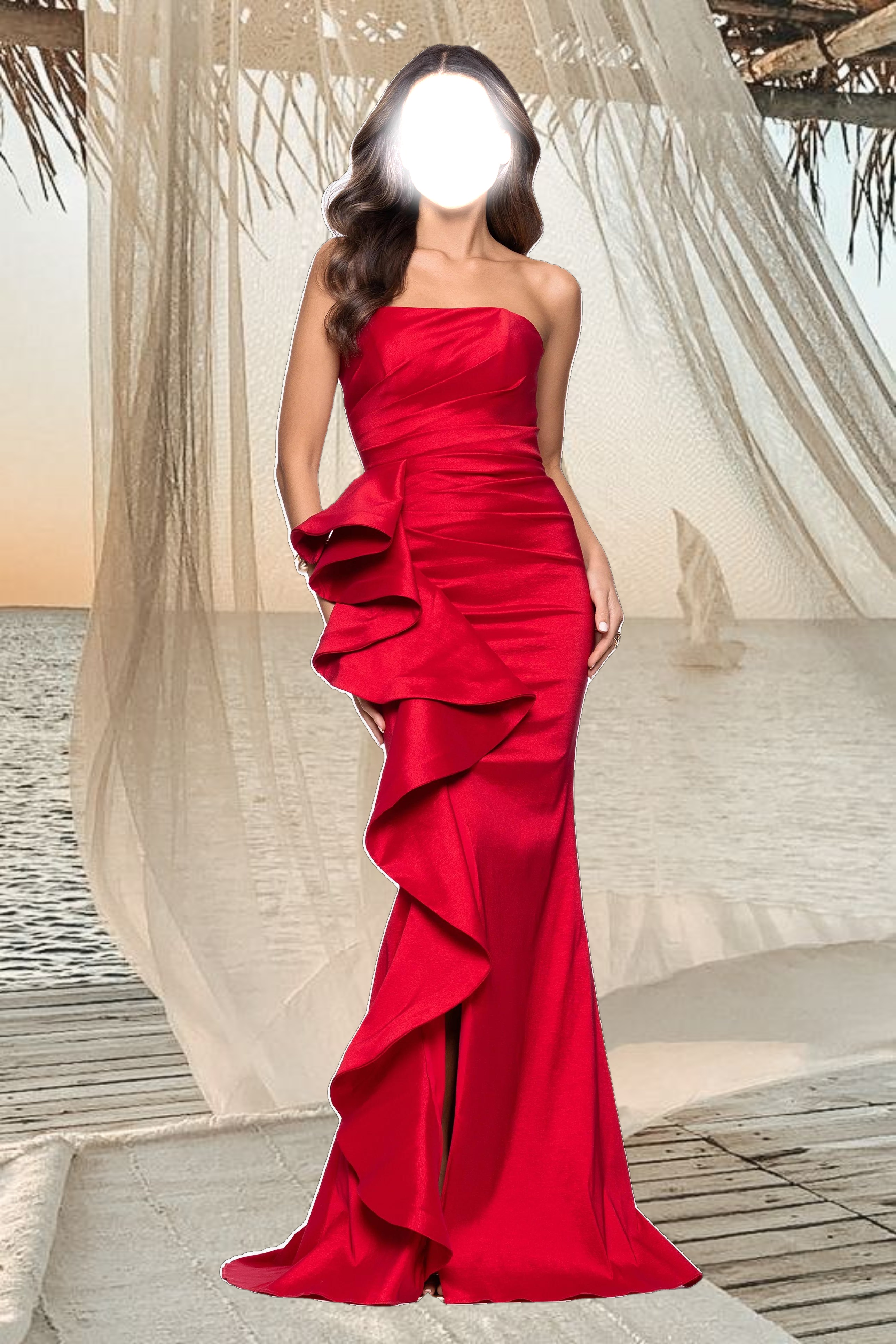 "Rowan" Taffeta Strapless Ruffle Floor Length Dress