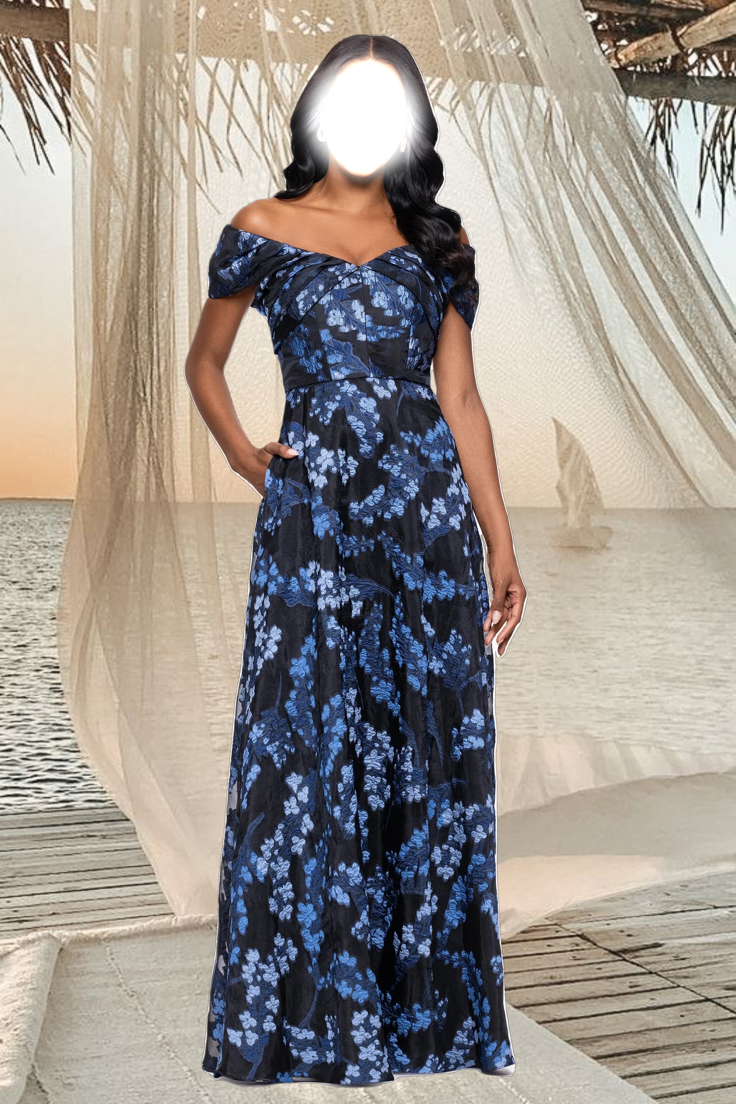 "Amaira" Organza Brocade Off the Shoulder Floor Length Dress