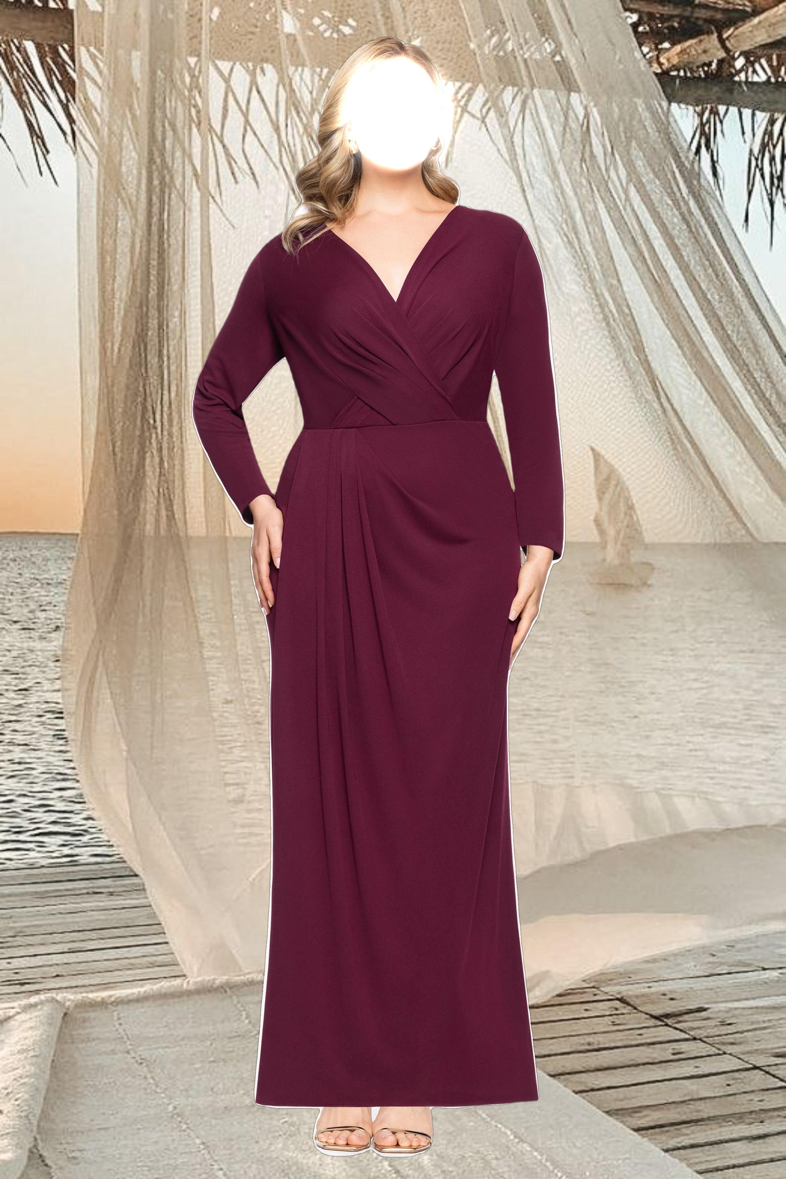 "Margerat" Jersey V-Neck Long Sleeve Floor Length Dress