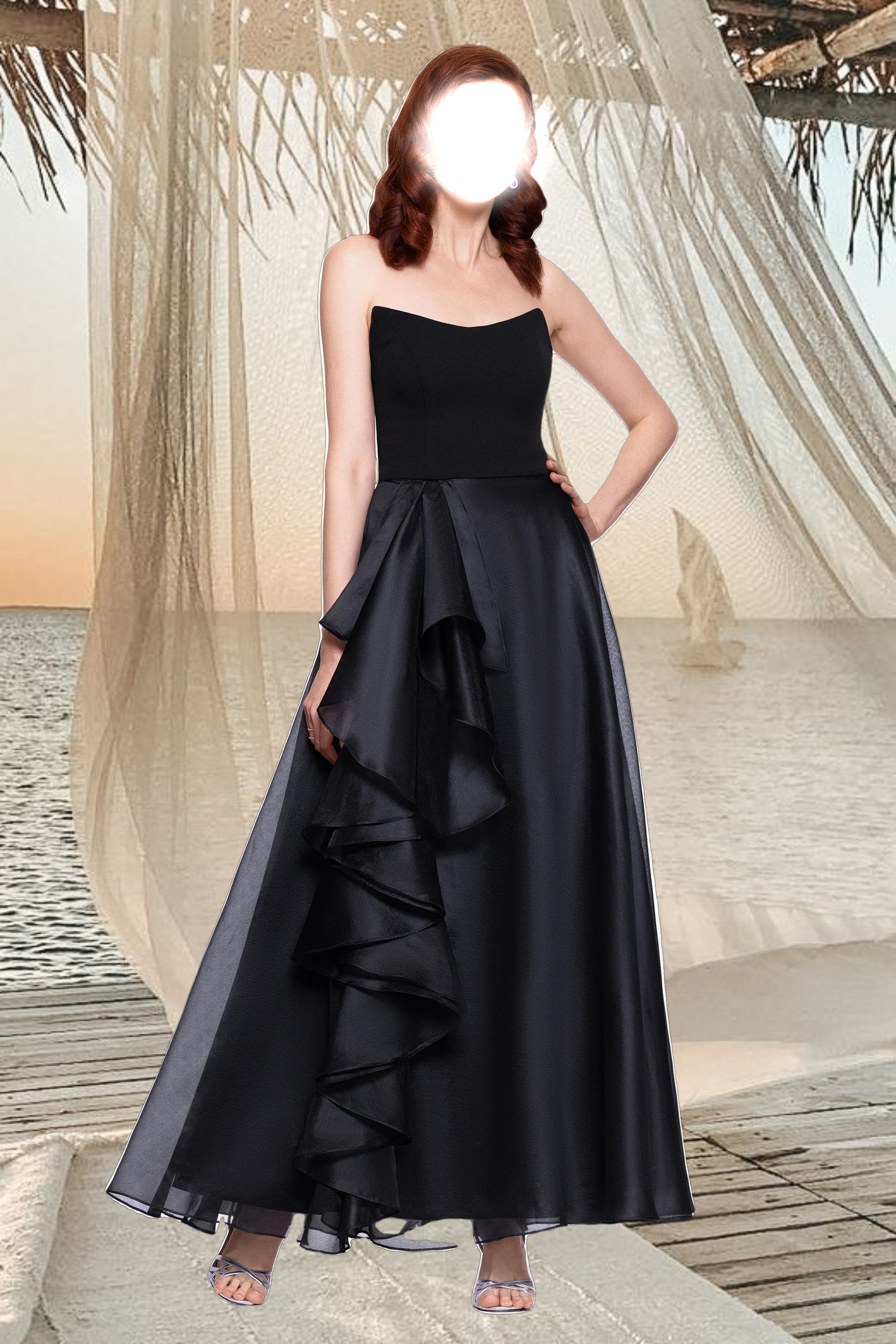 "Josephine" Scuba Crepe and Organza Floor Ruffle Floor Length Dress