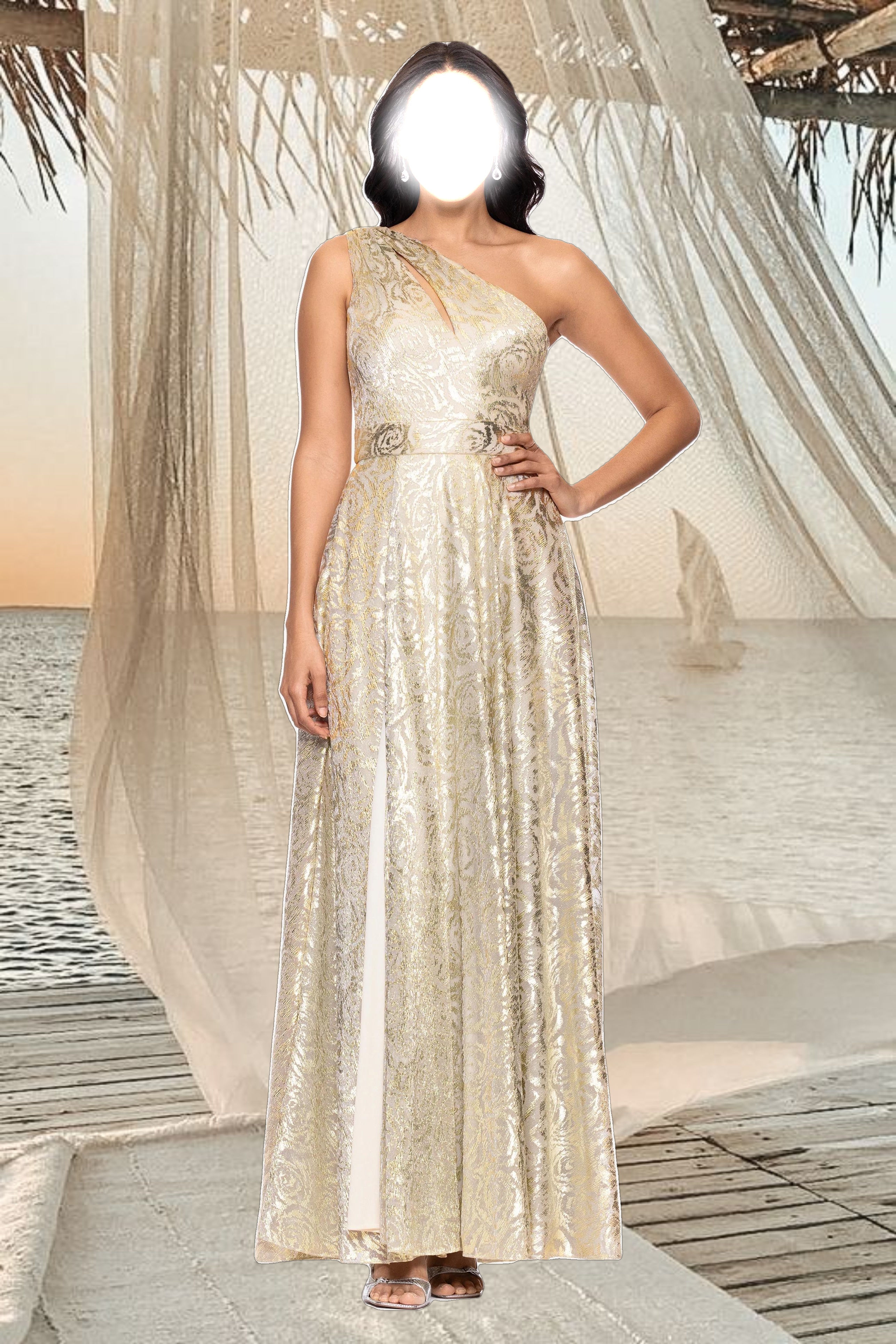 "Mariah" Metallic Foil Knit One Shoulder Floor Length Dress