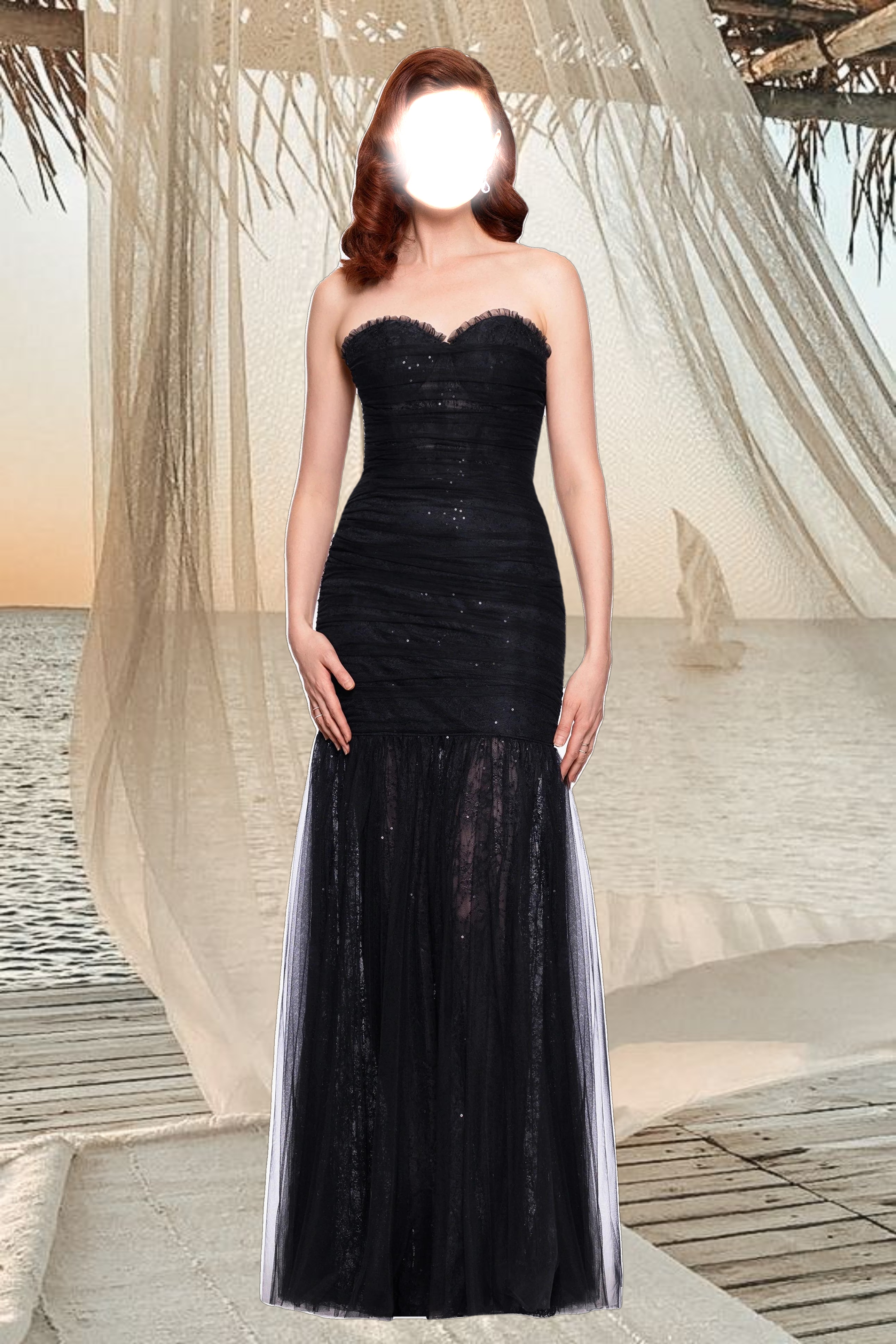 Petite "Candace" Long V- Neck Hi Low Cascade Dress