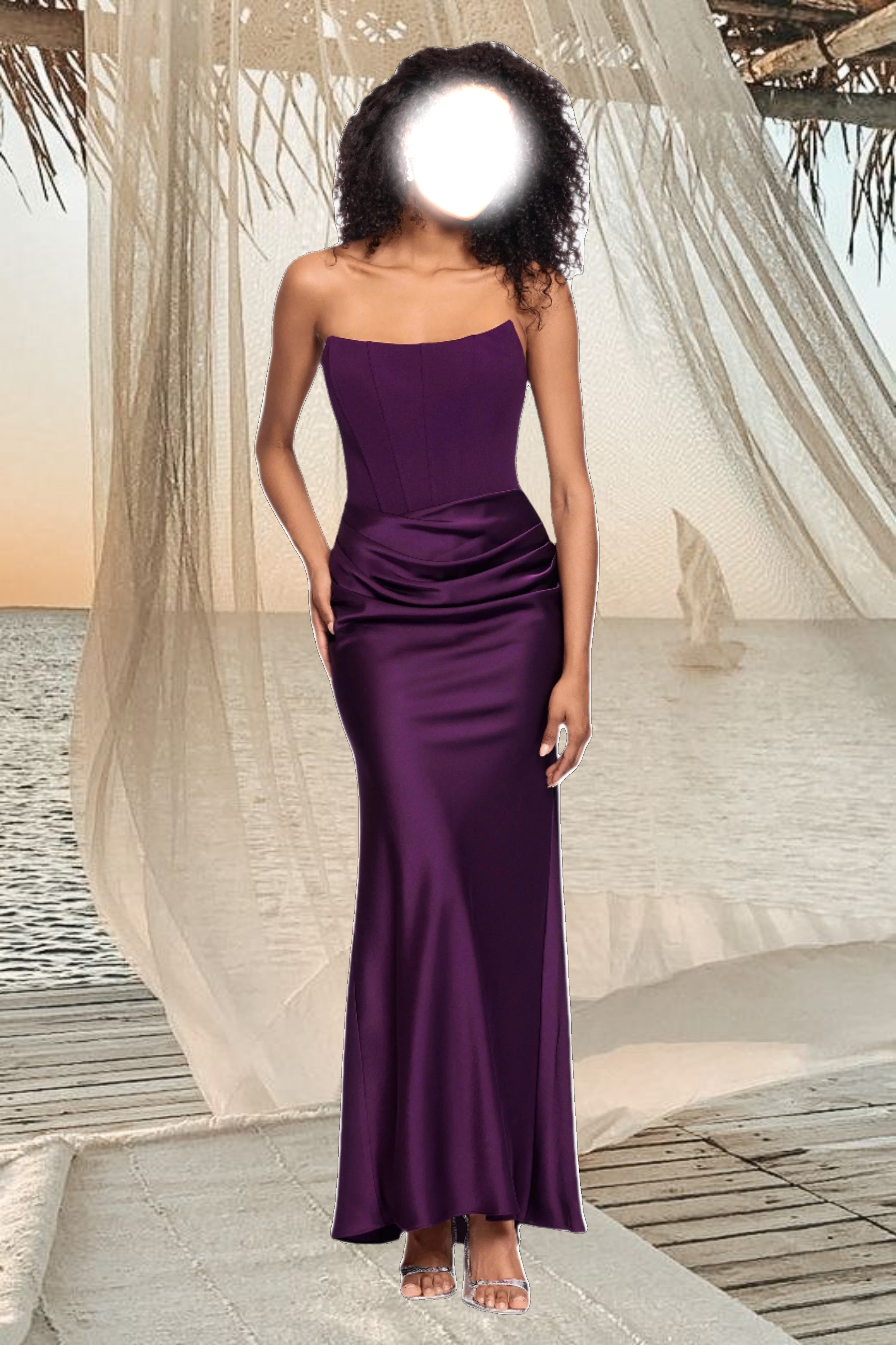 "Debra" Long Strapless Scuba Crepe and Satin Gown