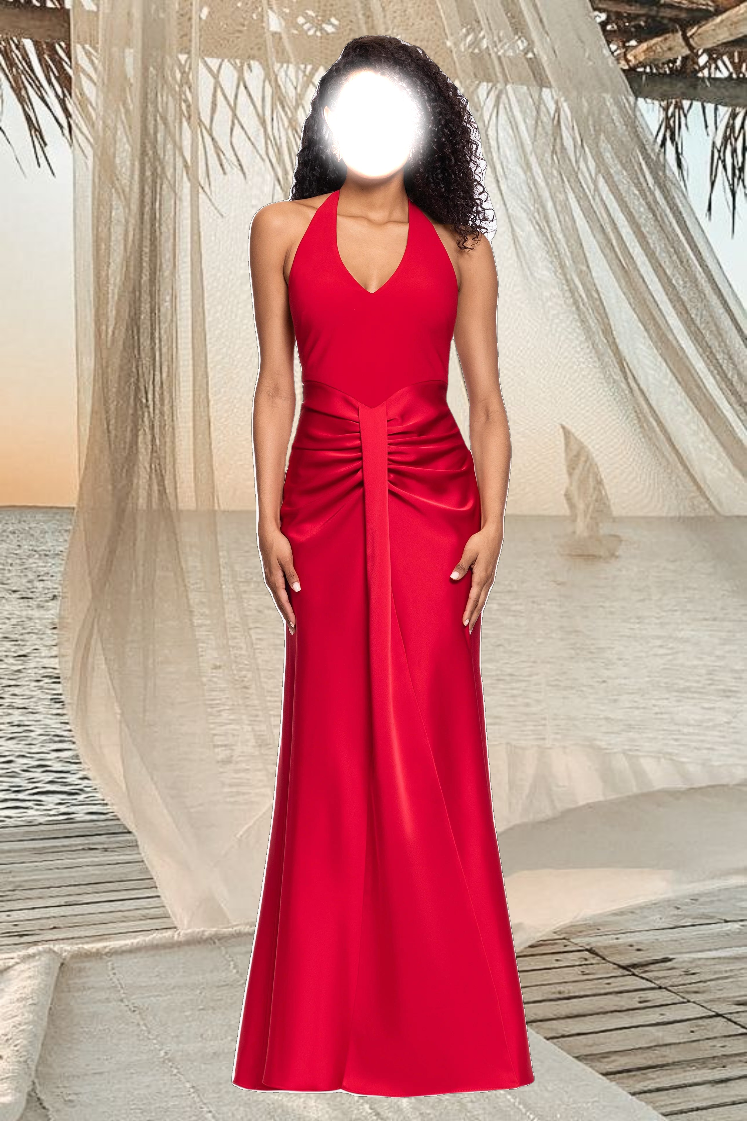 "Roxy" Jersey Knit Halter Neck With Satin Skirt Floor Length Dress