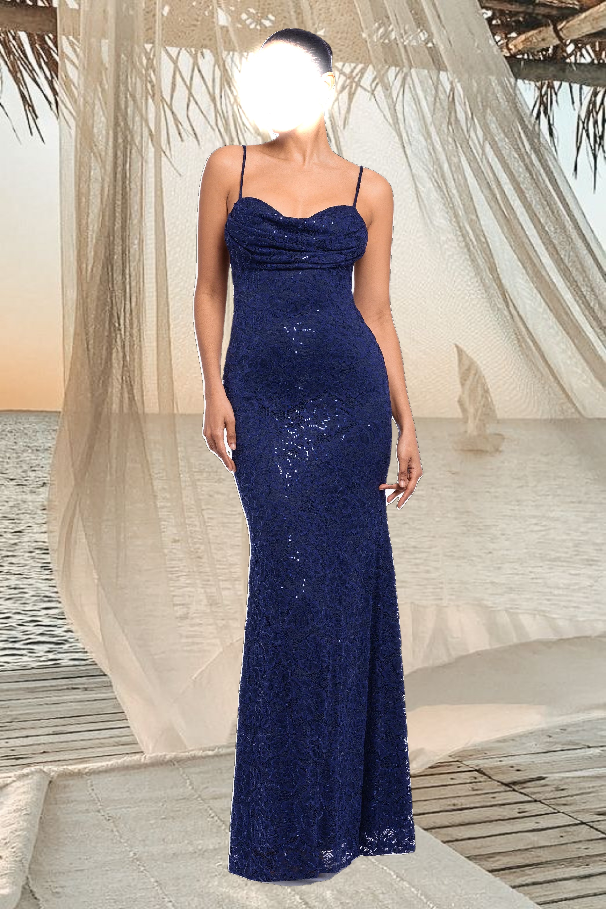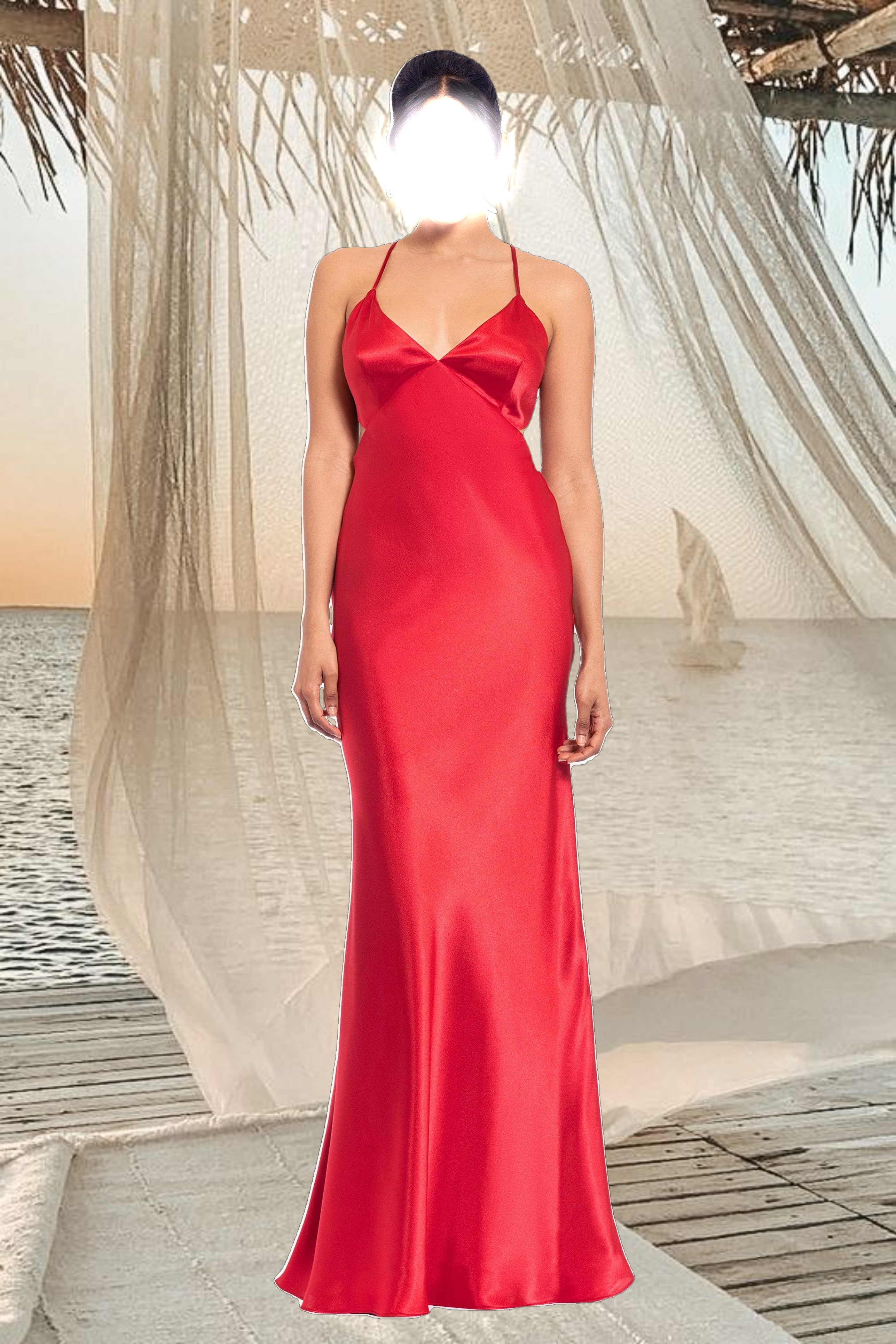 "Grace" Long Spaghetti Strap Tieback Dress