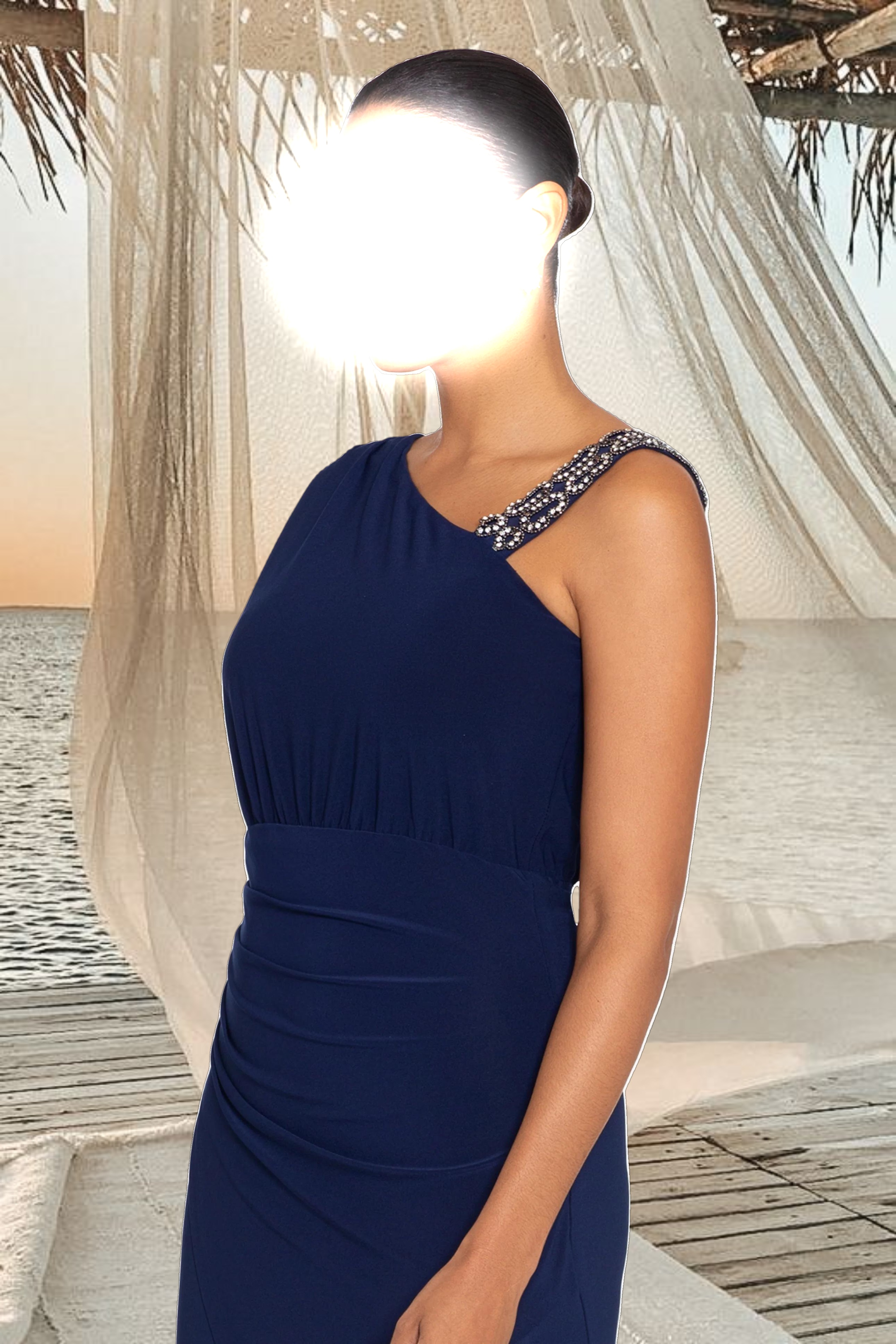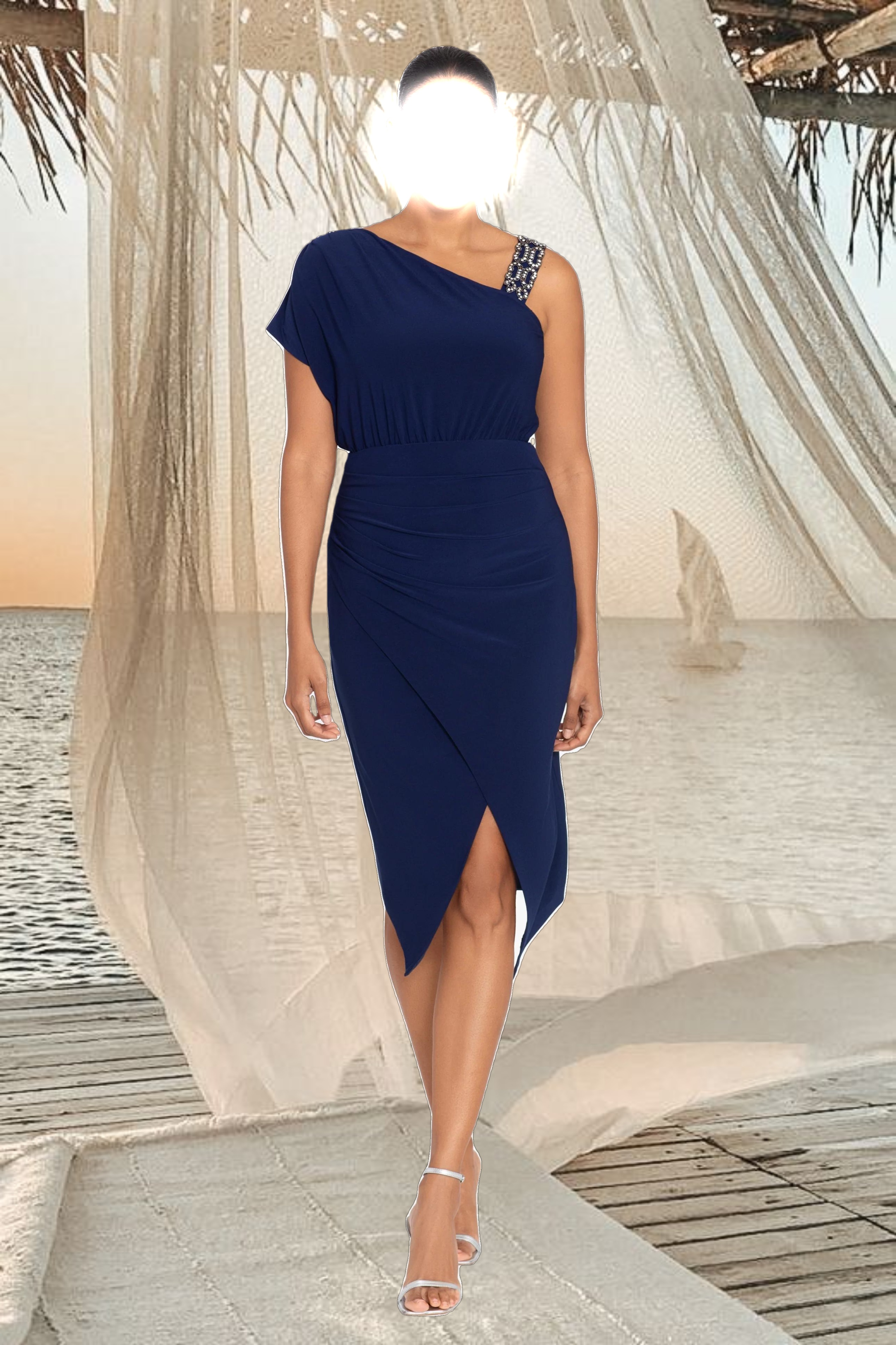 "Caitlin" Knee Length Jersey Knit Beaded Strap Dress