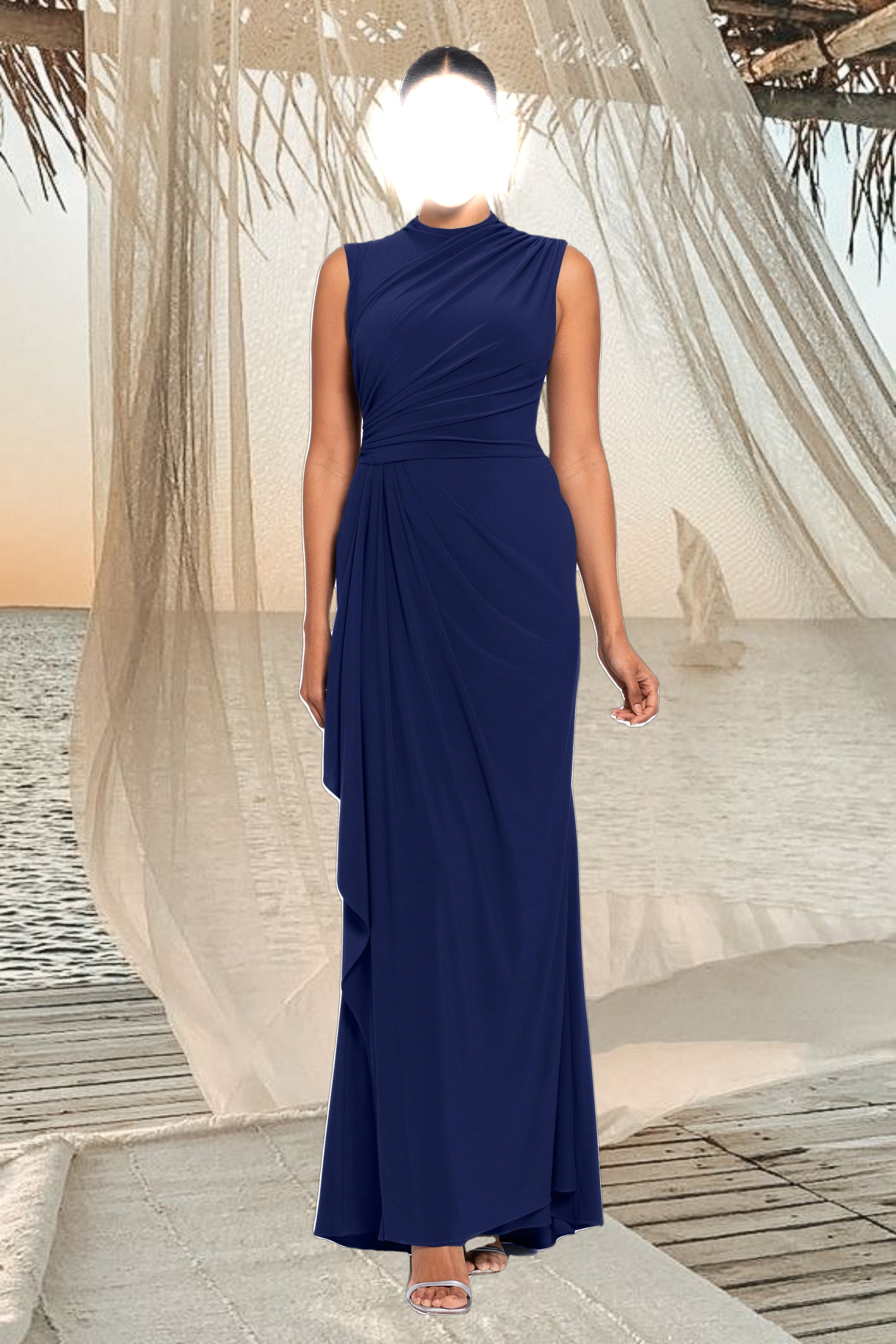 "Patricia" Long Jersey Knit Ruffle Sleeveless Dress