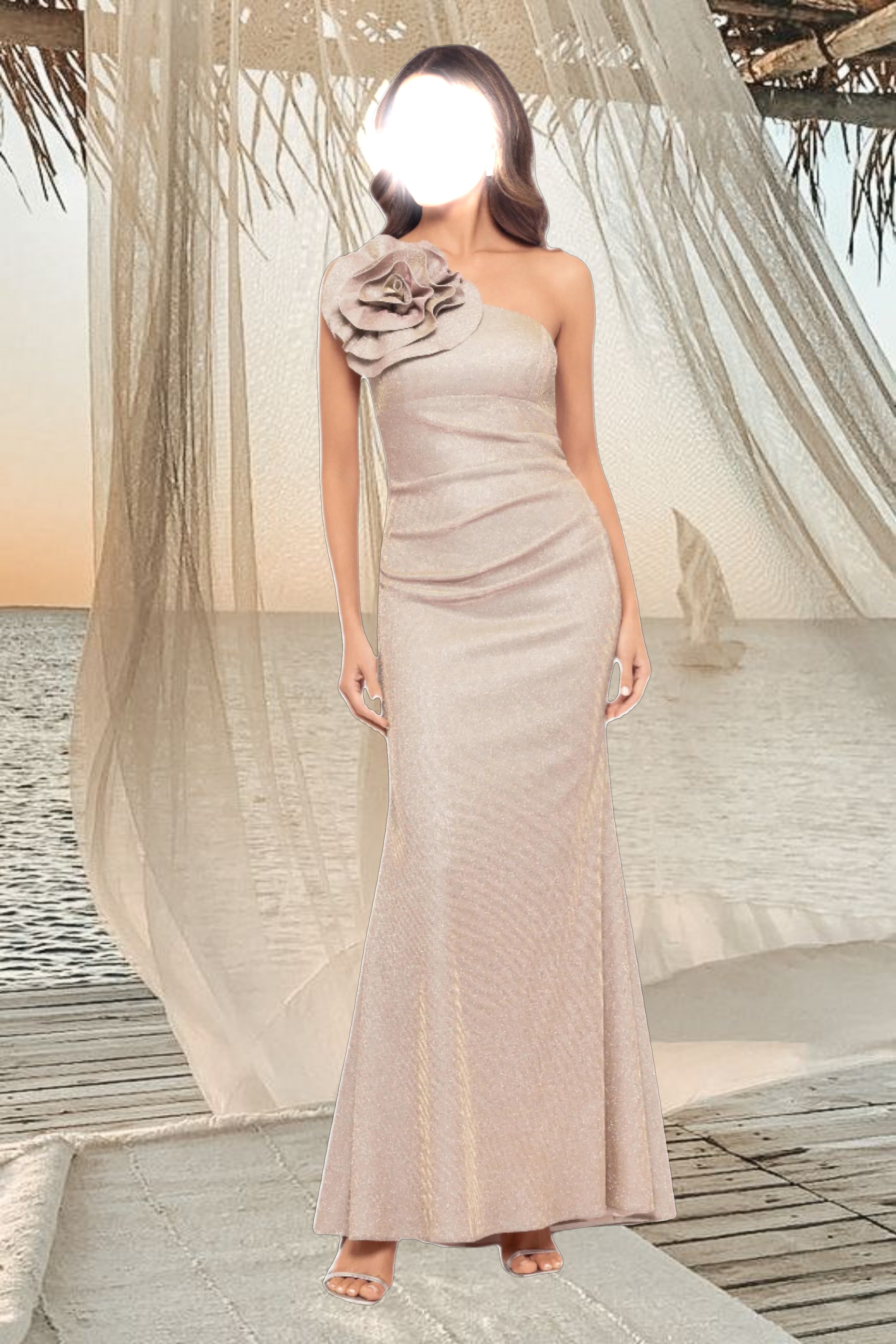 "Phoebe" Galaxy Knit One Shoulder Flower Floor Length Dress