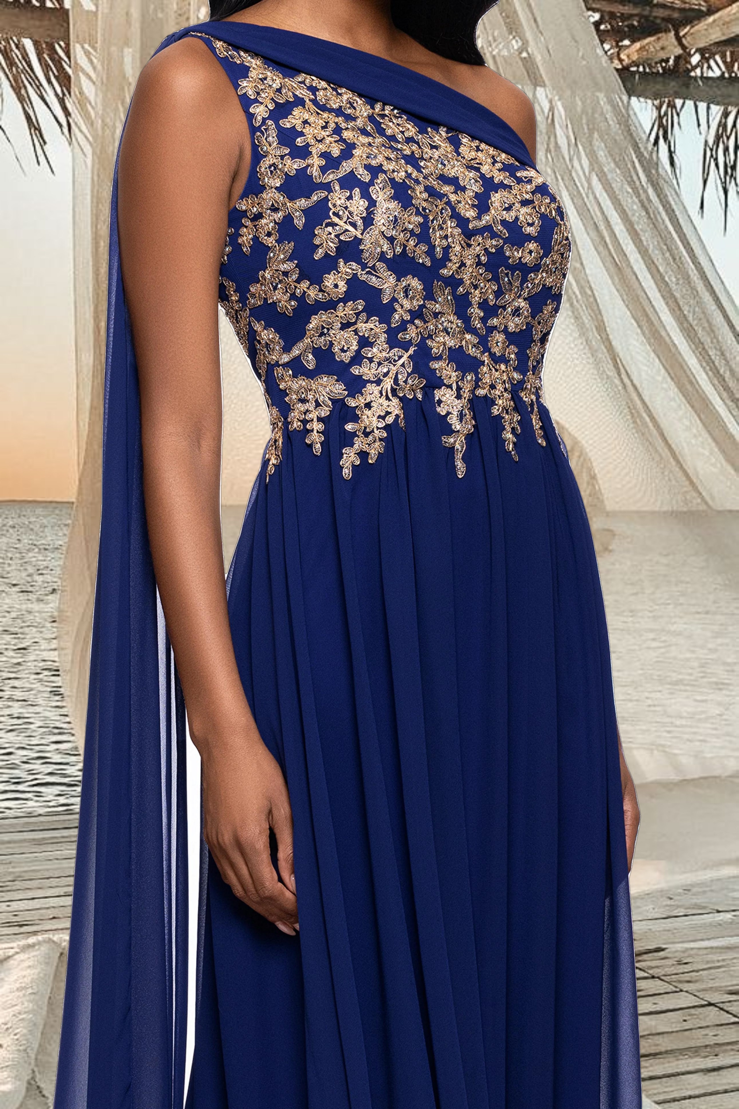 "Dove" Chiffon Drop Shoulder Applique Floor Length Dress