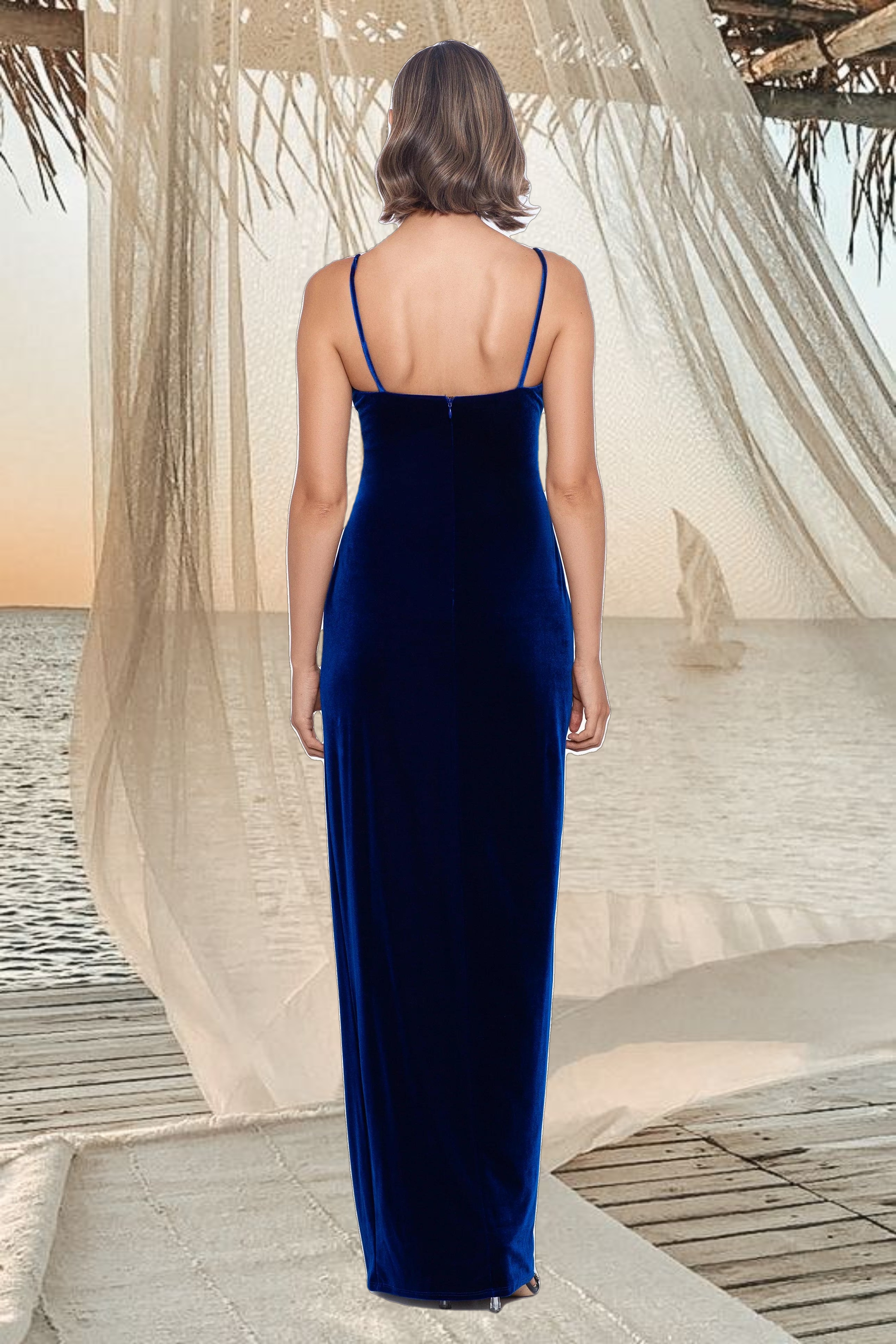"Maritza" Long Velvet Spaghetti Strap Dress