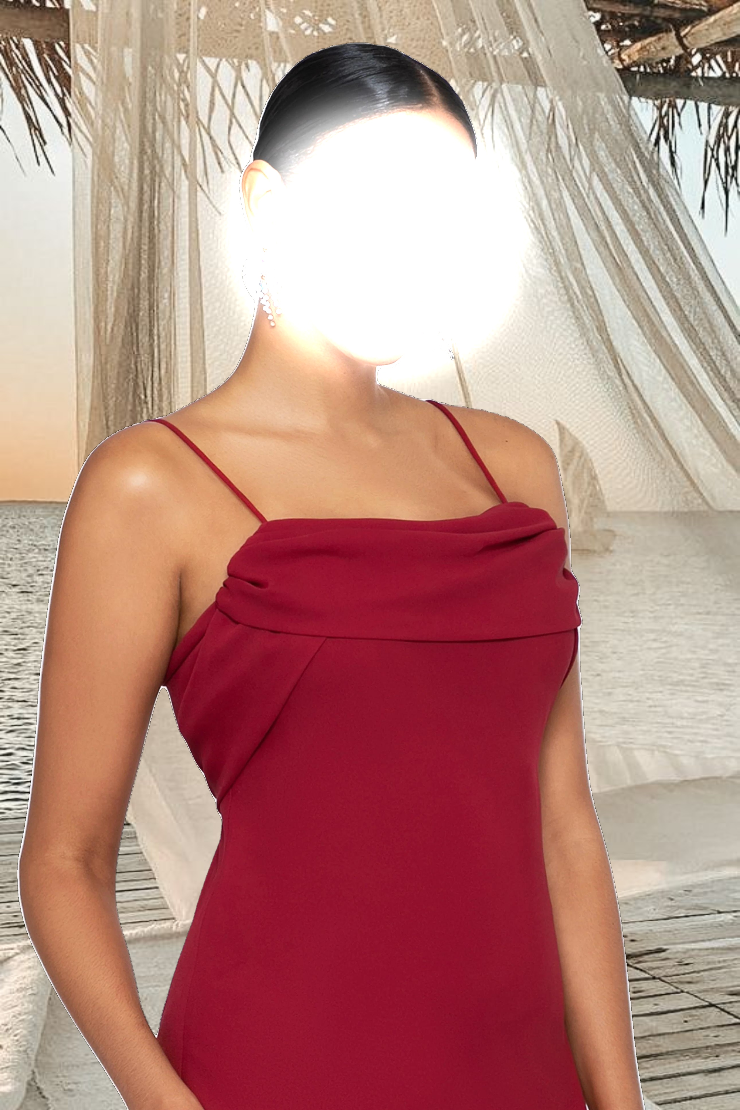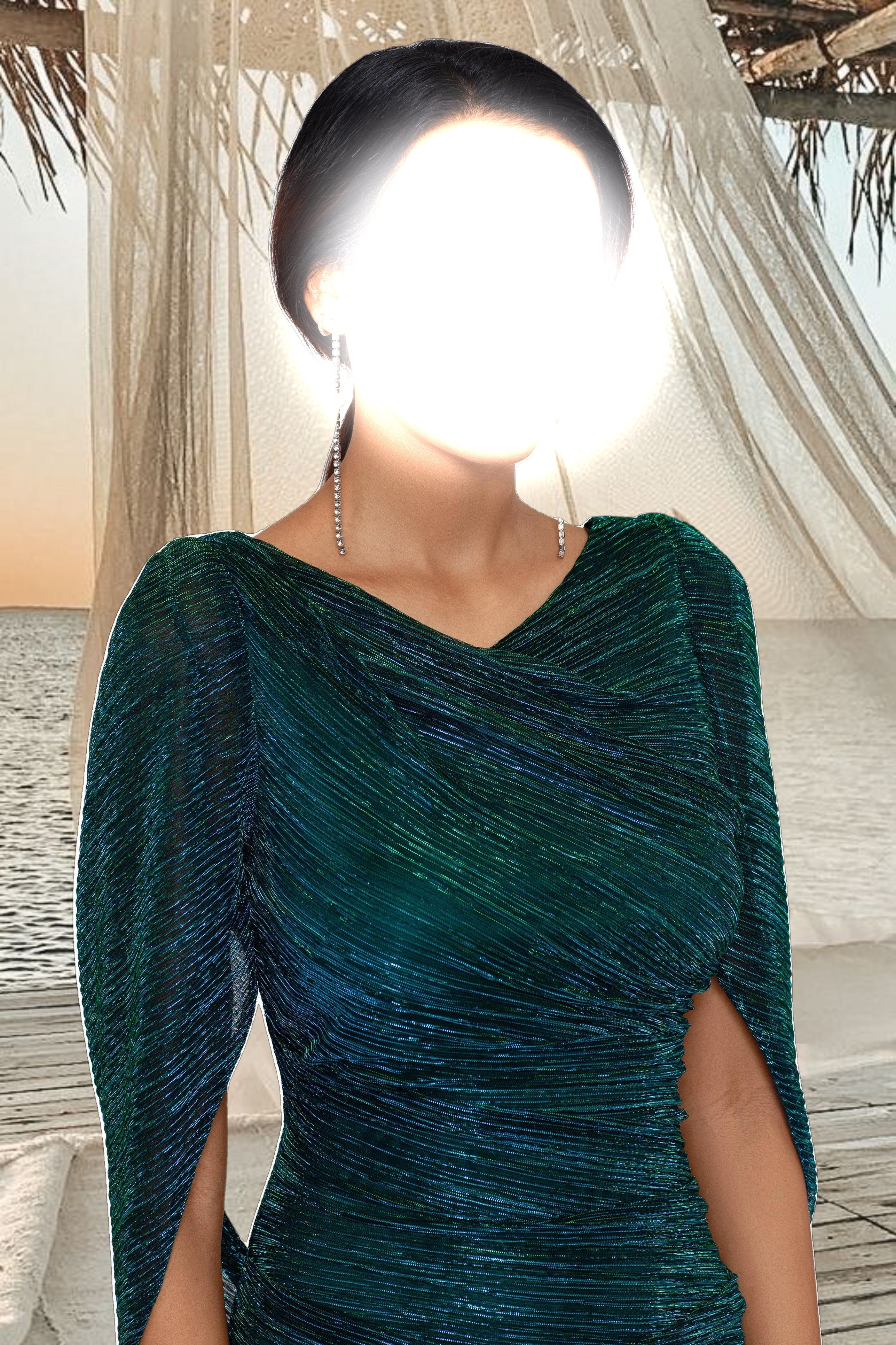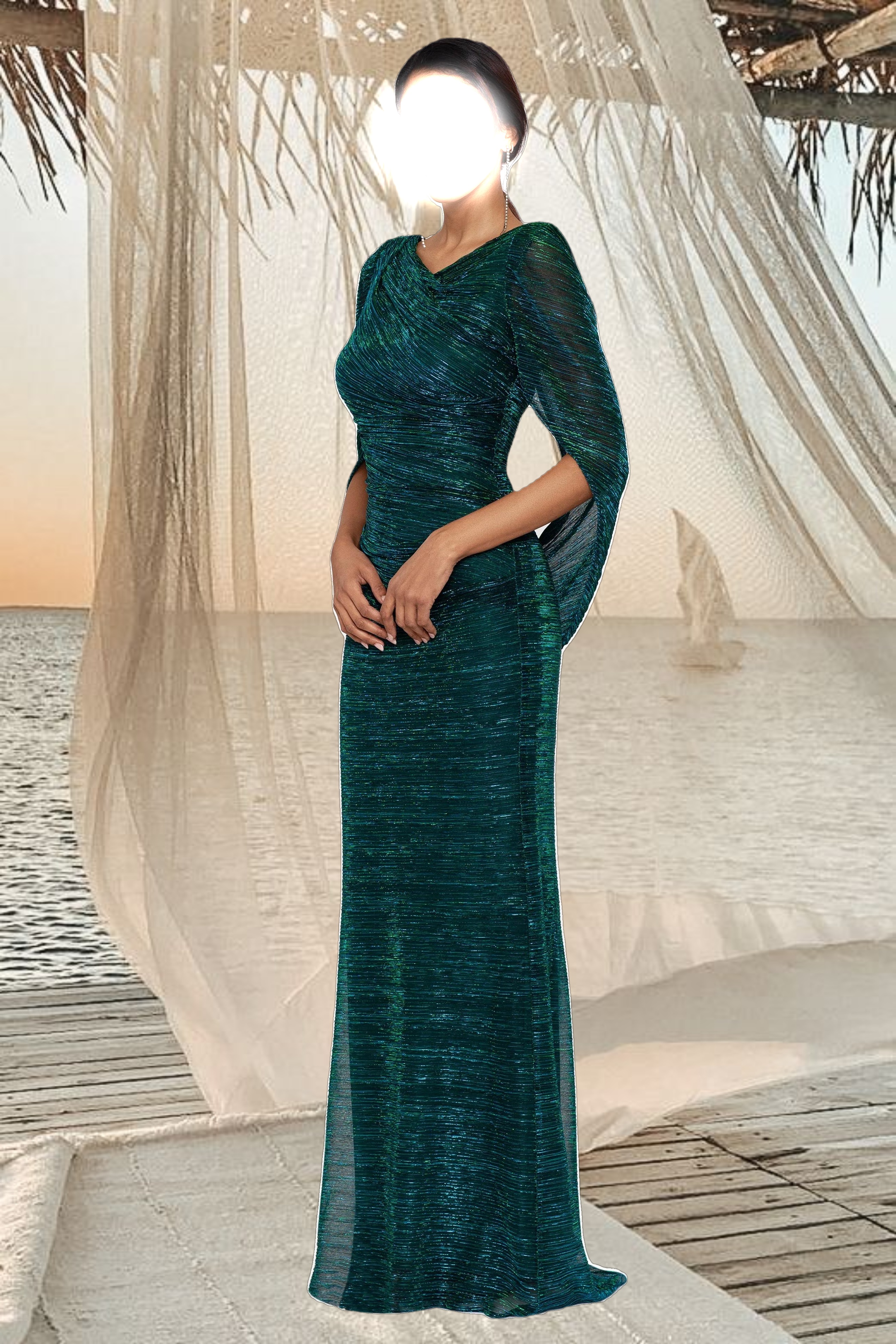 "Elaine" Long Metallic Crinkle Cowl Neck Back Dress