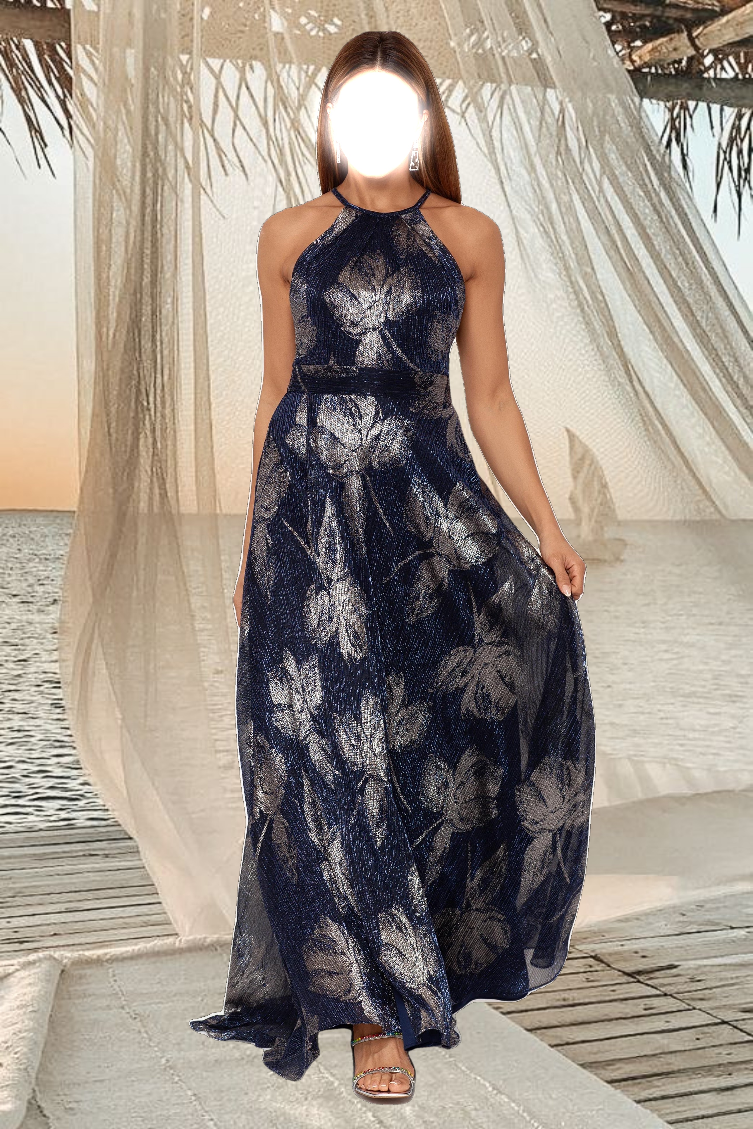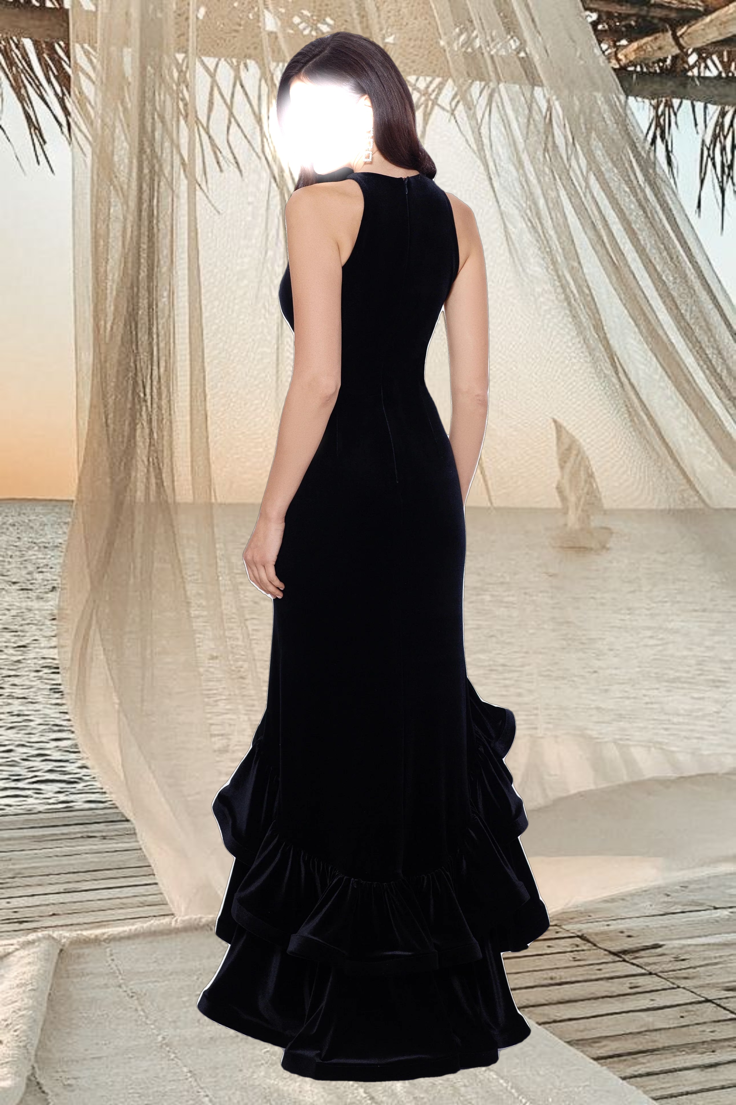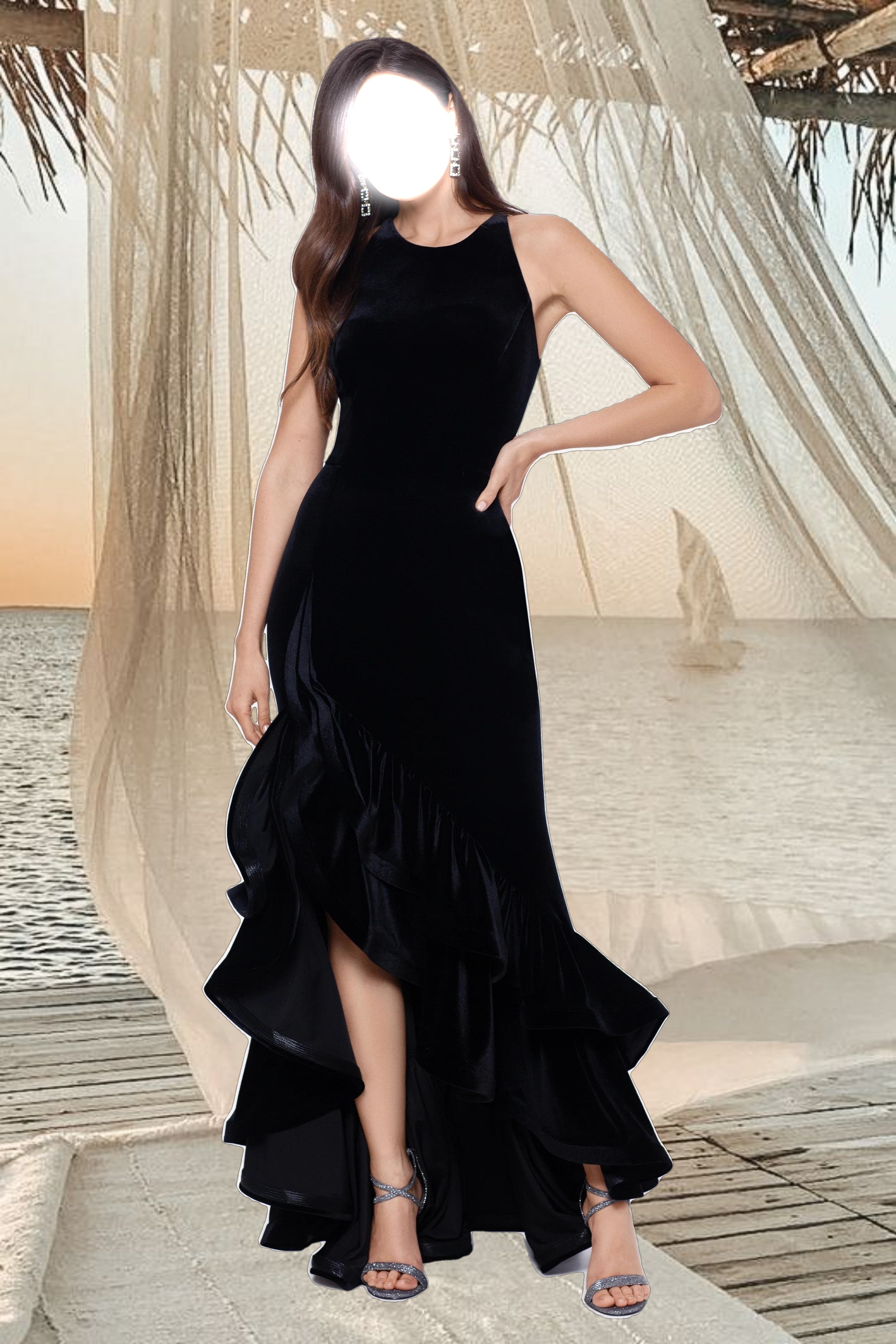 Petite "Candace" Long V- Neck Hi Low Cascade Dress