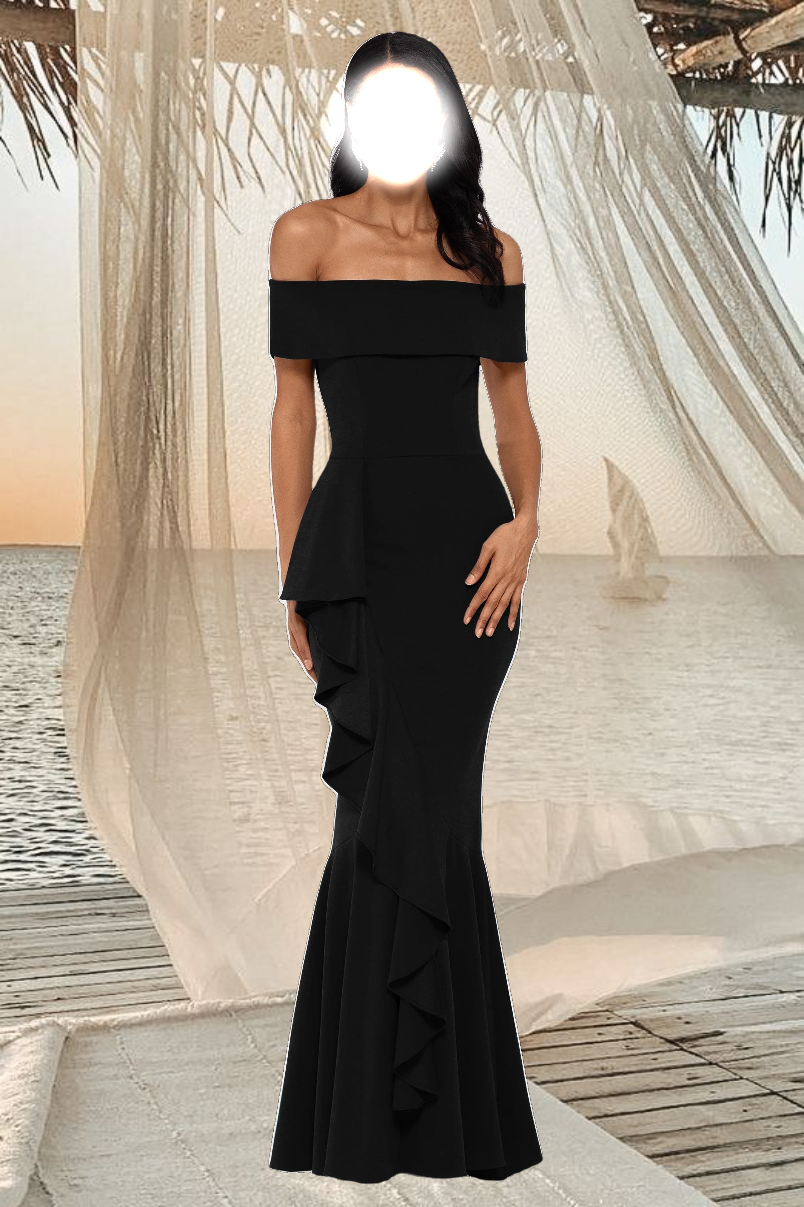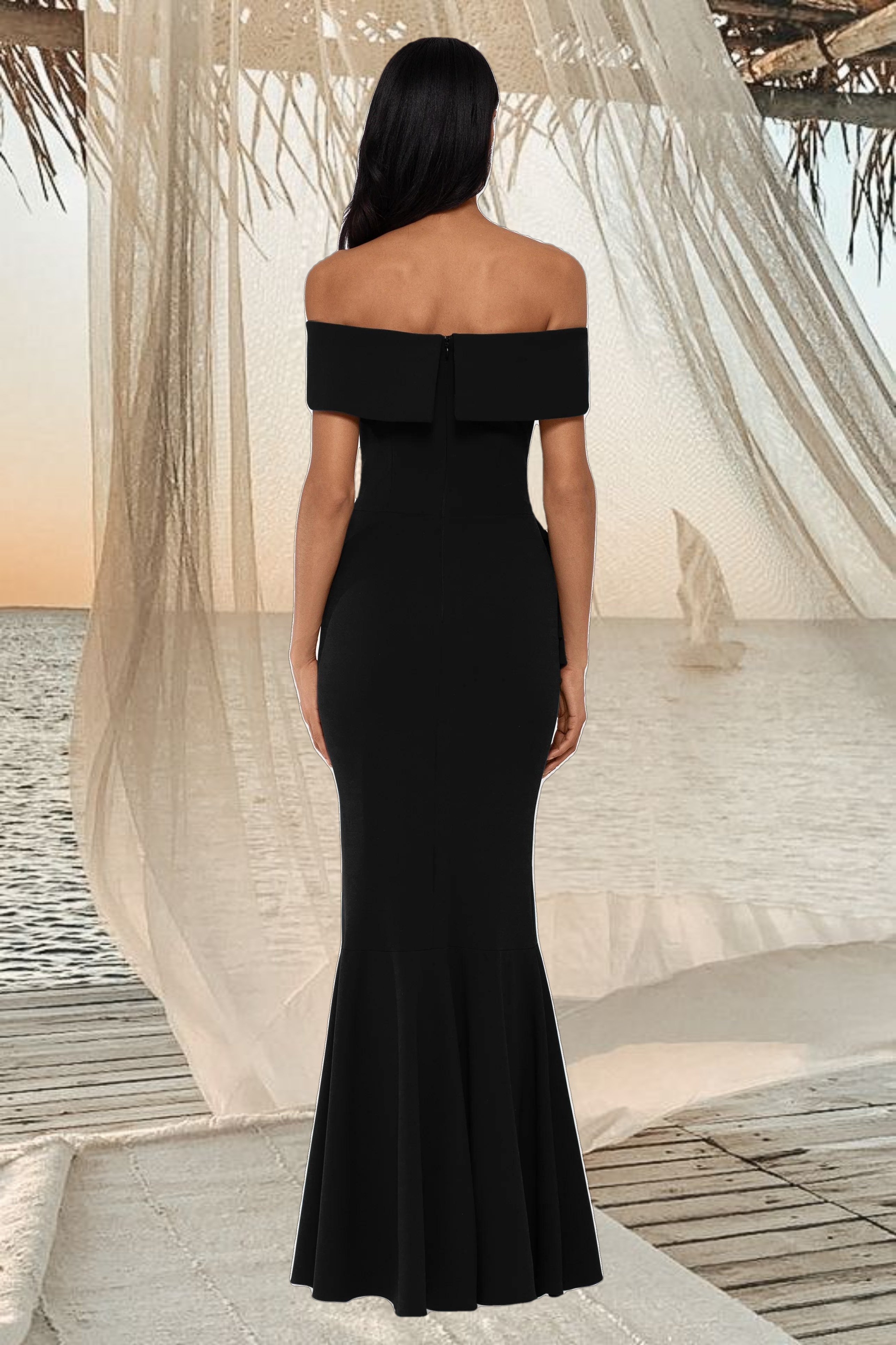 "Arielle" Scuba Crepe Ruffle Slit Gown