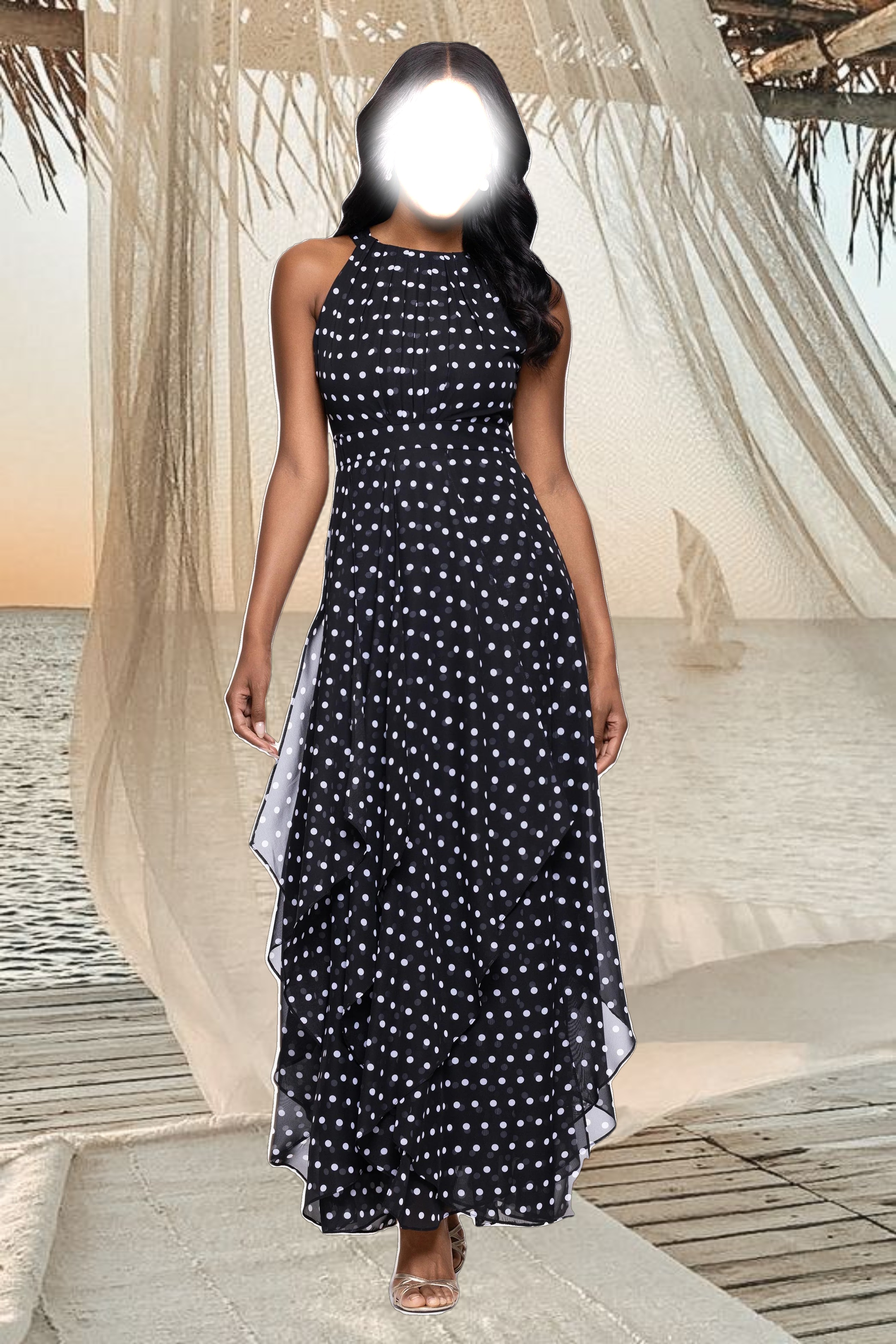 "Delphine" Chiffon Polka Dot Handkerchief Floor Length Dress
