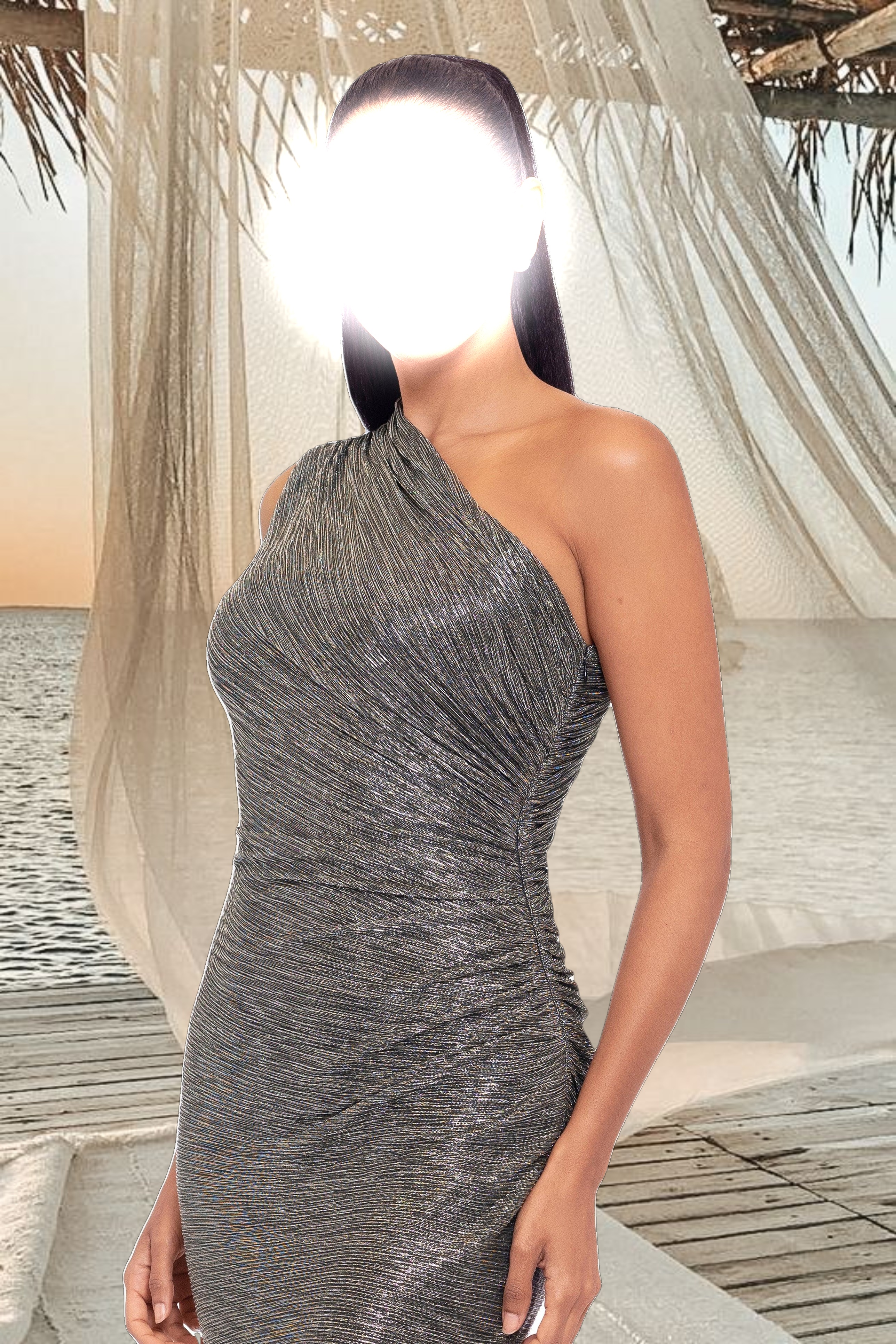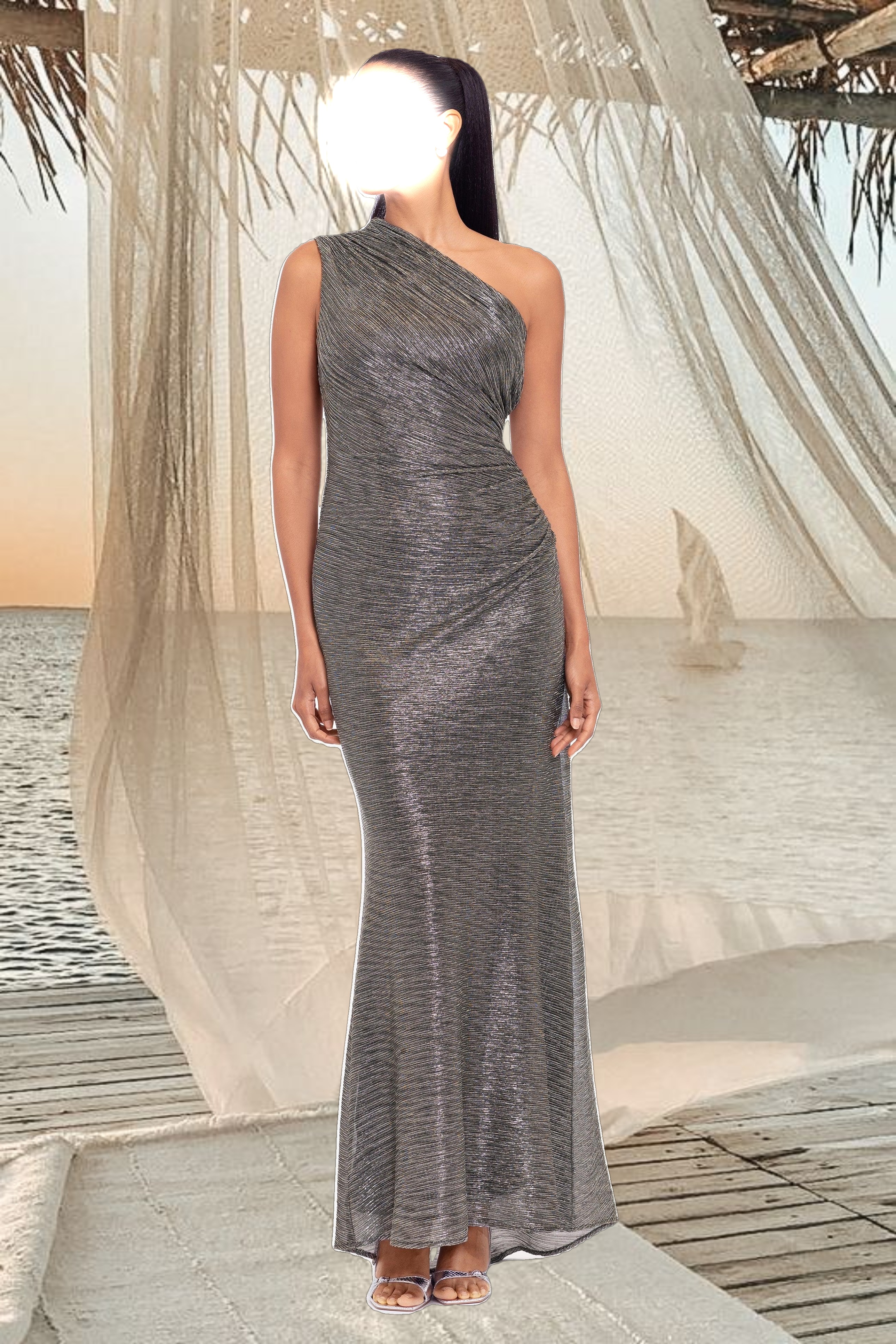 "Bayley" Metallic One Shoulder Floor Length Dress