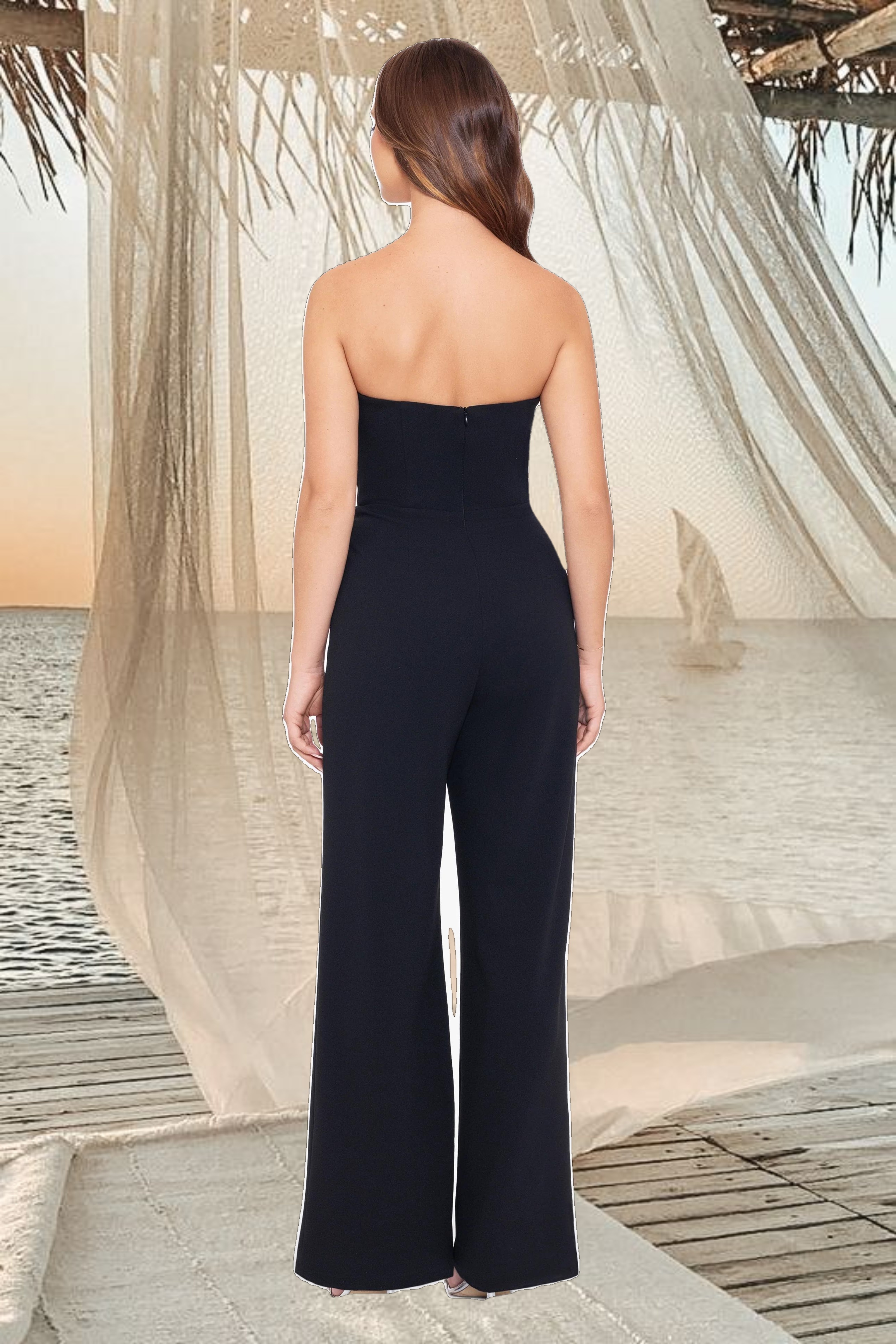 "Tasha" Long Strapless Tuxedo Jumpsuit