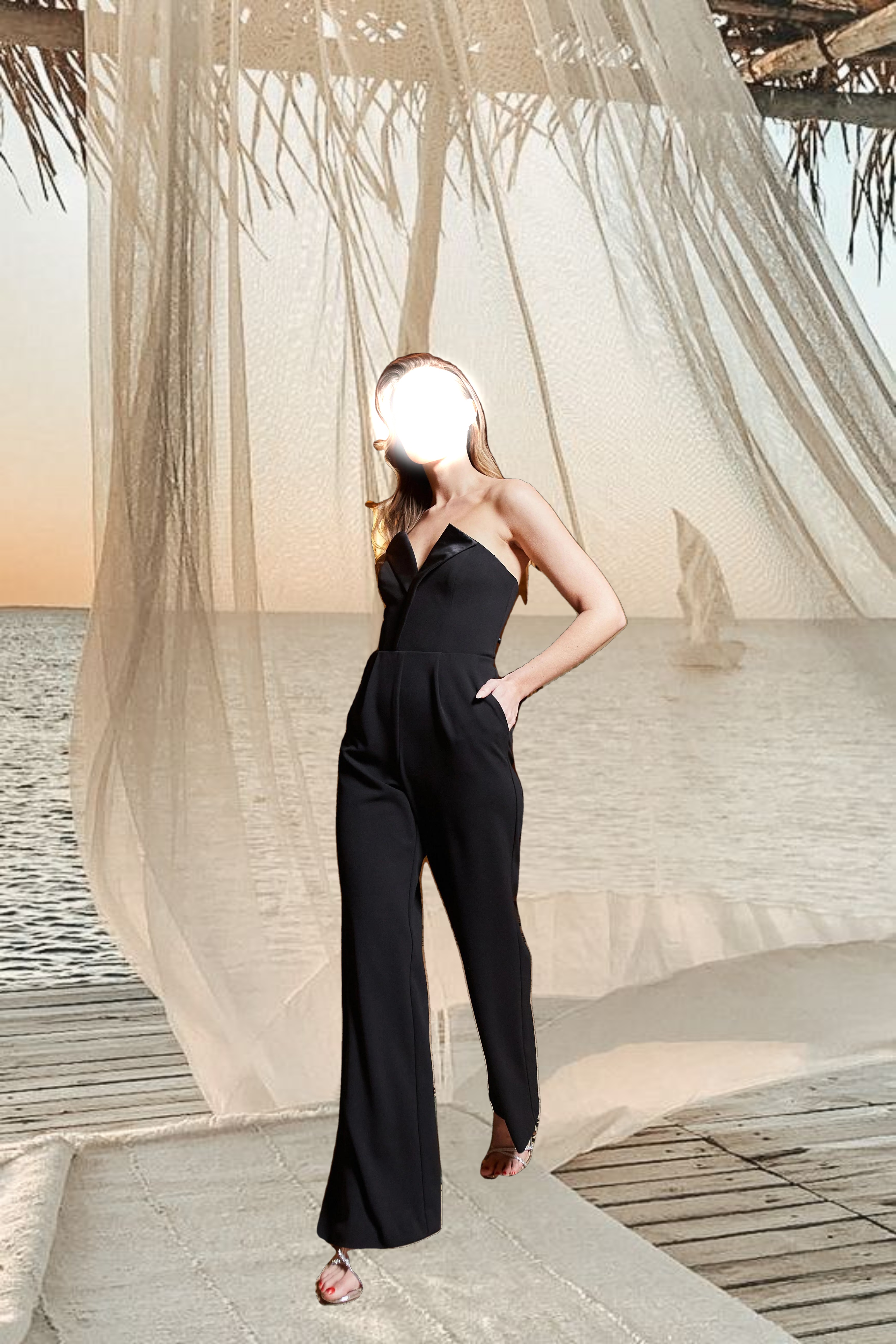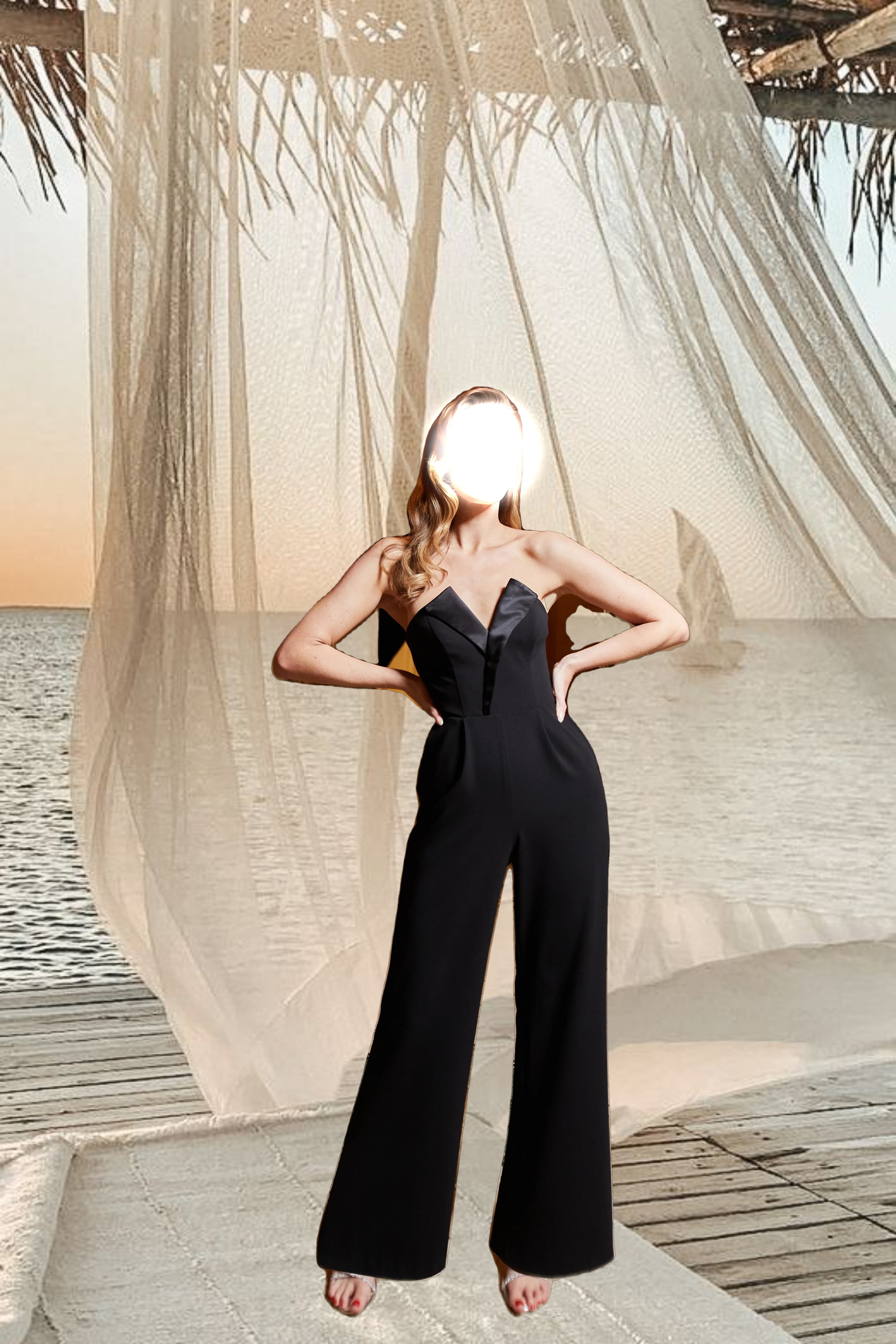 Take a bold risk with the "Tasha" Long Strapless Tuxedo Jumpsuit. This beautiful jumpsuit features no sleeves and sultry pants, perfect for a daring night out. Embody a tuxedo-inspired look and turn heads with this chic and stylish piece.