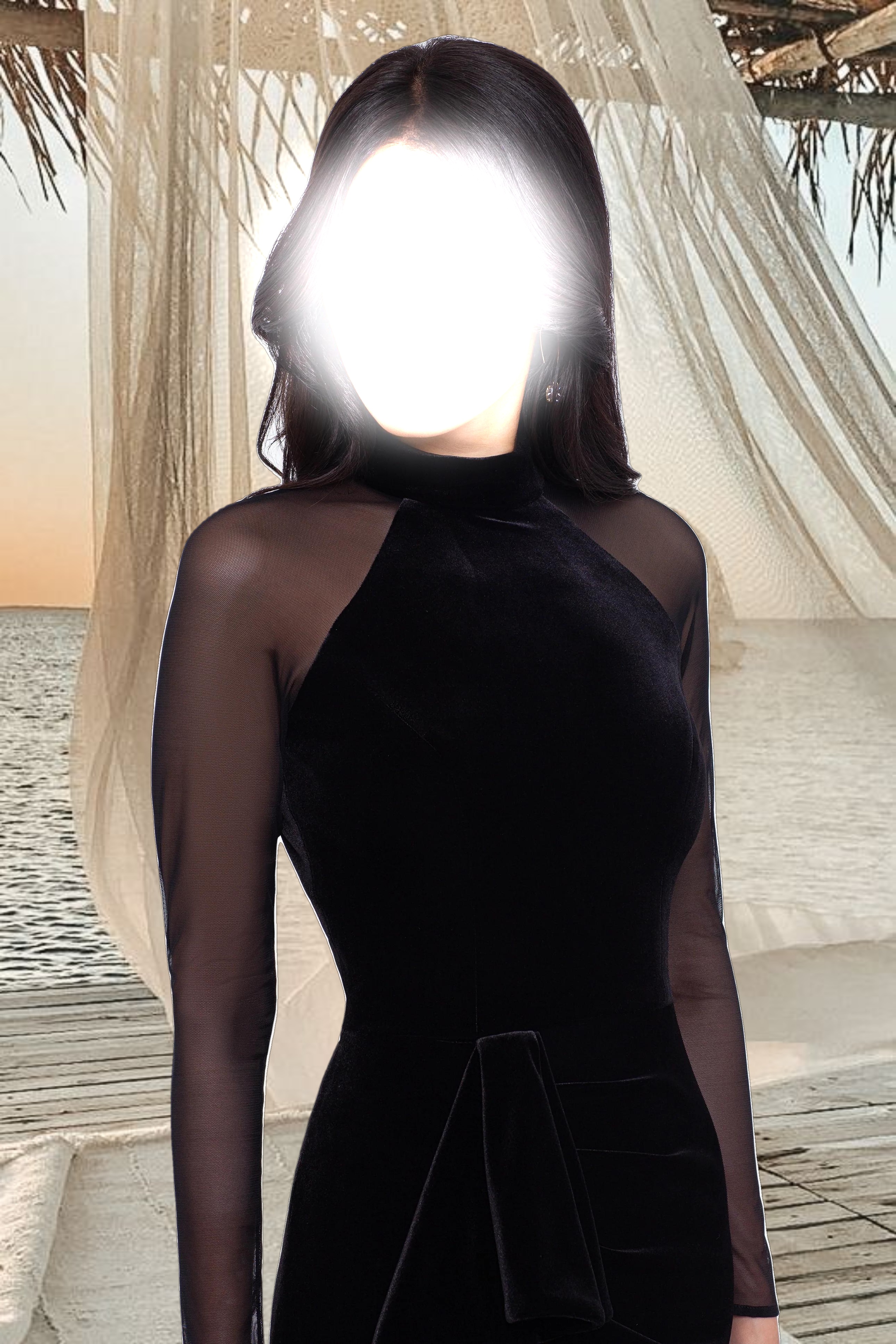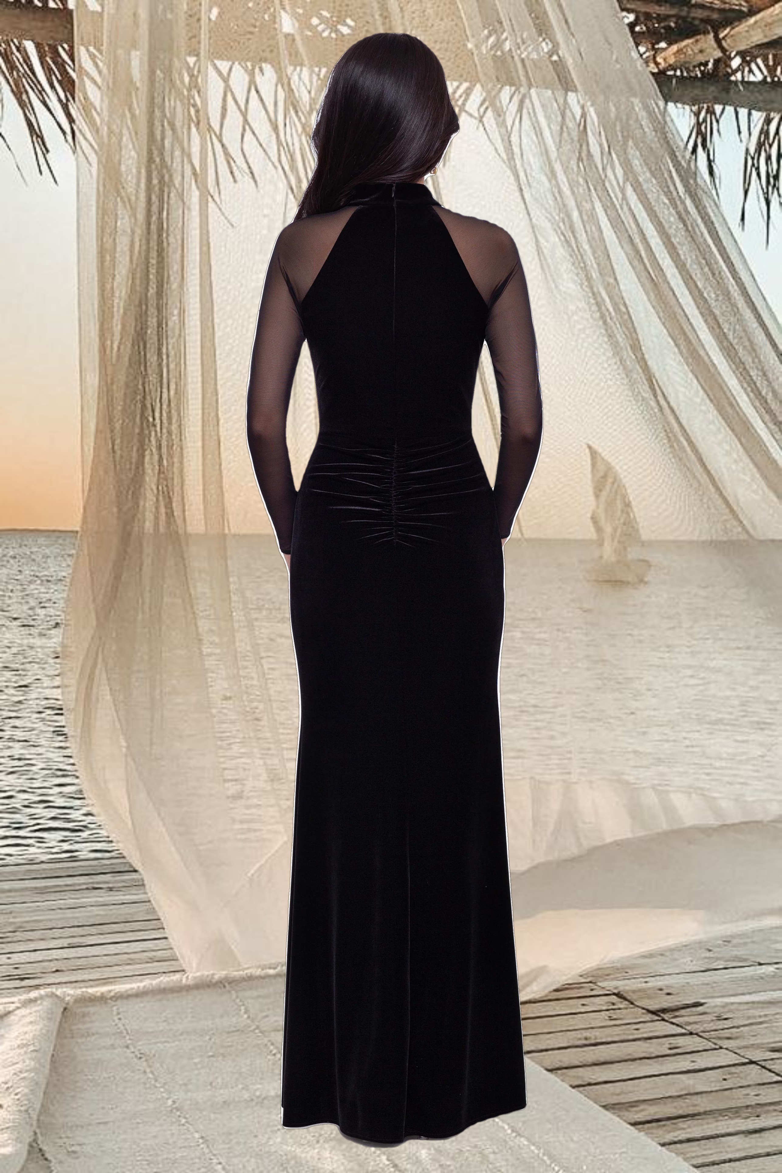 Home / Black / "Valentina" Long Velvet Mesh Illusion Sleeve Dress