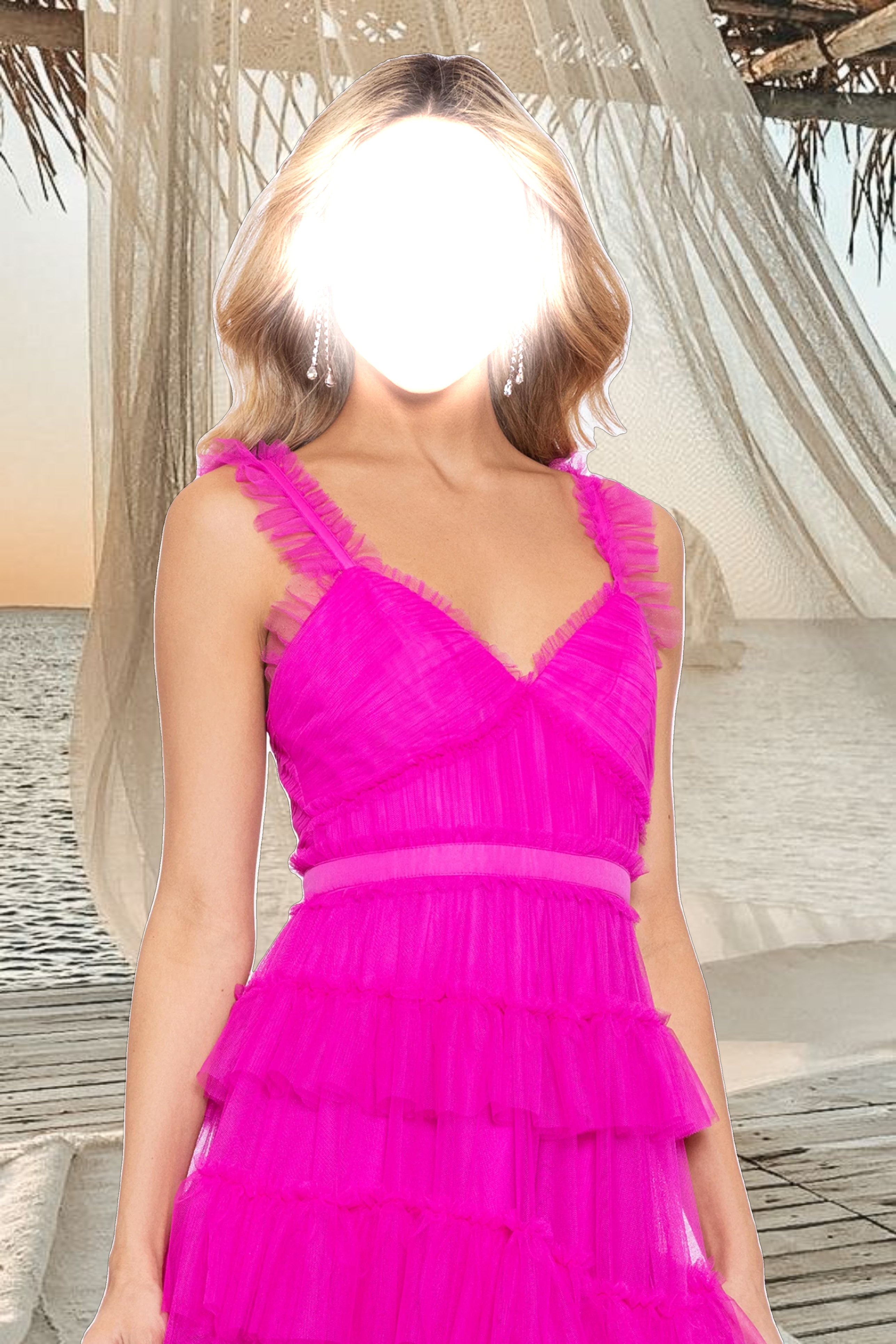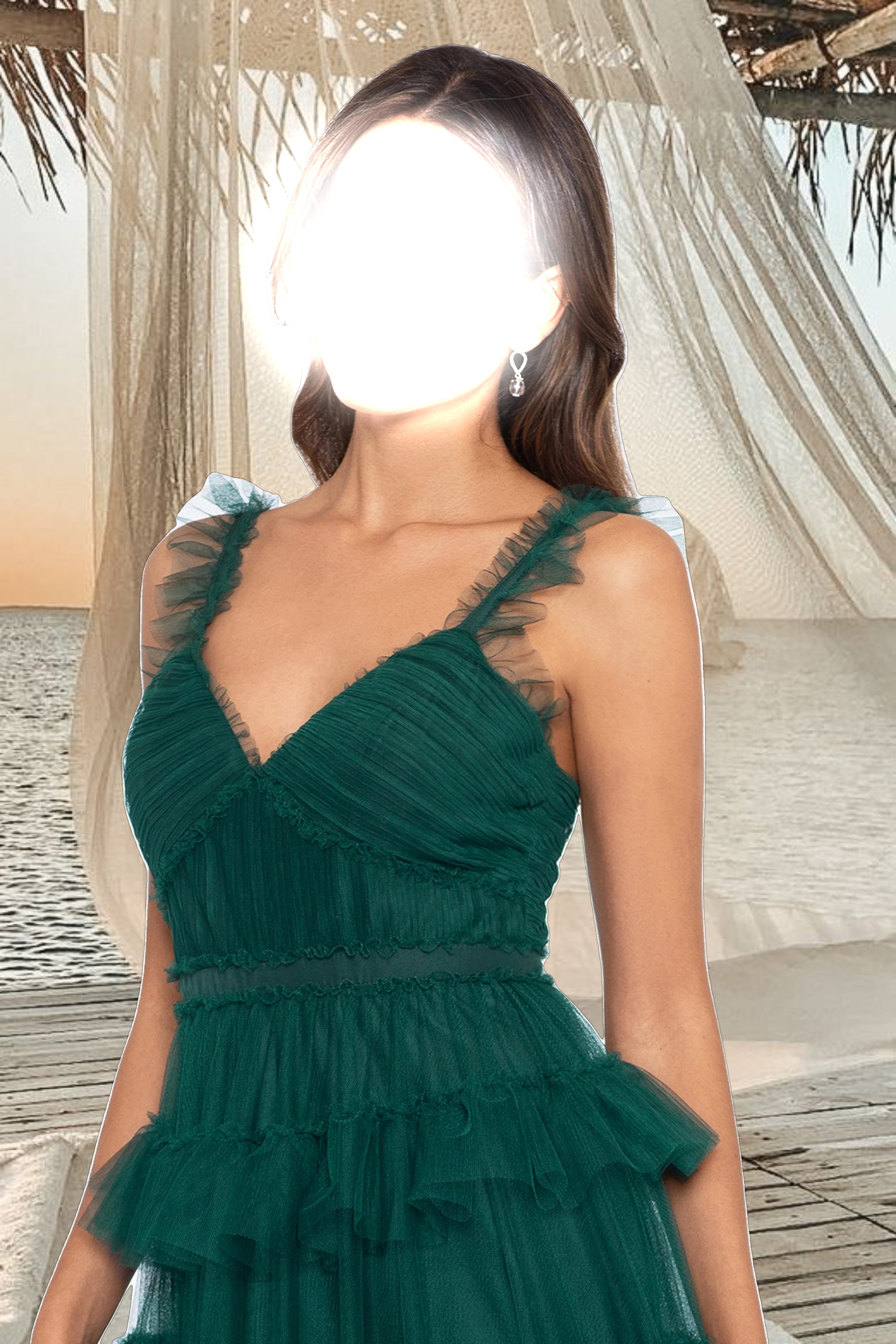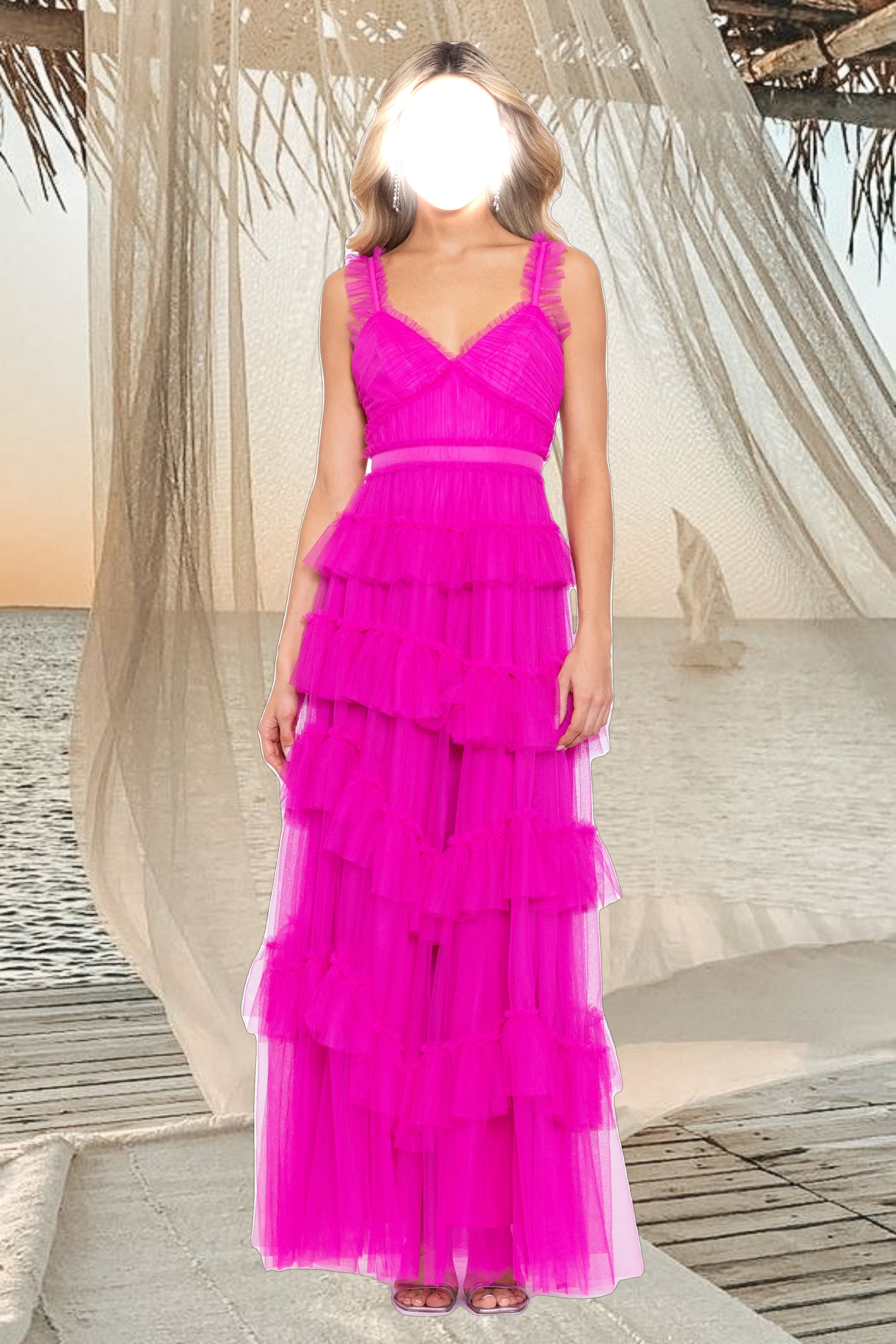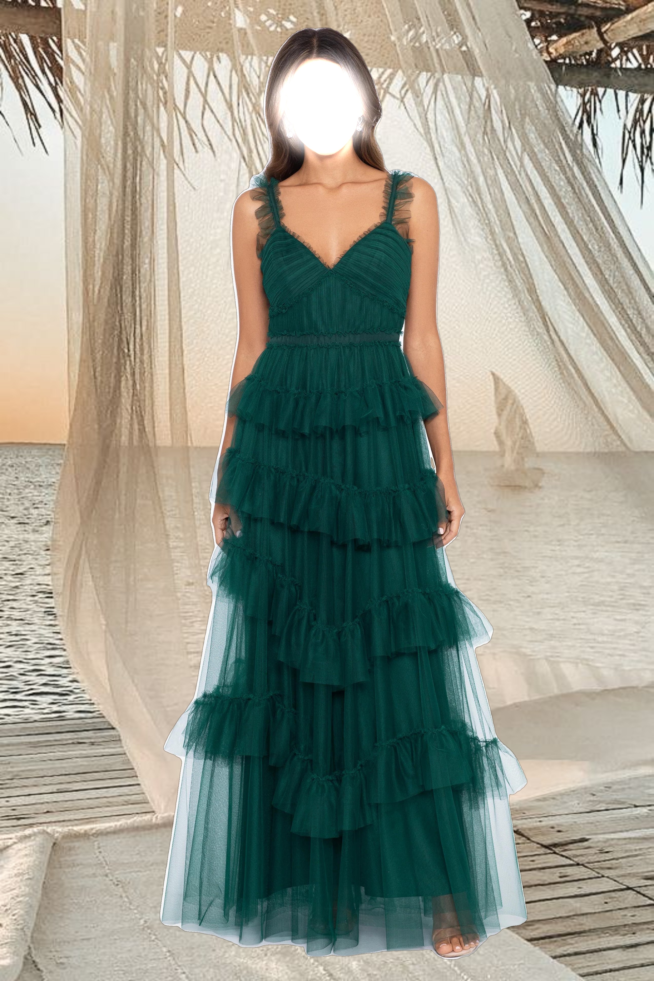 "Gigi" Long Ruffle Mesh Dress