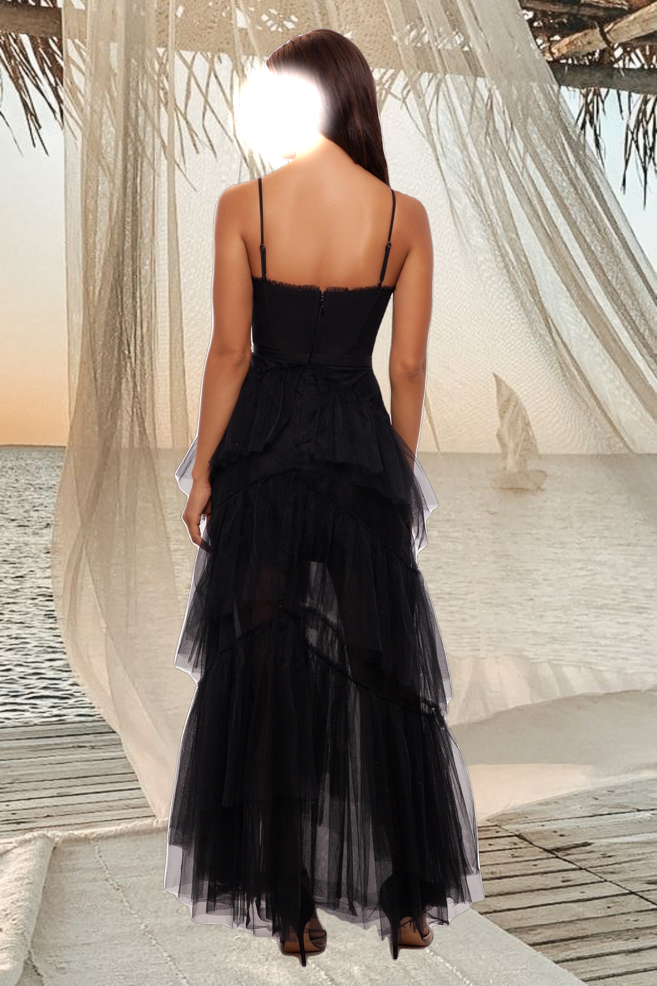 "Jasmine" Spaghetti Strap Mesh Corset Gown