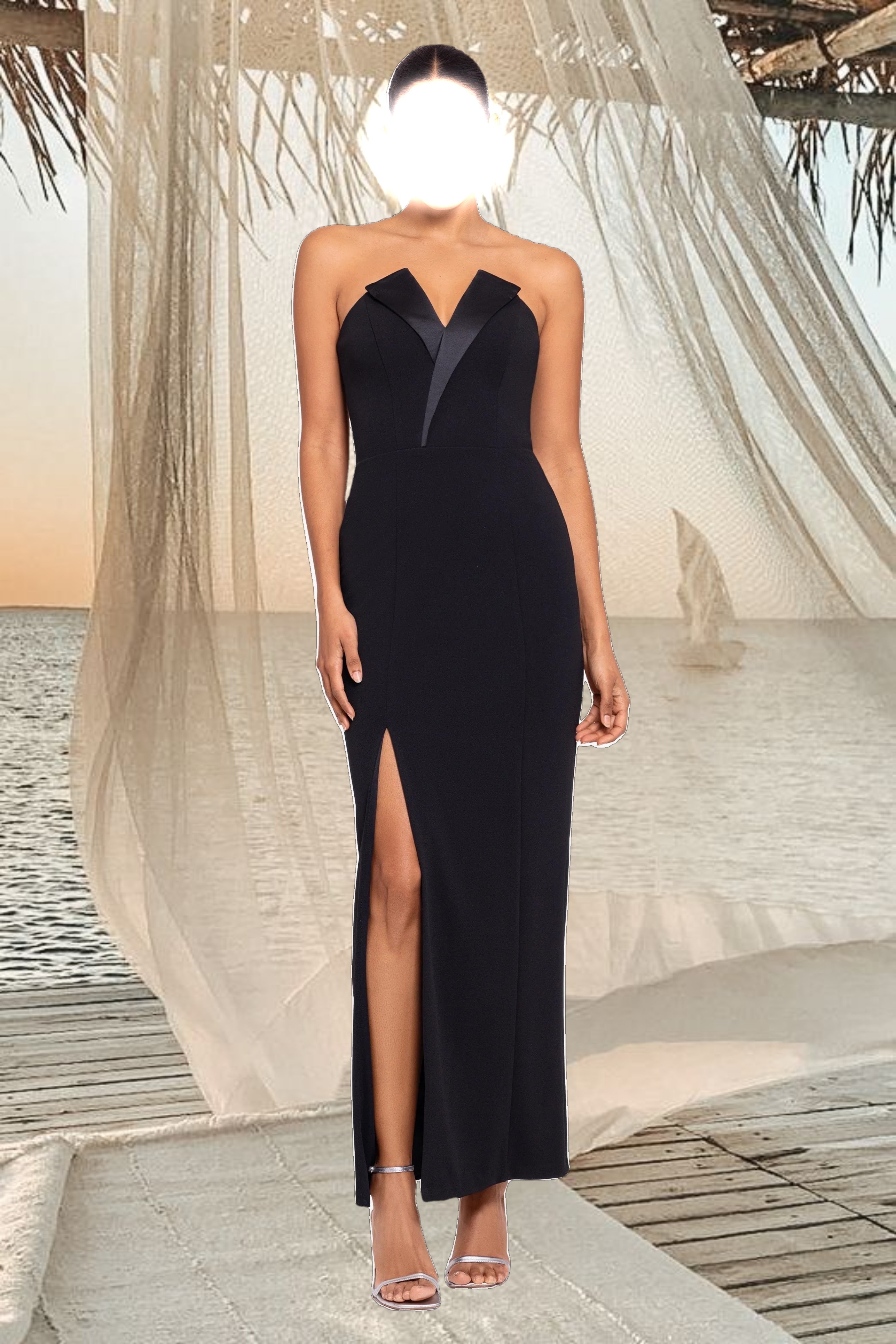 "Violette" Long Strapless V Neck Tuxedo Dress