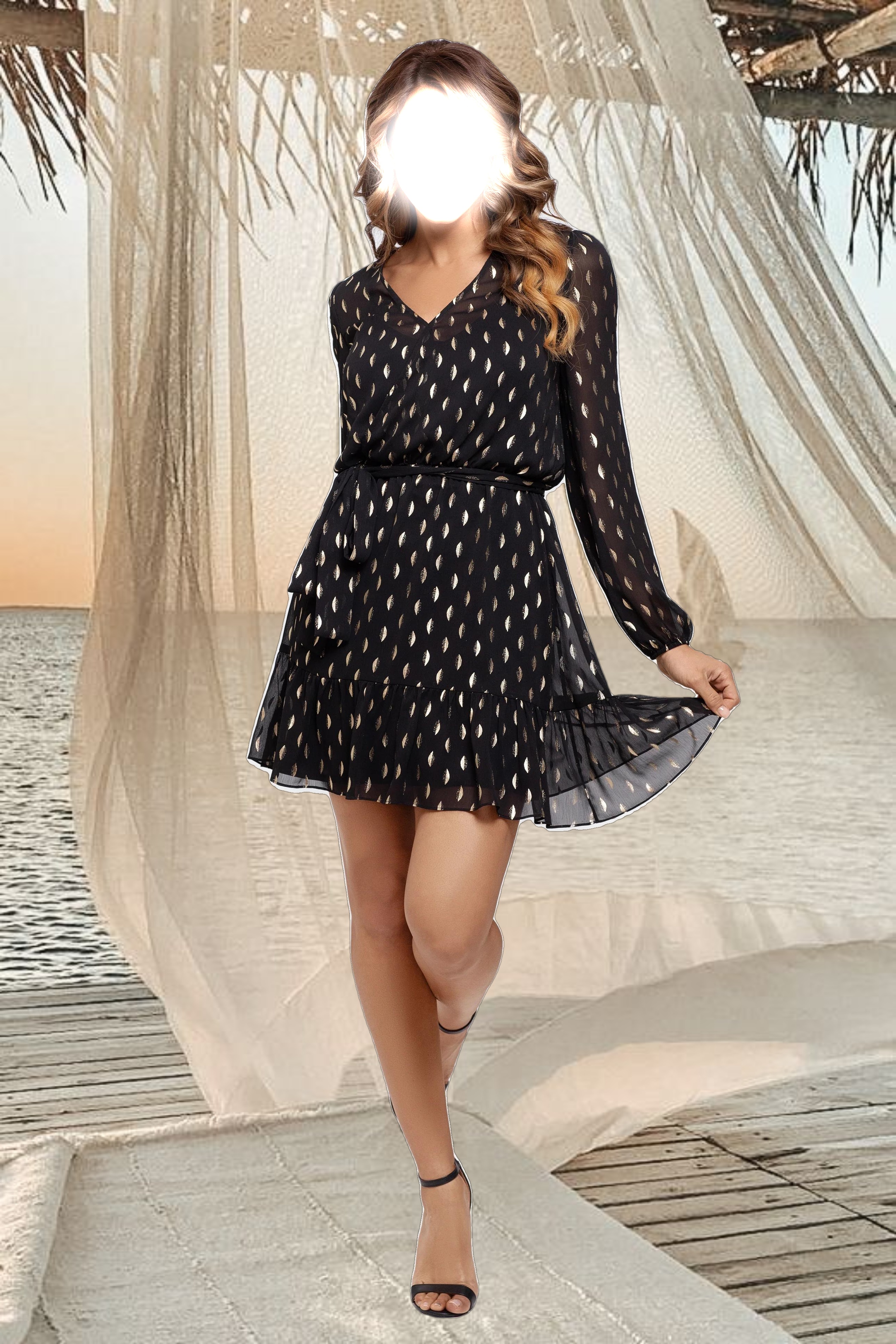 "Lucia" Short Long Sleeve V Neck with Belt Tie Dress