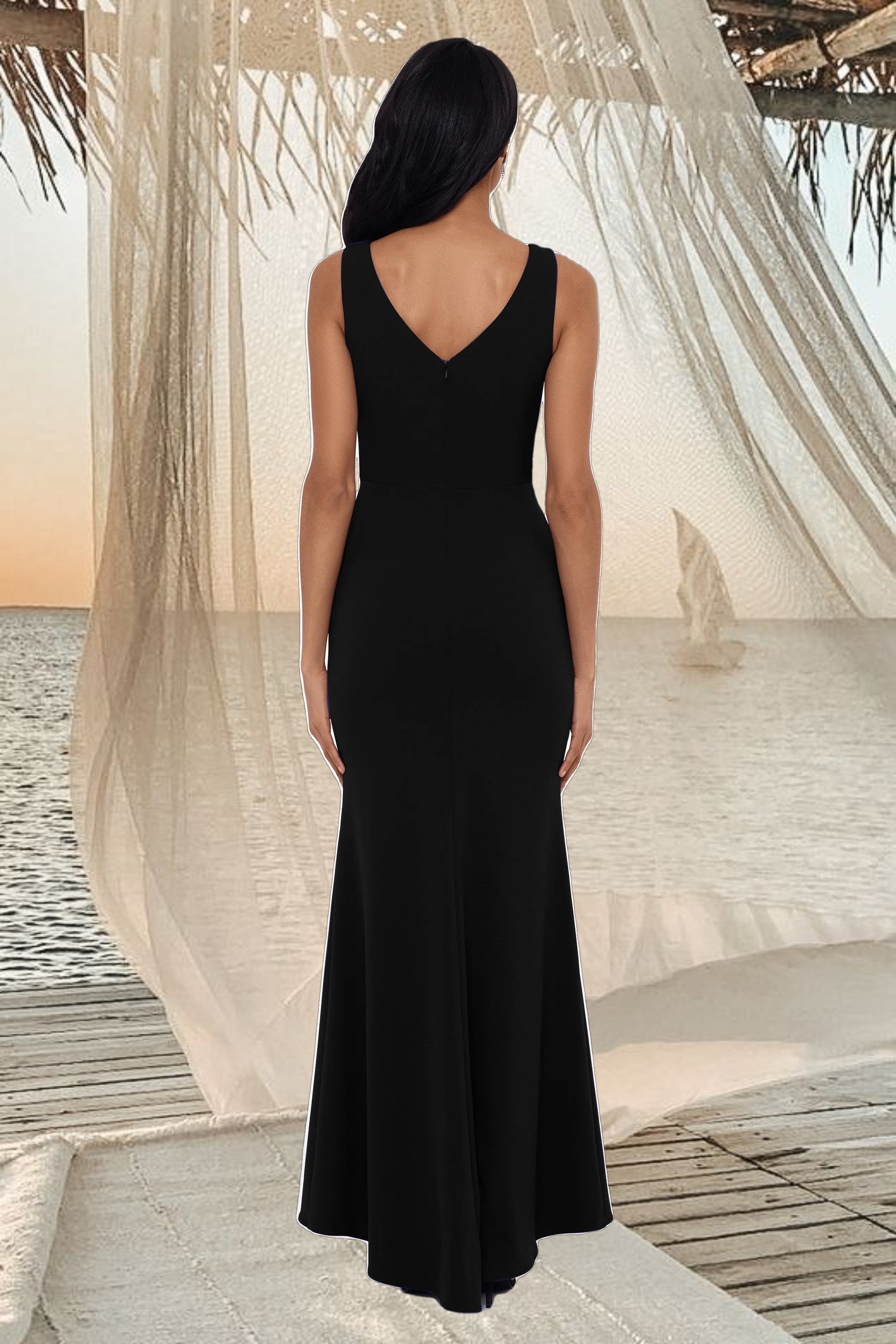 "Candace" Long V- Neck Hi Low Cascade Dress