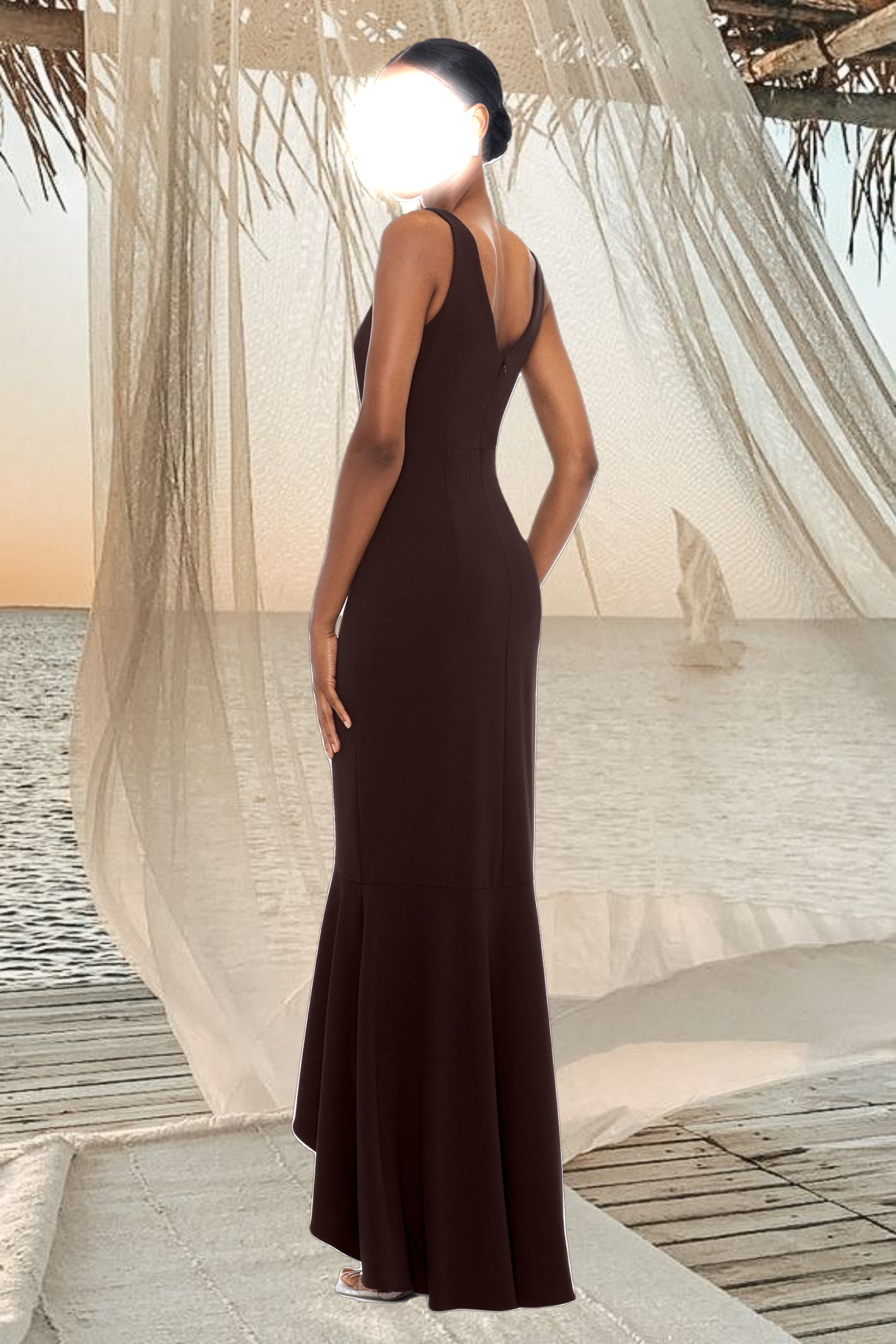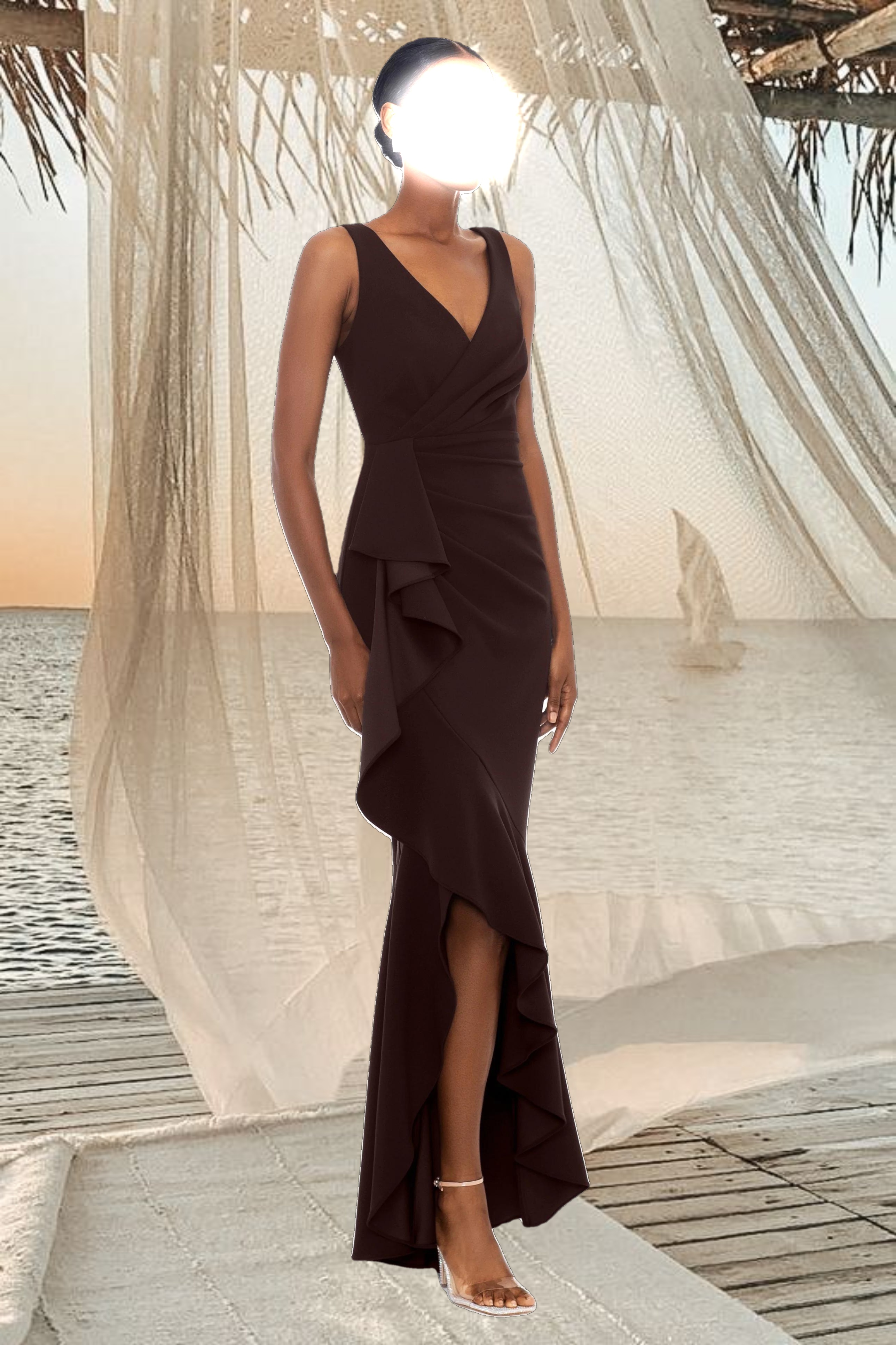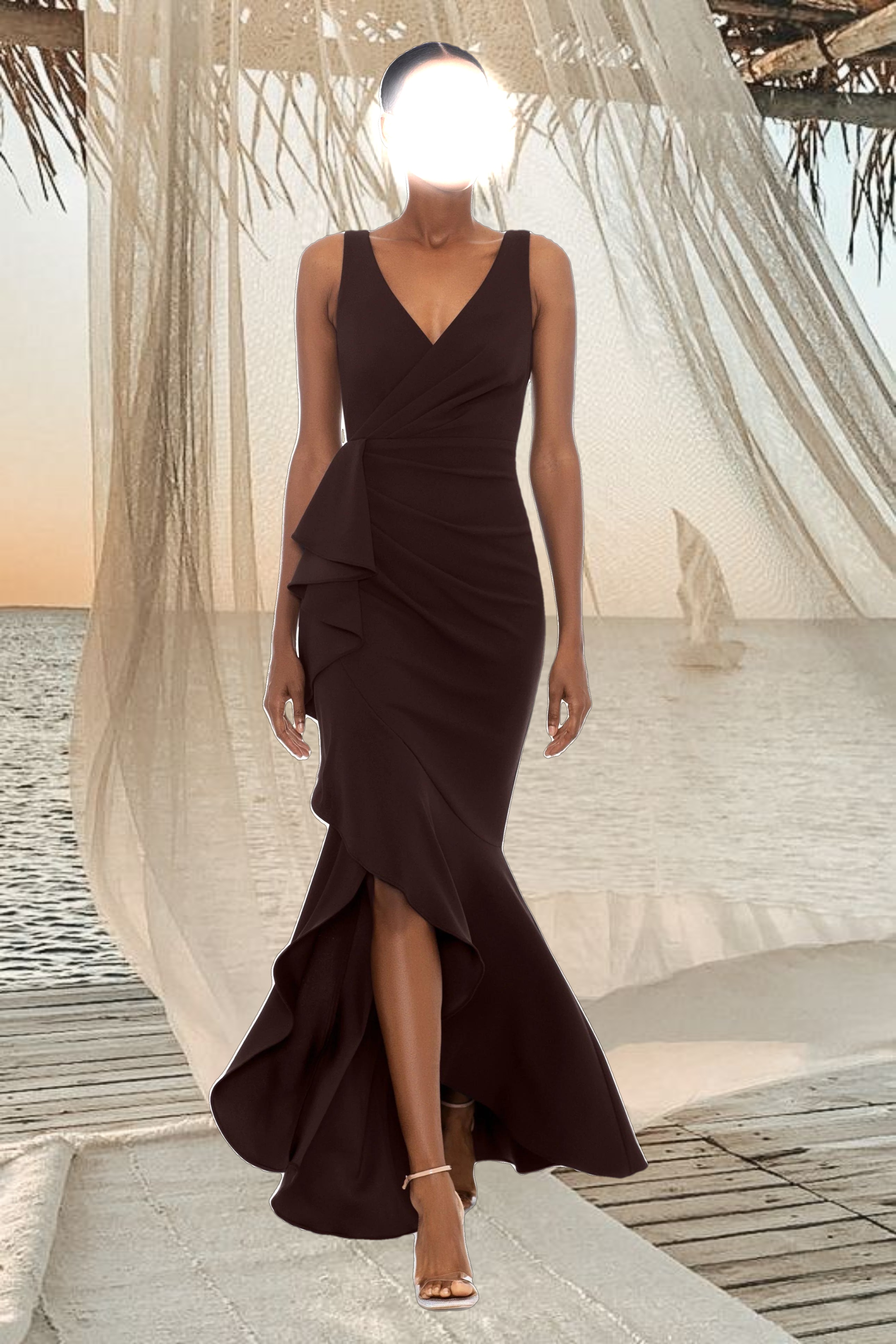 "Candace" Long V- Neck Hi Low Cascade Dress