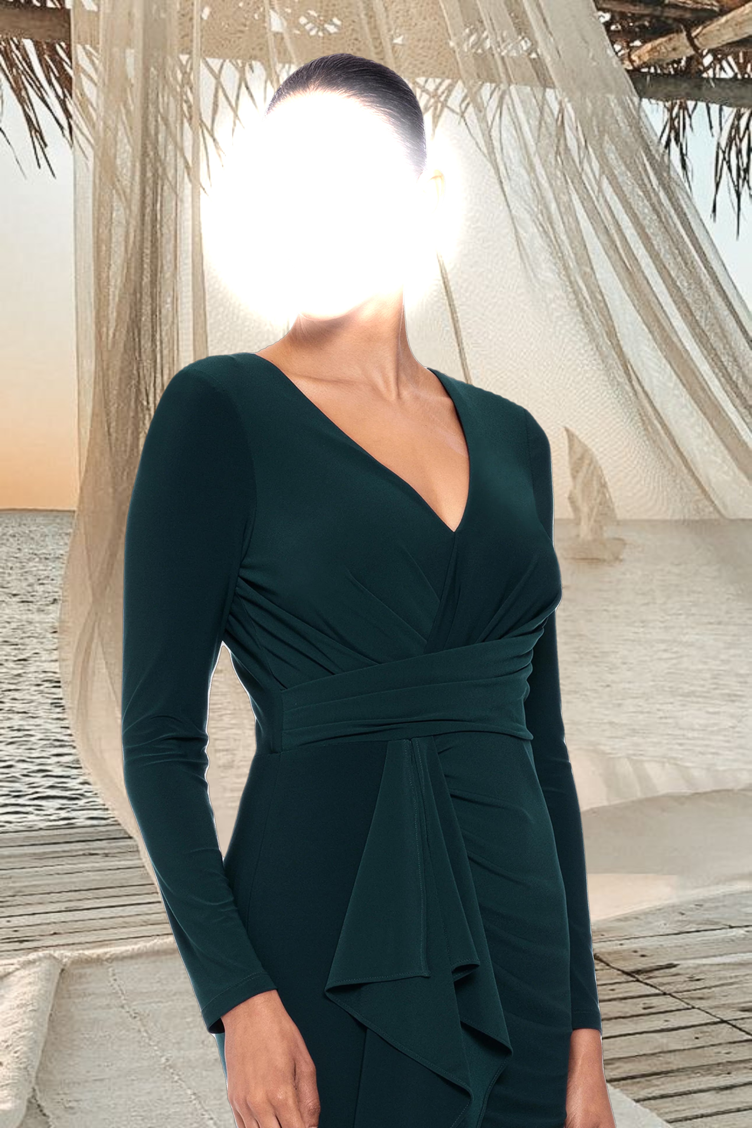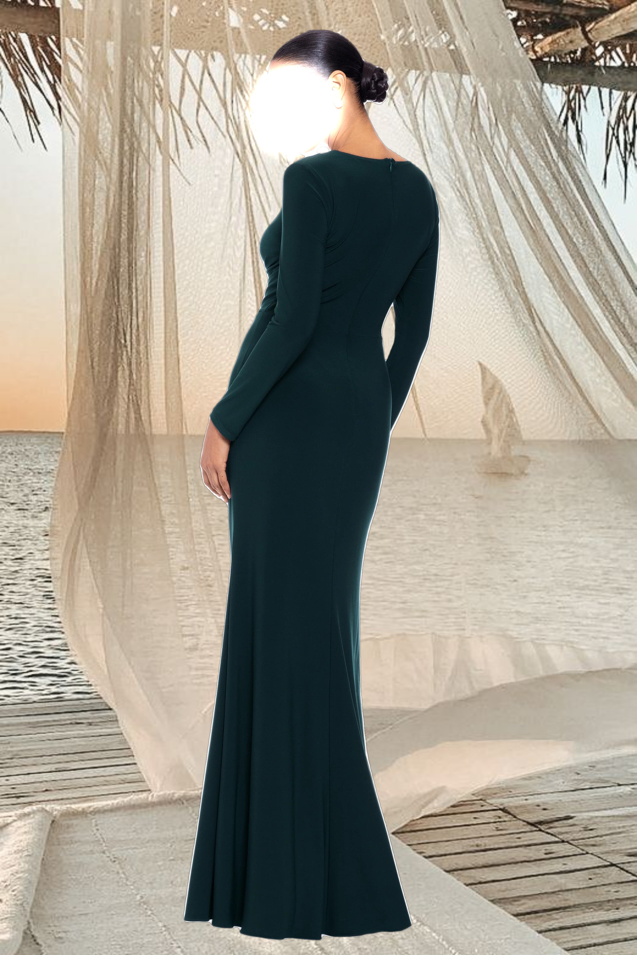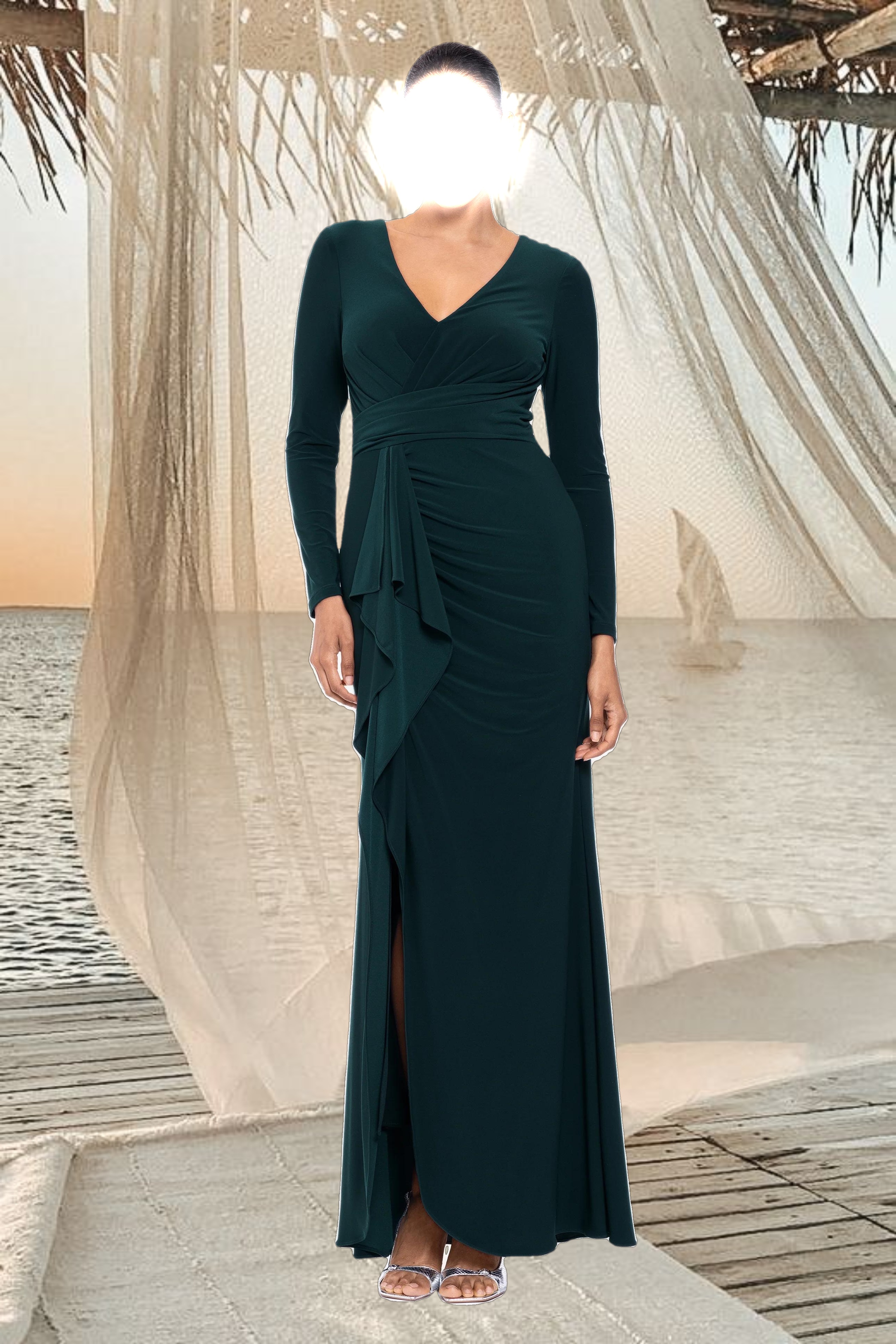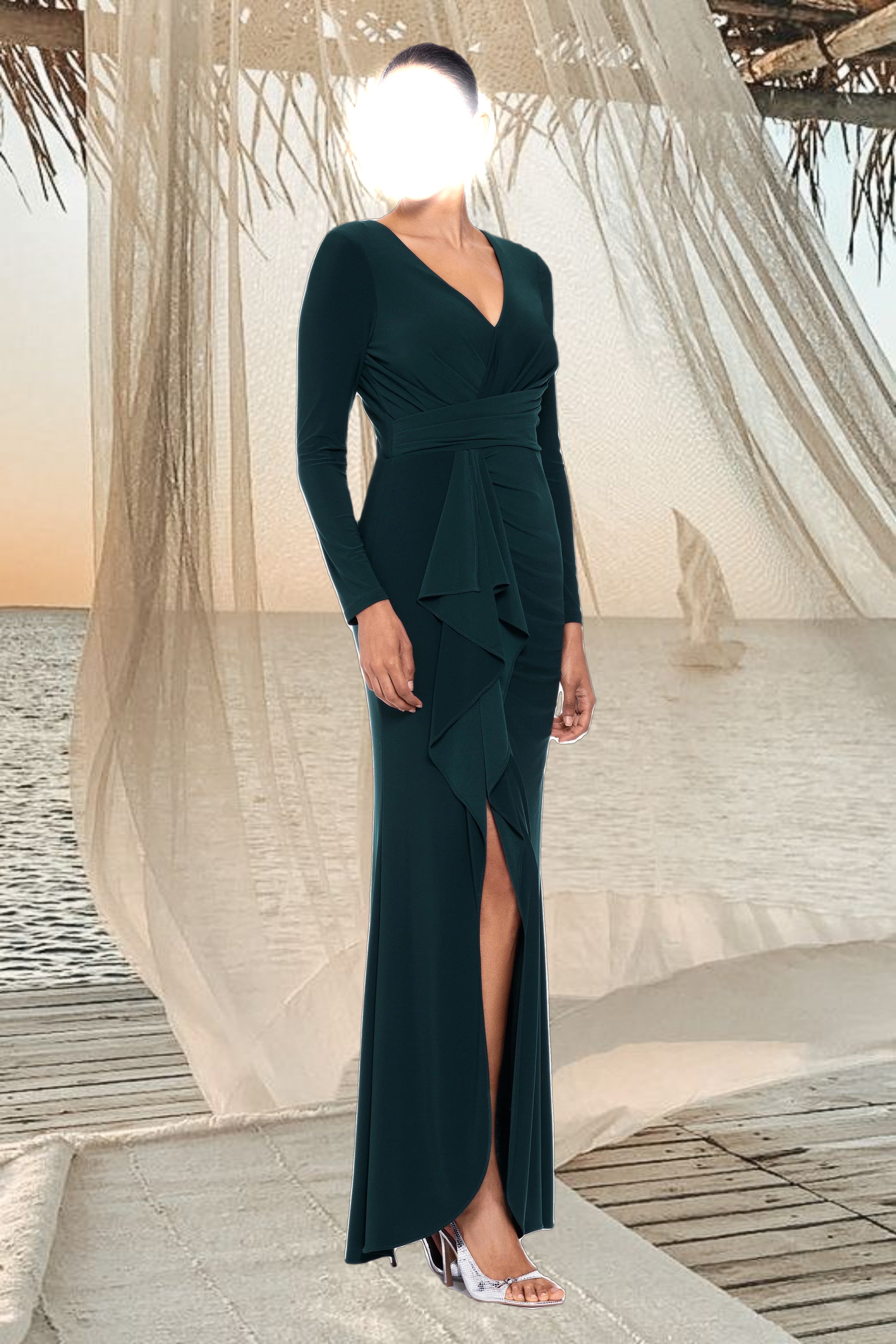 "Elle" Long Sleeve Side Ruffled Slit Gown