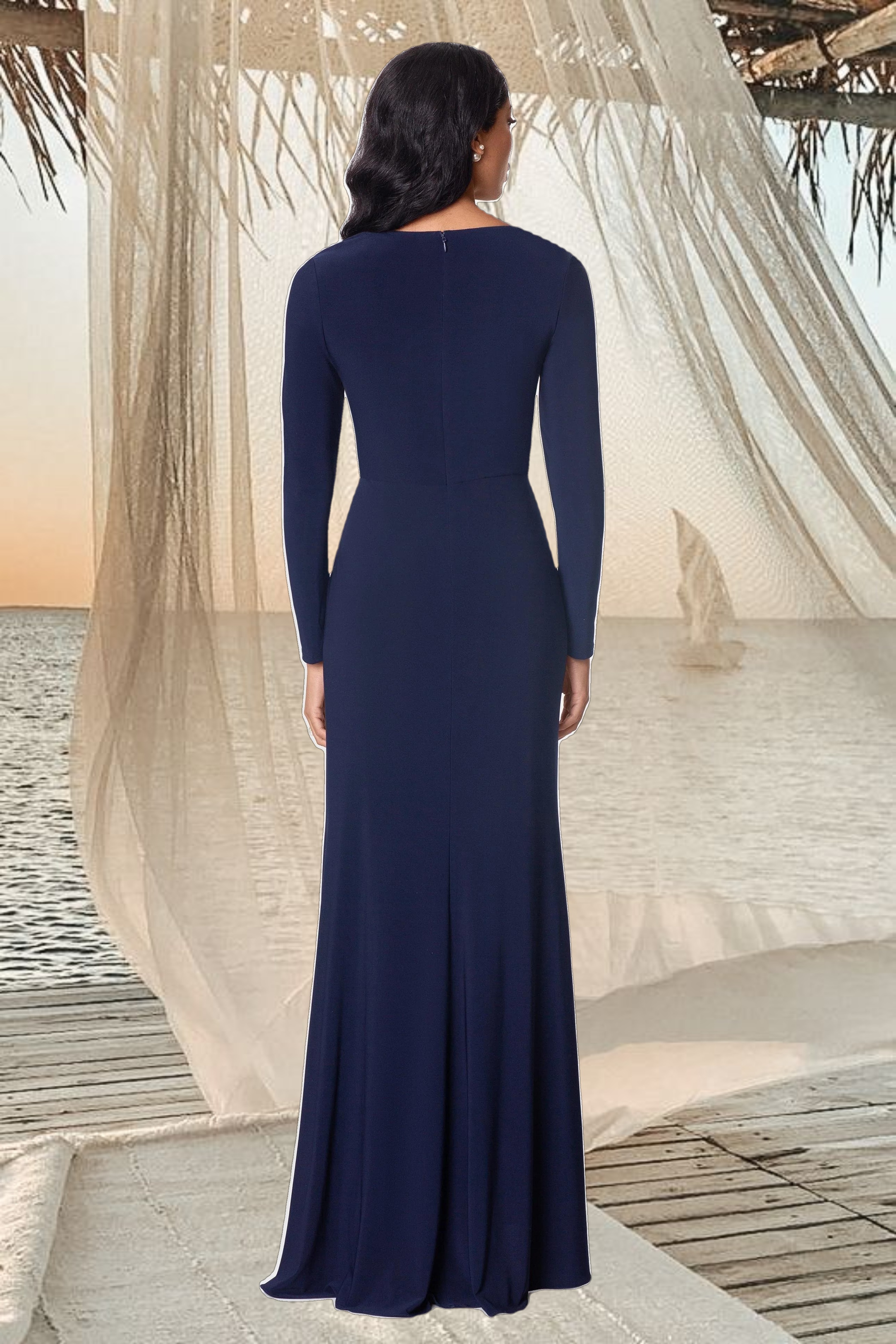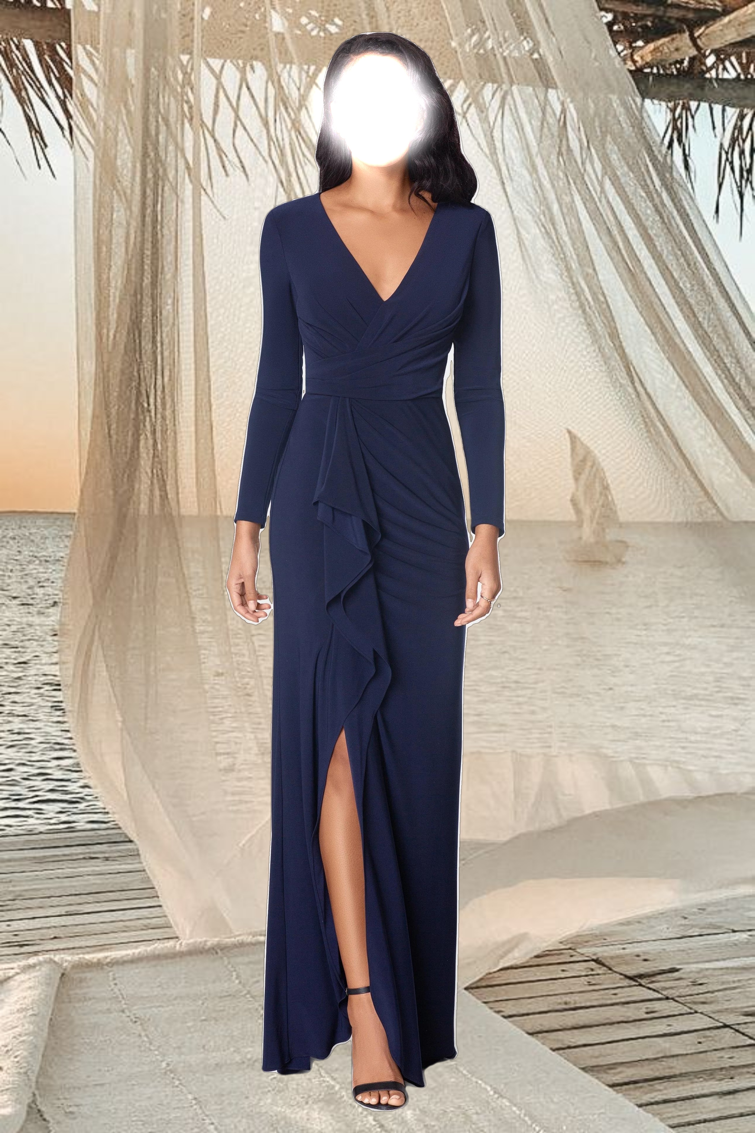 Home / Blue / "Elle" Long Sleeve Side Ruffled Slit Gown