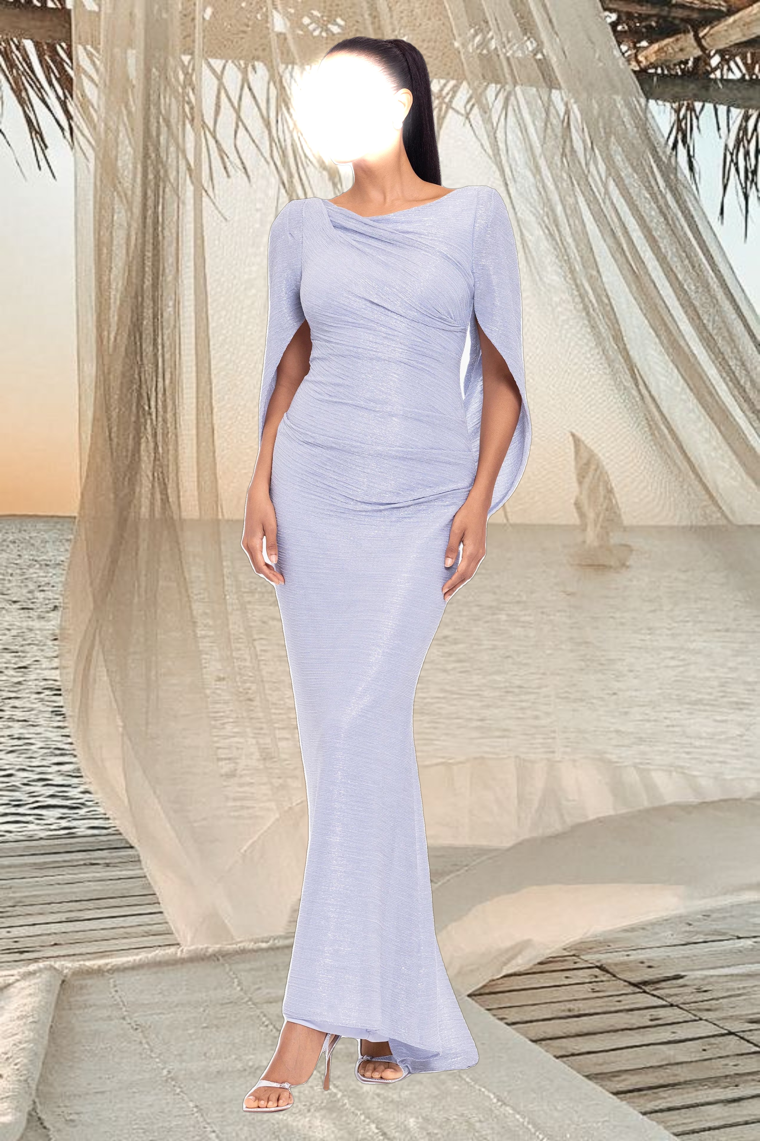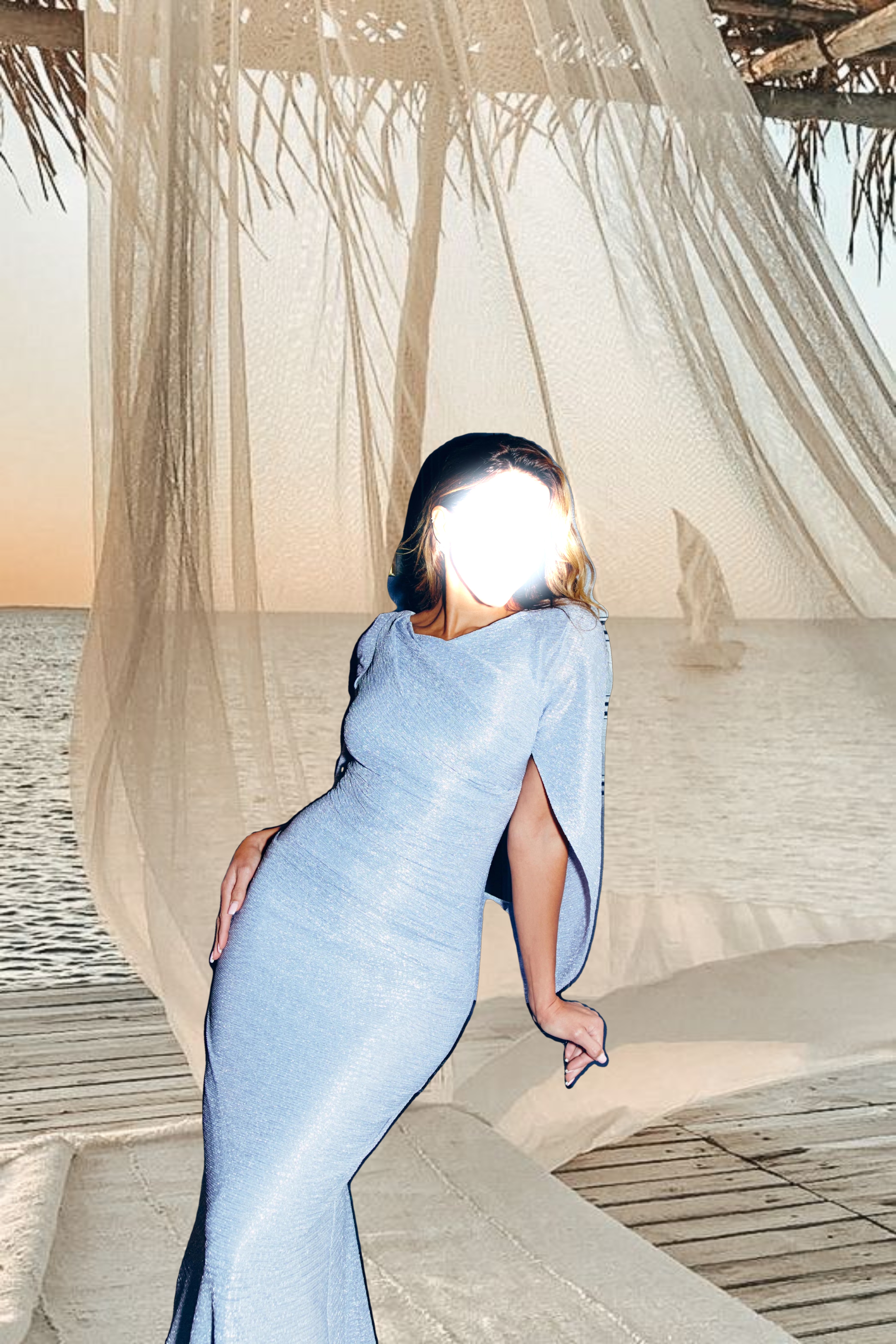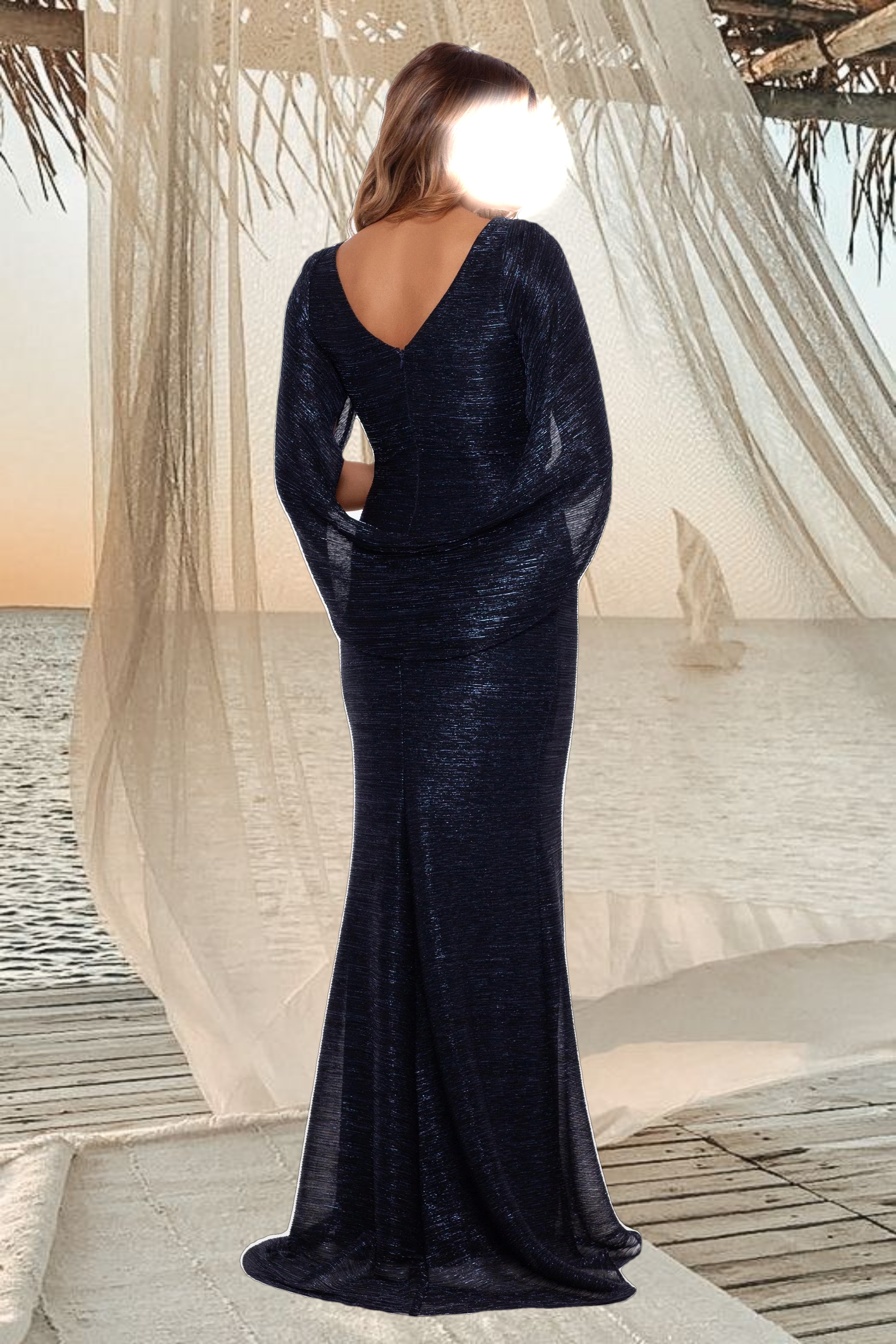 Home / Blue / "Elaine" Long Metallic Crinkle Cowl Neck Back Dress