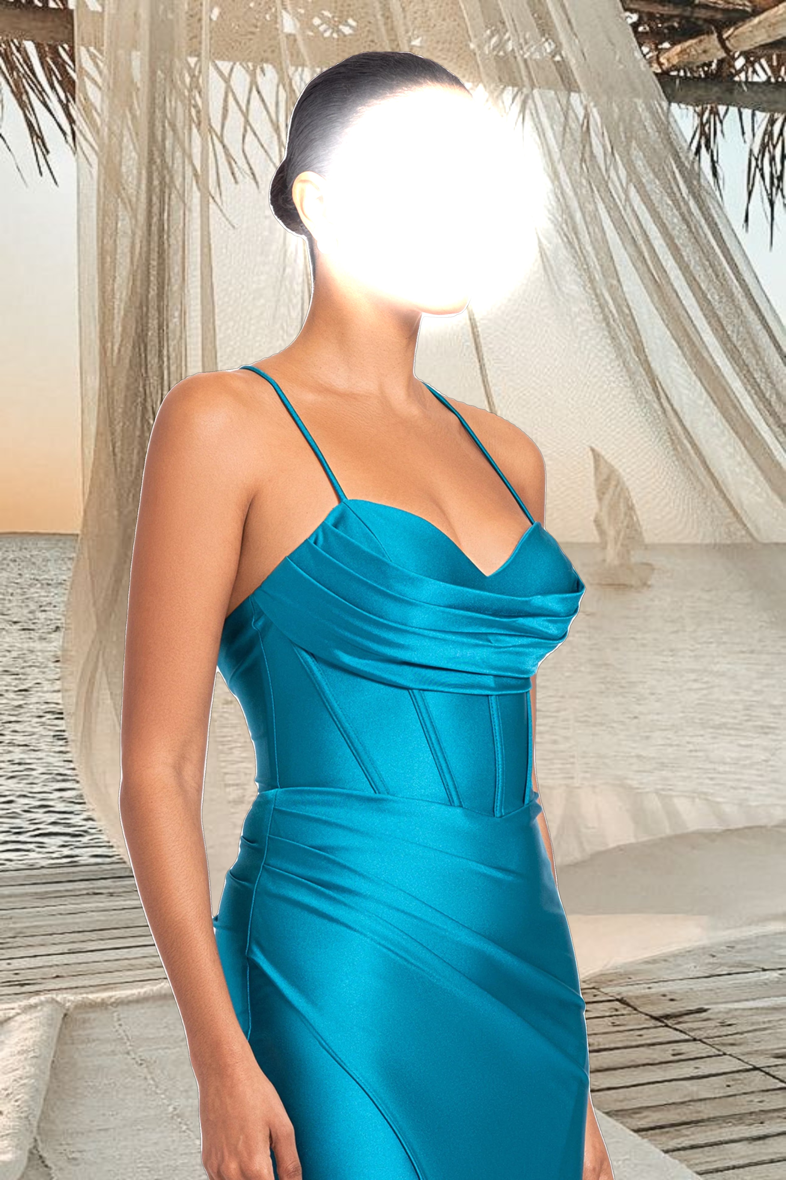 "Talia" Long Sateen Corset Lace Up Back Dress