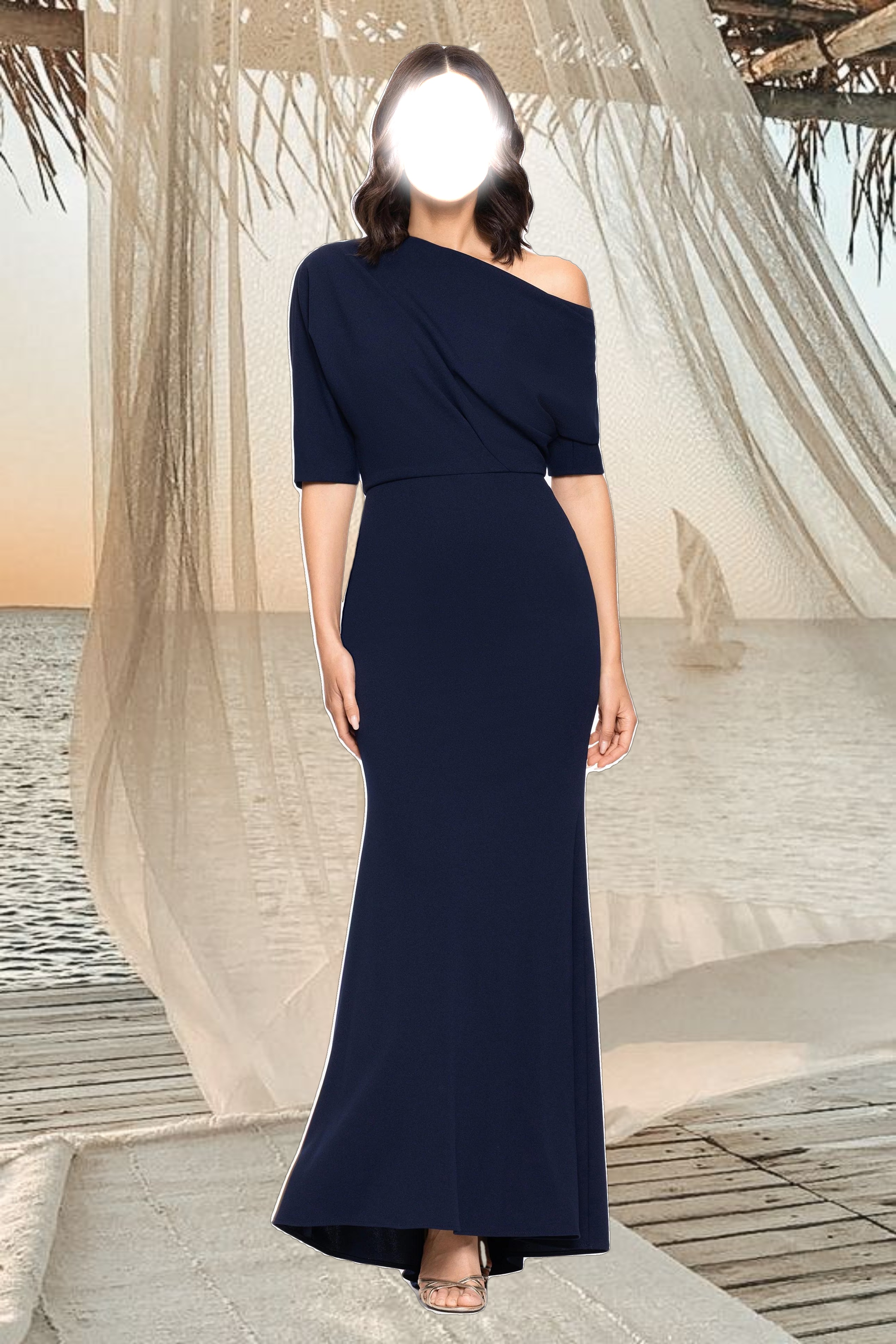 "Madeline" Long Scuba Crepe Off the Shoulder Drop Dress