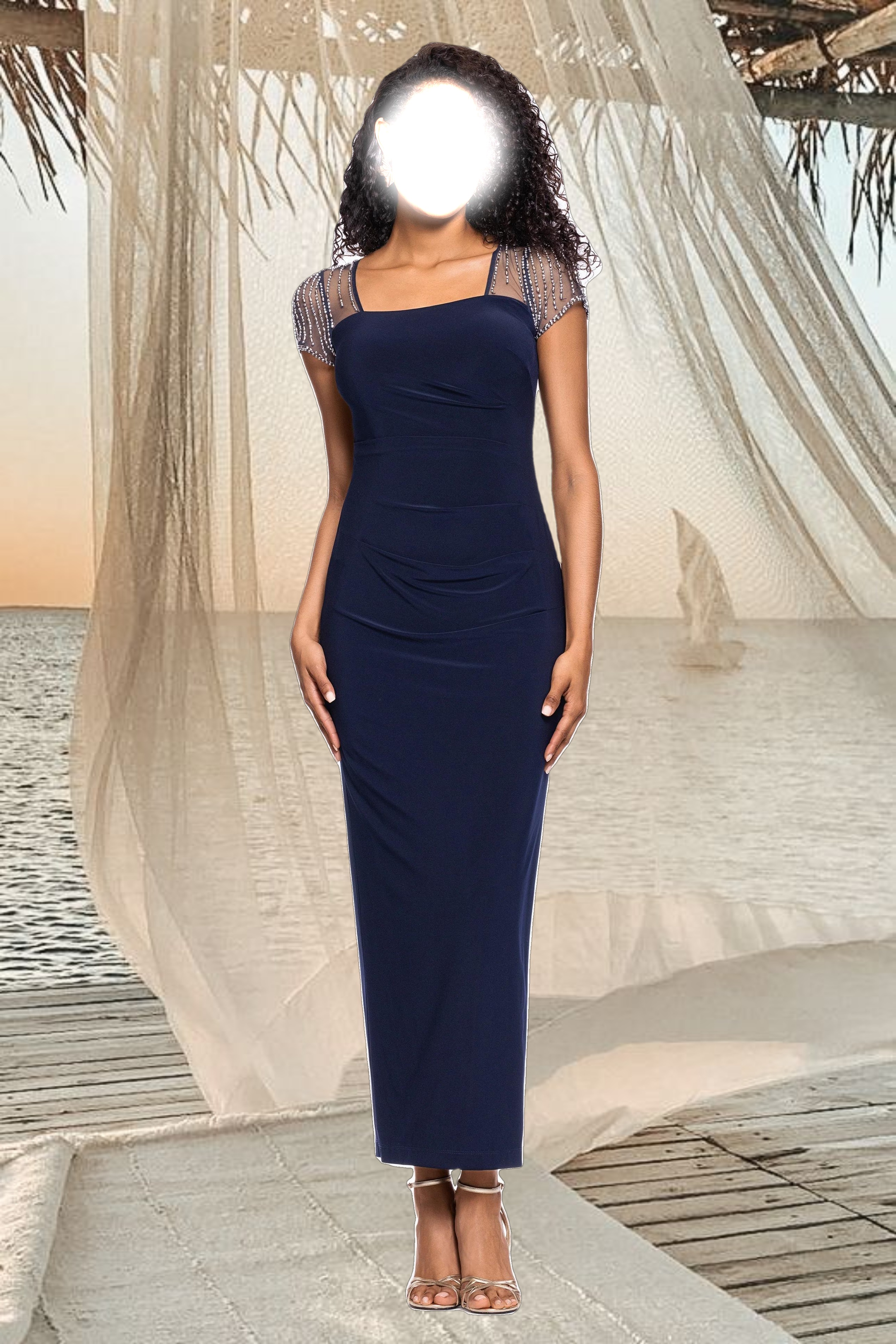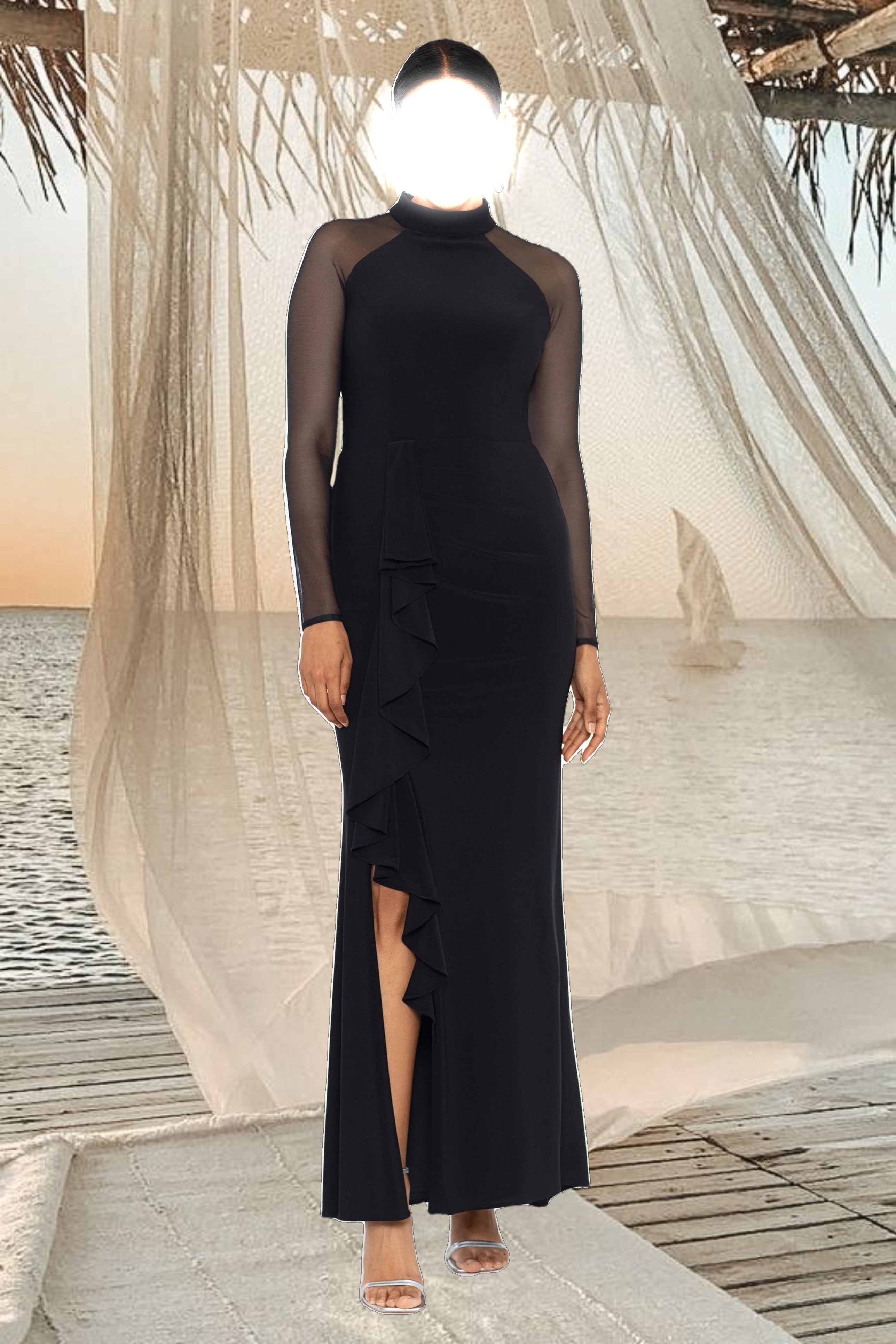 "Natalie" Long Mock Neck Mesh Sleeve Dress
