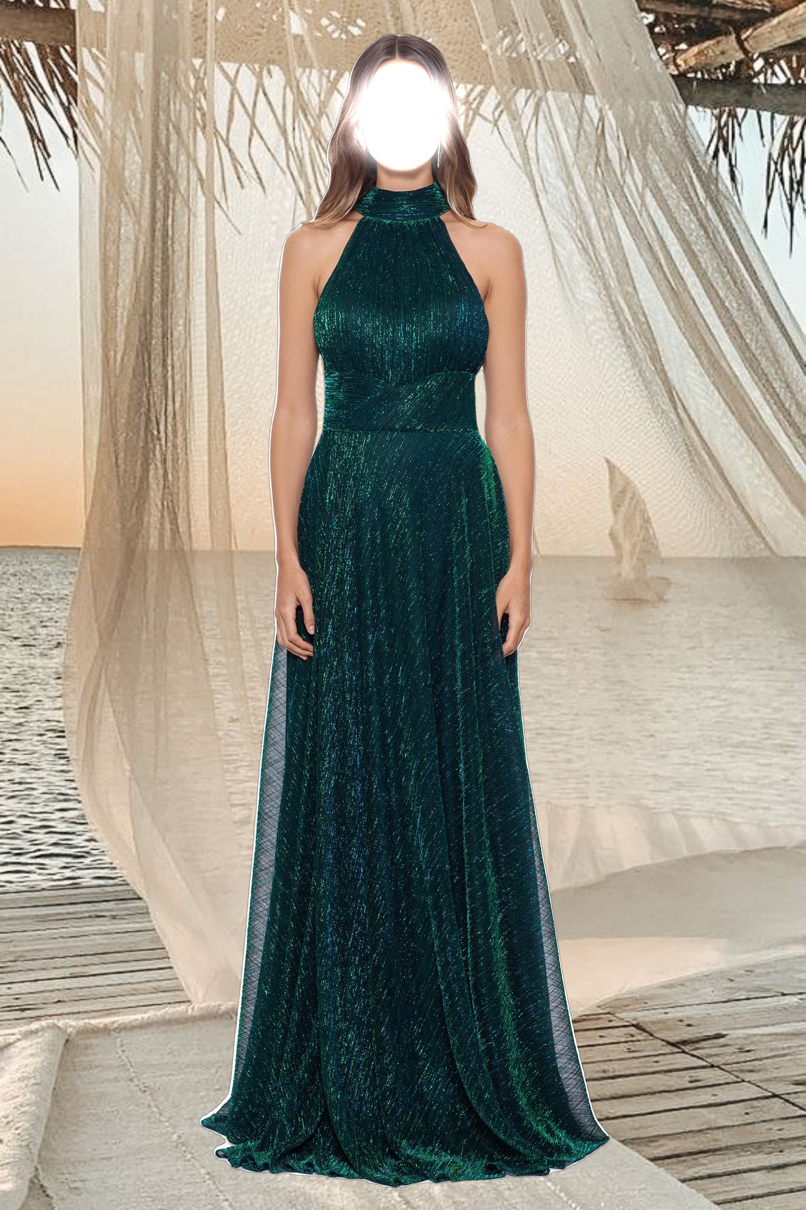 "Stella" Long Crinkle Halter Wrap Skirt Dress