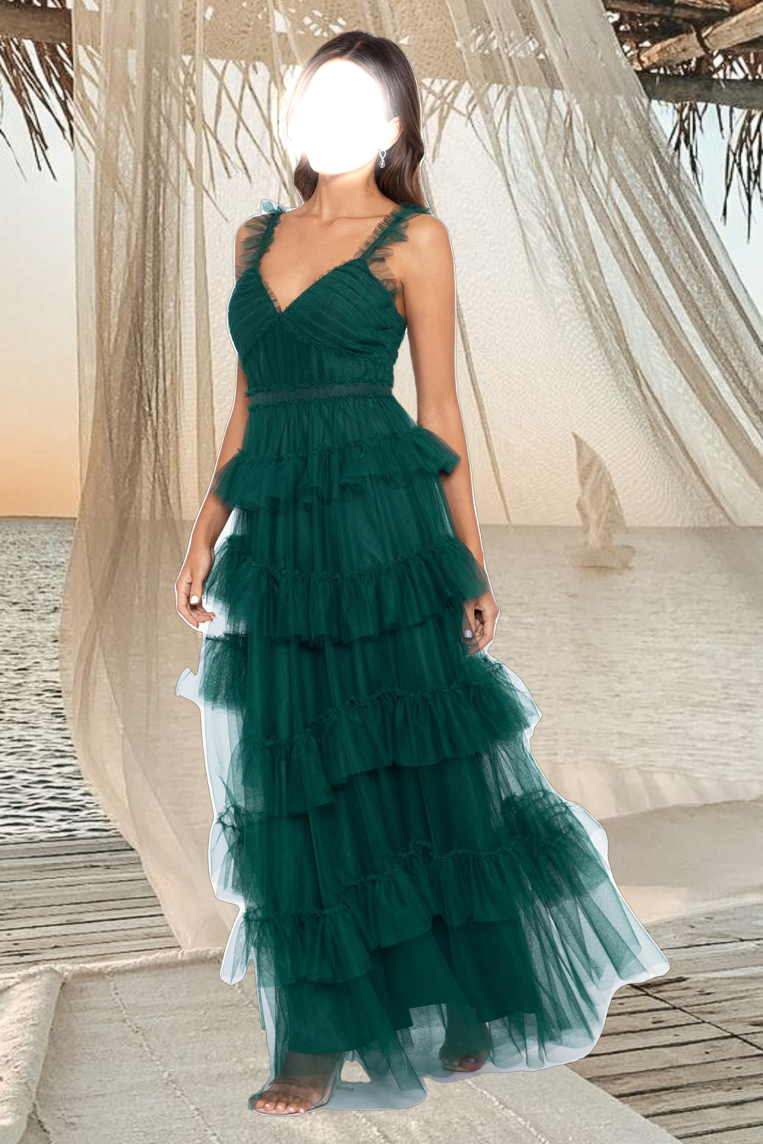 Home / Green / "Gigi" Long Ruffle Mesh Dress