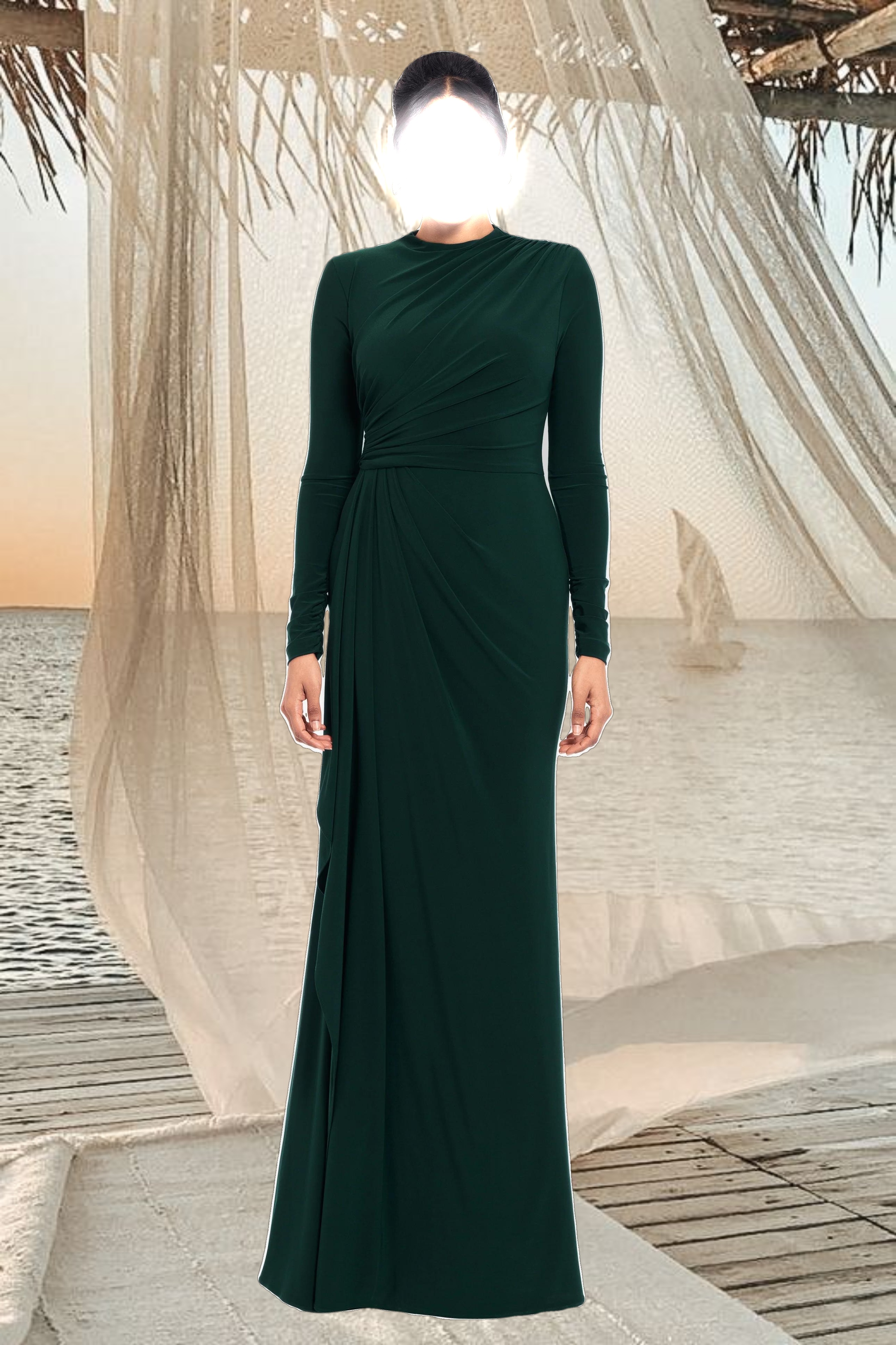 "Deborah" Midi Halter Scuba Crepe Sarong Dress