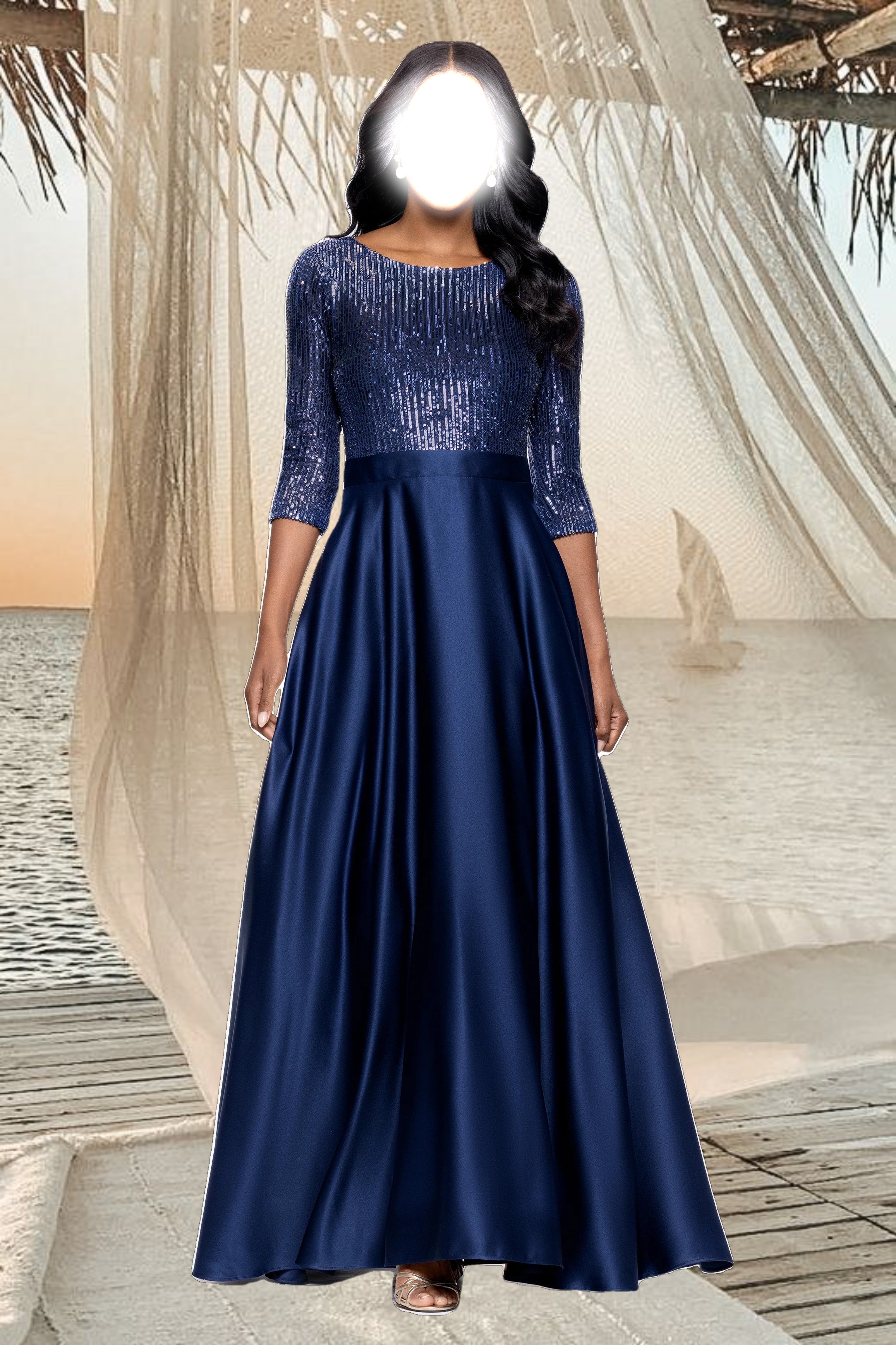 "Carmela" Long Scuba Crepe Dress with Satin Bow