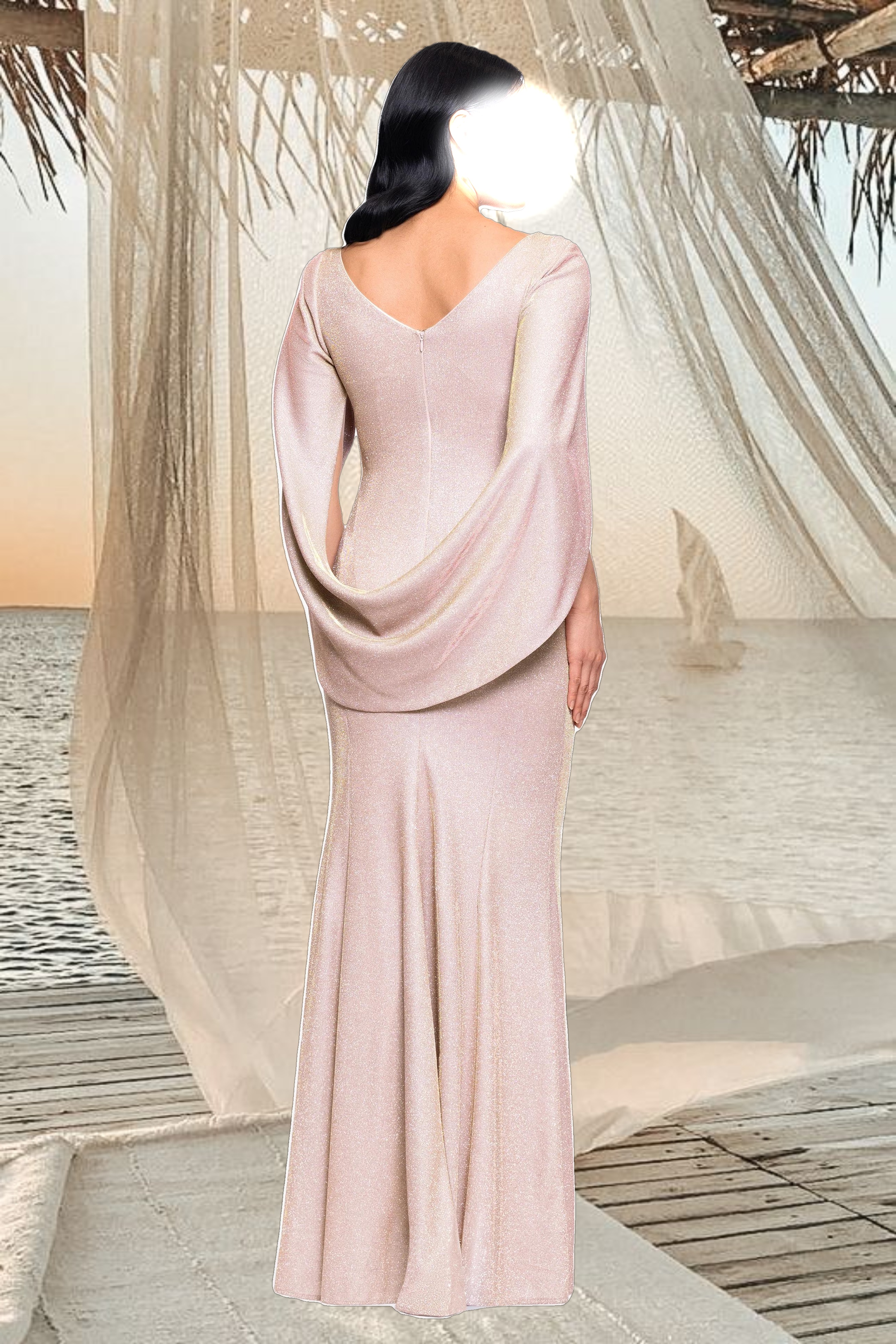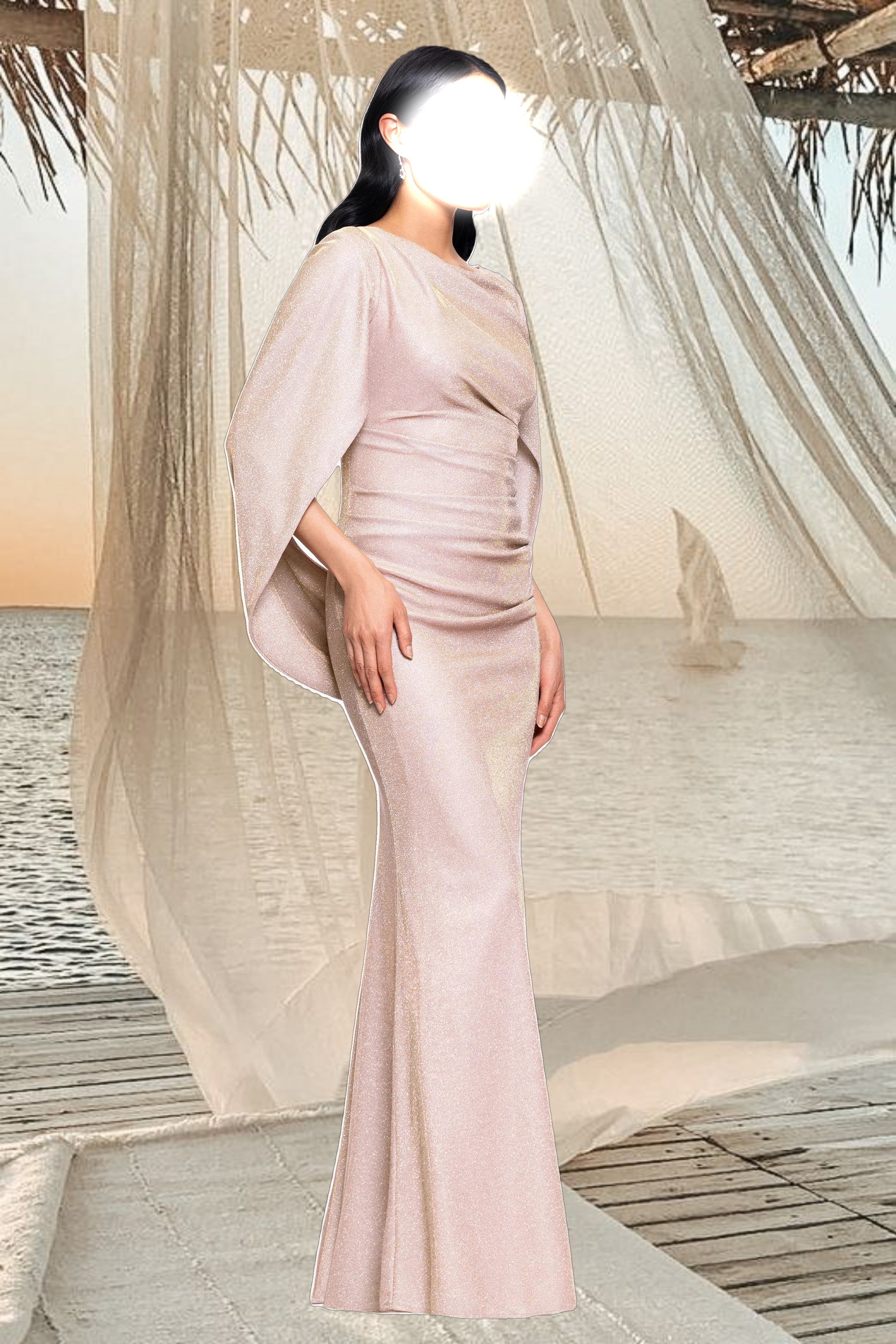 • Details: Boat Neck, Draped Sleeves, Straight Fit