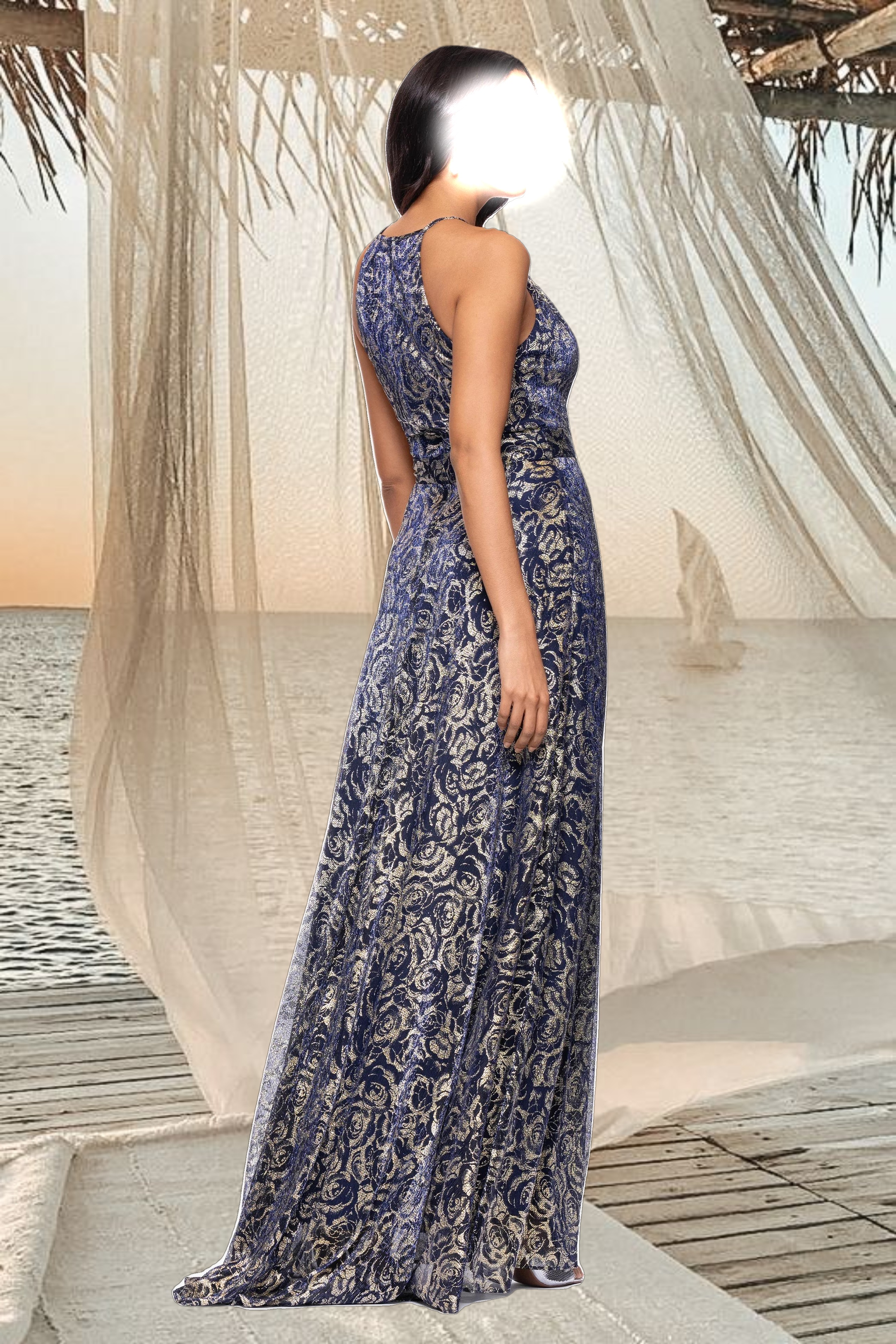 "Shelley" Metallic Foil Halter Neck Floor Length Dress