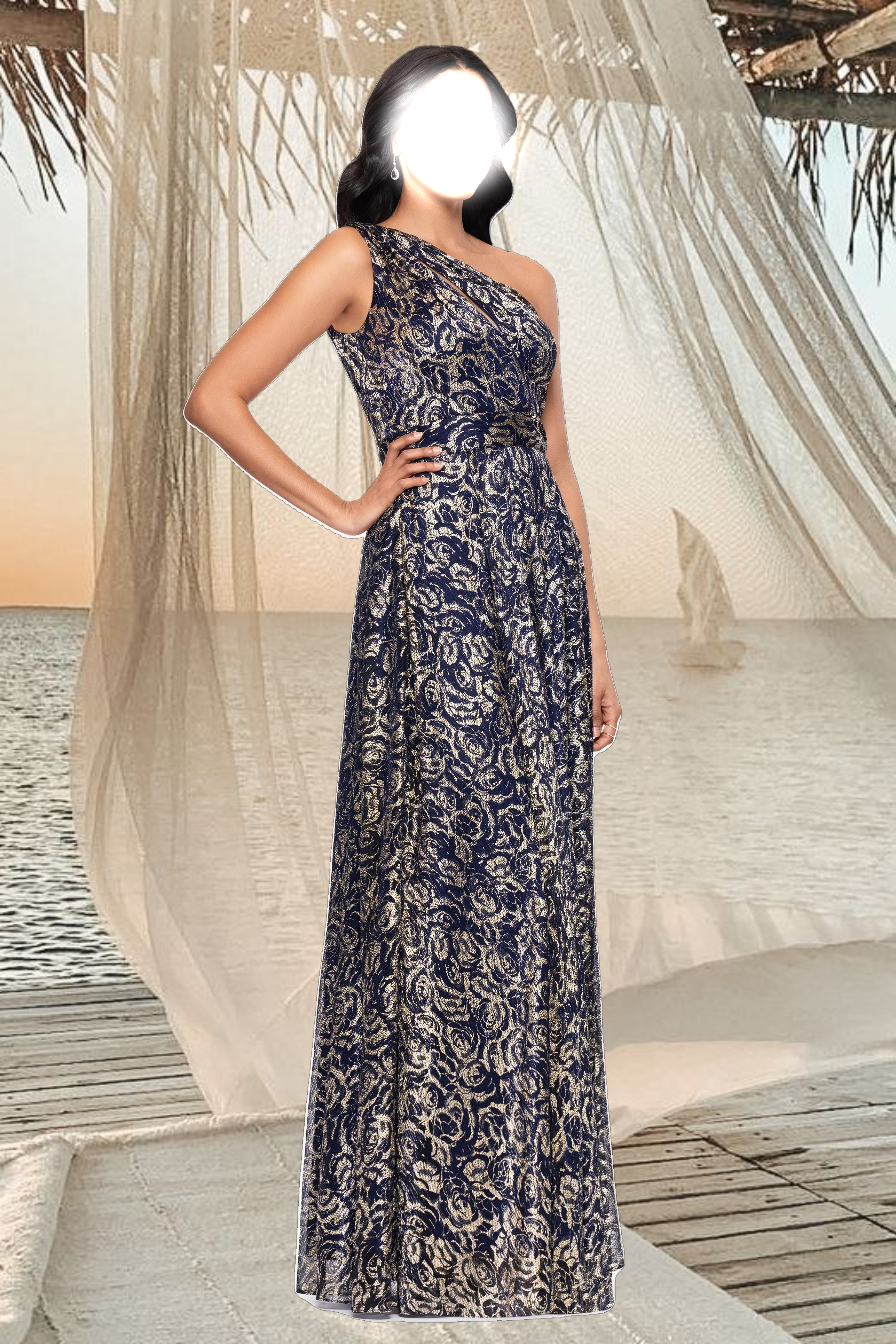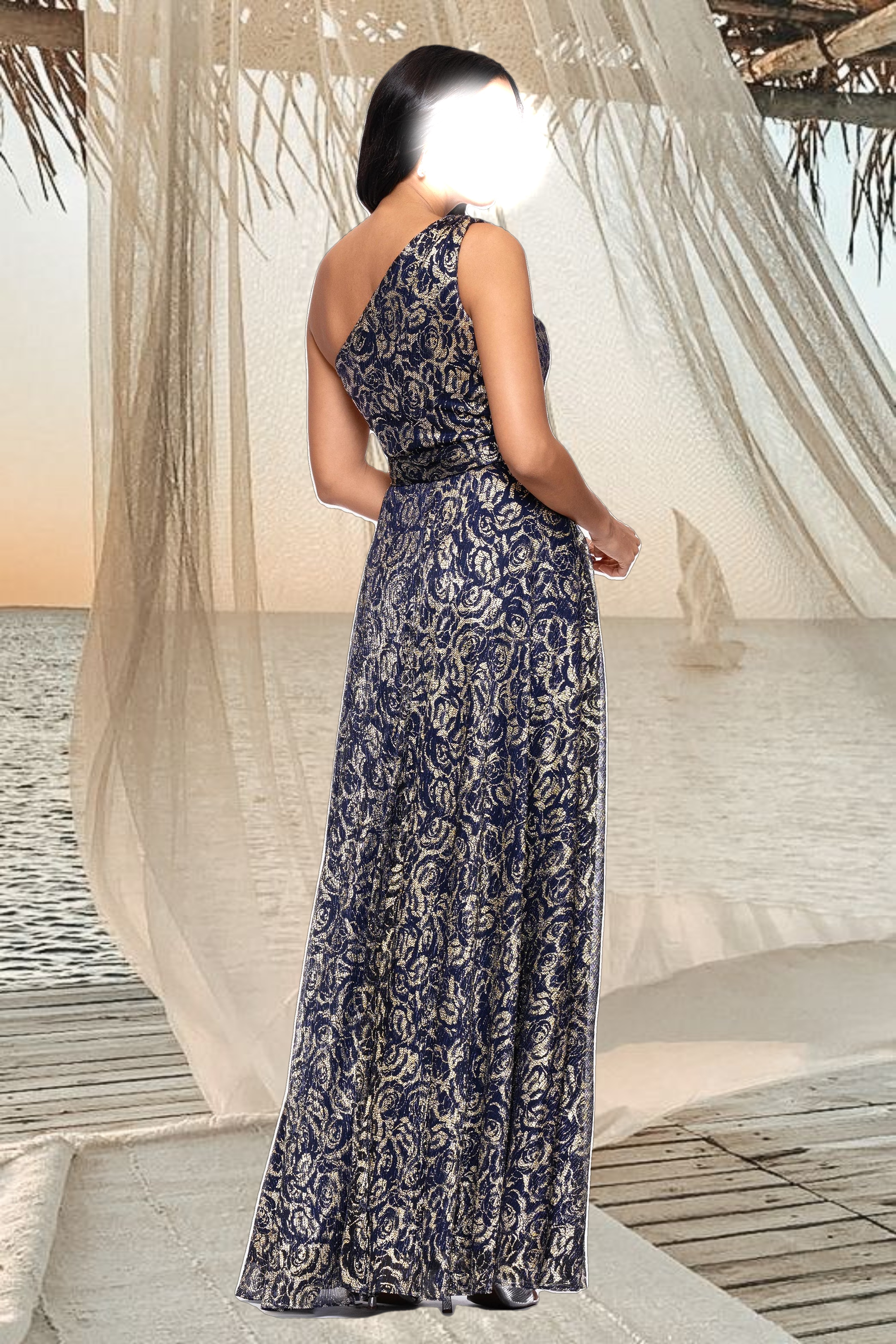 "Summer" Metallic Foil One Shoulder Floor Length Dress