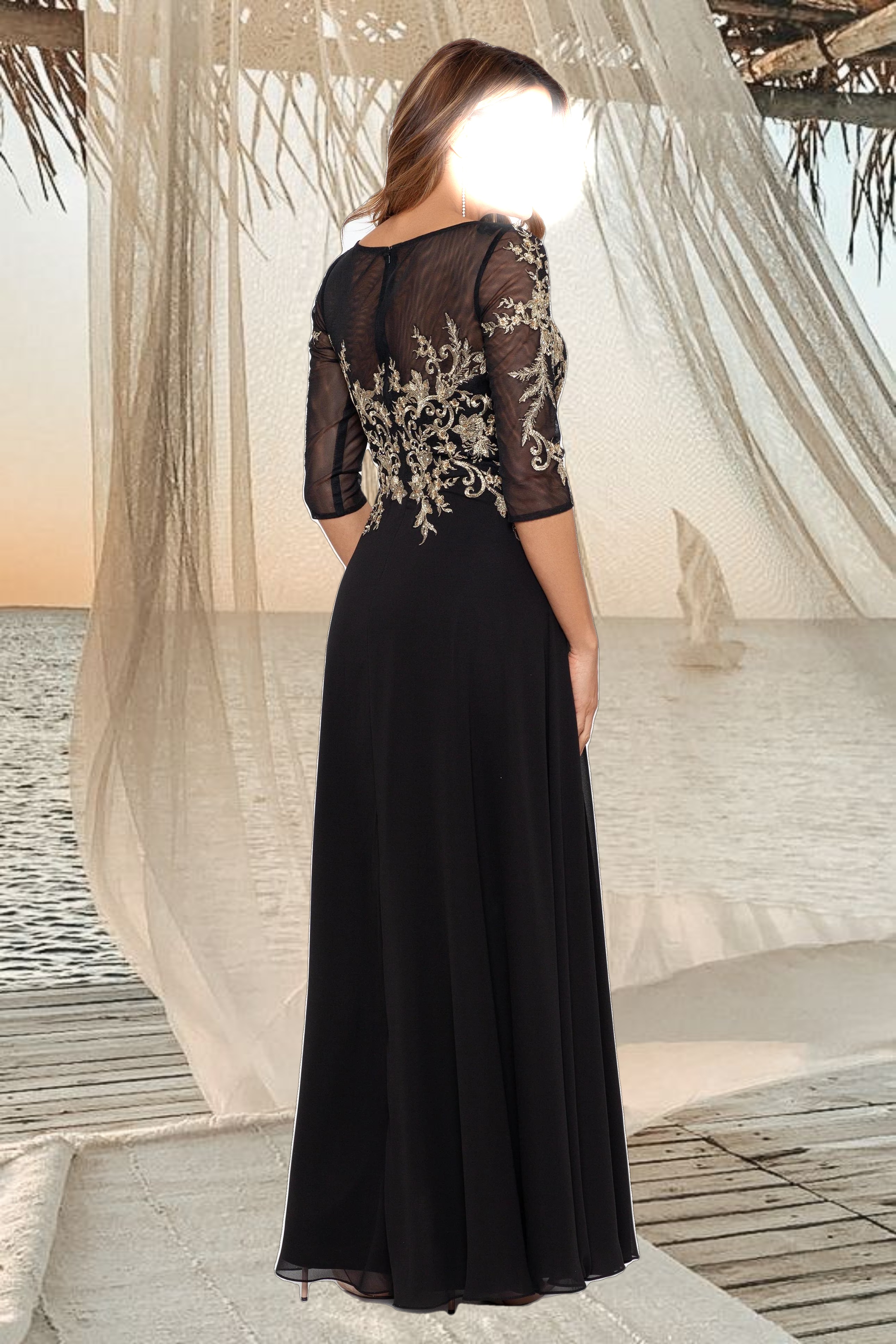 Get ready to turn heads in the "Brooklyn" Long Embroidery Dress. Made of luxurious chiffon, this dress is fully lined for comfort and has a hidden center back zipper for a seamless fit. The delicate 3/4 sleeve and intricate embroidery add a touch of boldness and adventure to your wardrobe.
